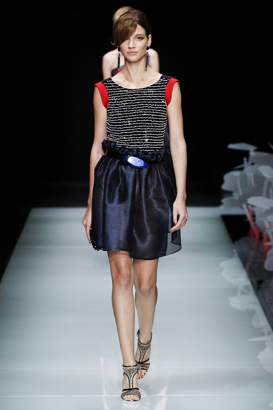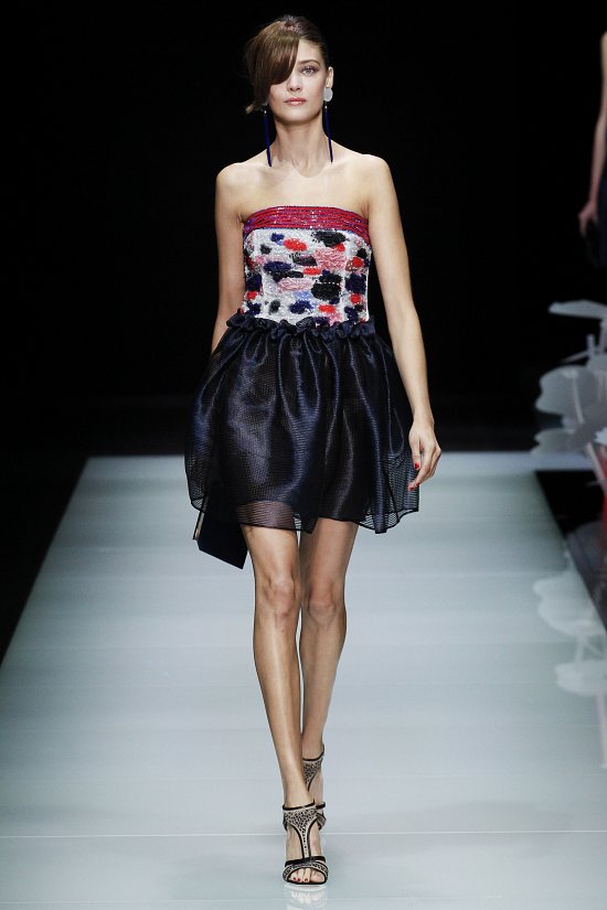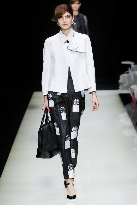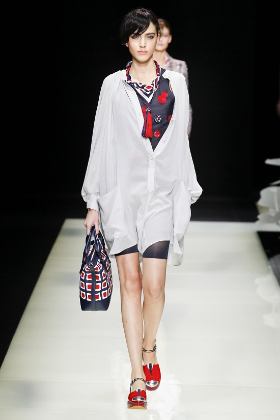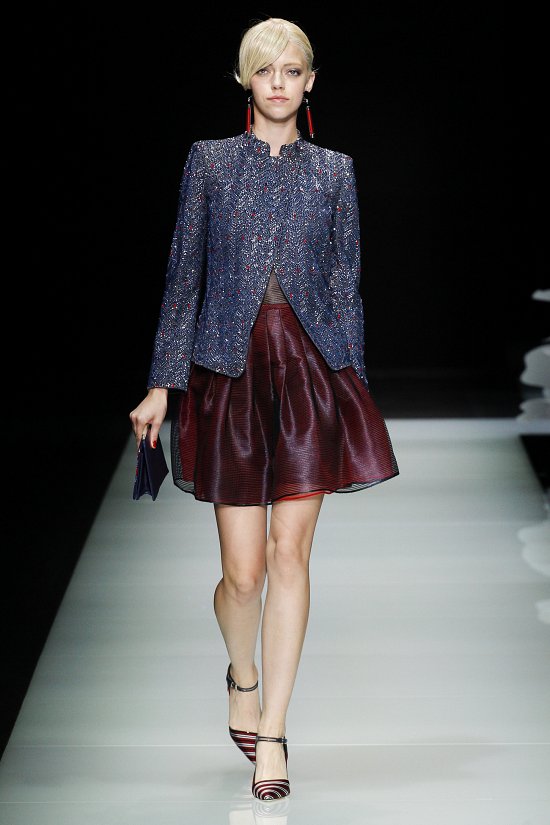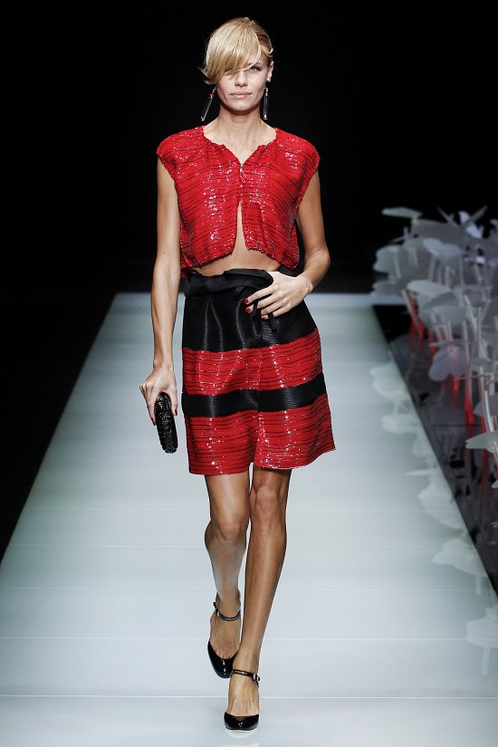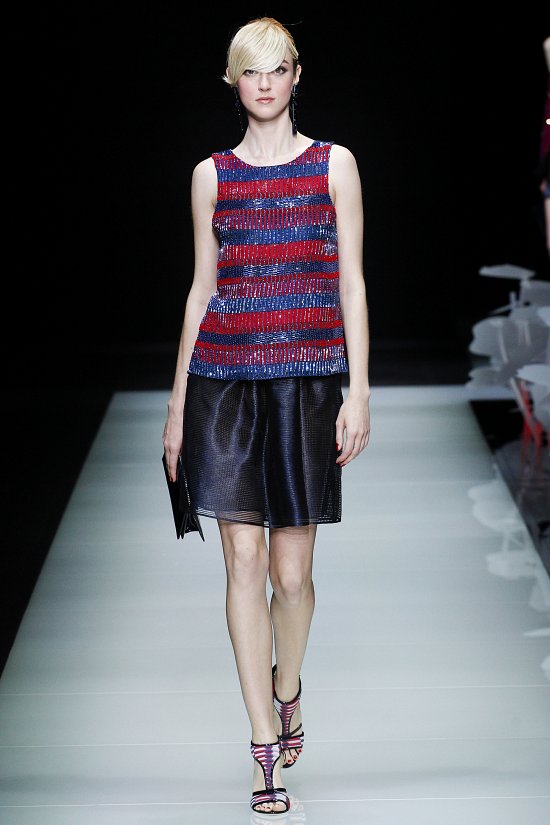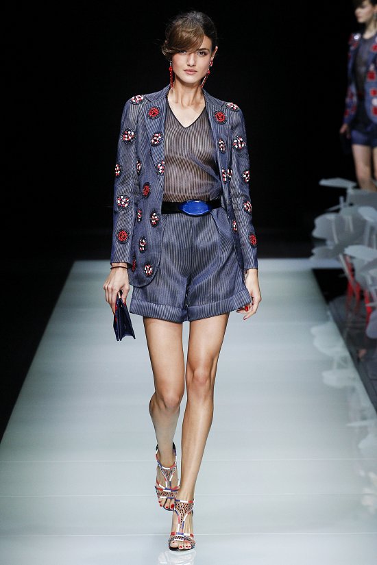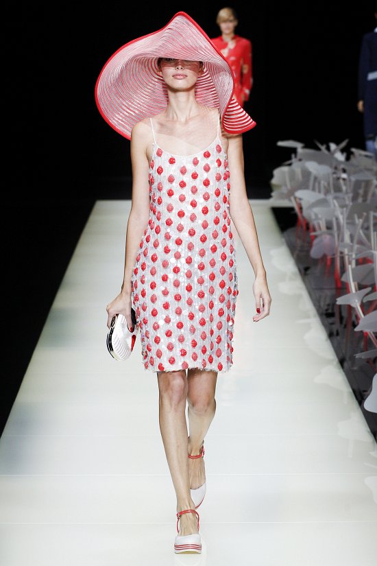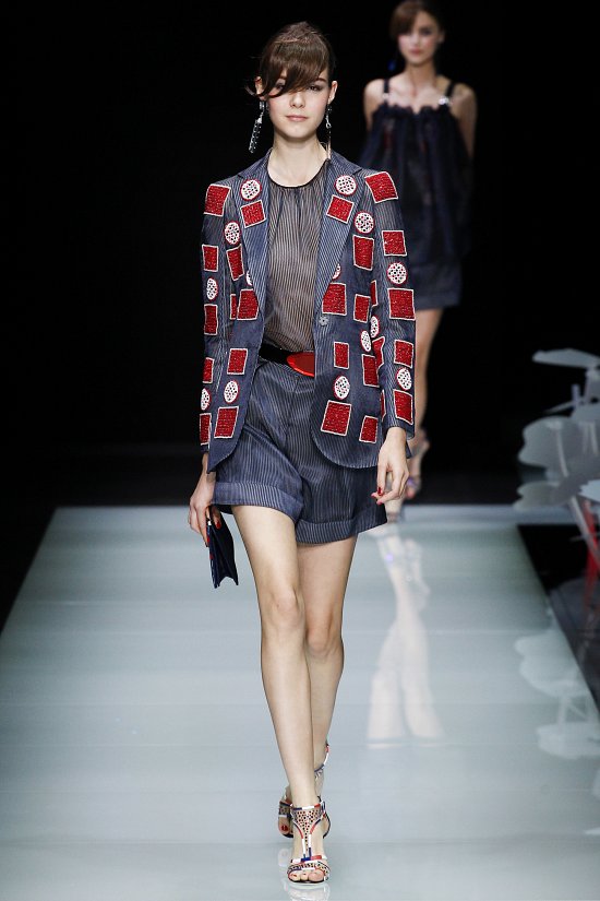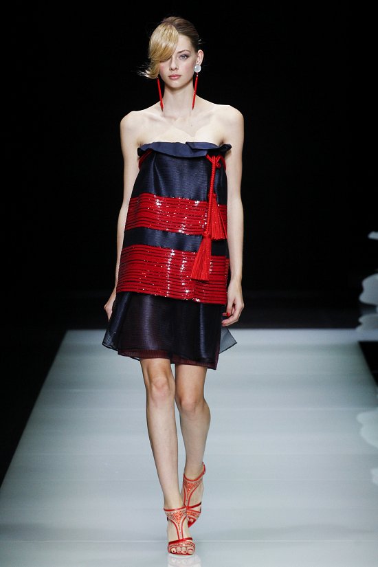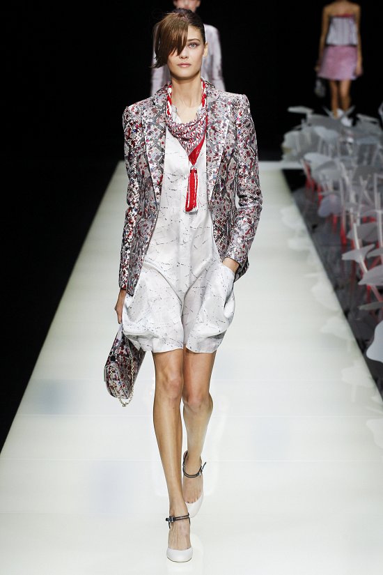 К 40-летнему юбилею бренда мэтр приготовил сюрприз – главным цветом коллекции Giorgio Armani весна-лето 2016 стал красный! Его можно было заметить везде – в скромных полосках принтов и вырывающимся сполохами из-под юбок вечерних платьев, замысловатых переплетениях жакетов и насыщенных тонах аксессуаров. Он был так прекрасен и так многолик – оттенки зари и вина, герани и красной гвоздики, с оранжевым и розовым подтоном… Что же до любимых дизайнером серого и синего, они прекрасно дополнили красную гамму, придав коллекции изящества, легкости и функциональности, чем и славится Giorgio Armani. Сама же коллекция не была революционной: костюмы с шортами, летние пальто, брюки-палаццо, блузы, короткие комбинезоны, коктейльные и вечерние платья.