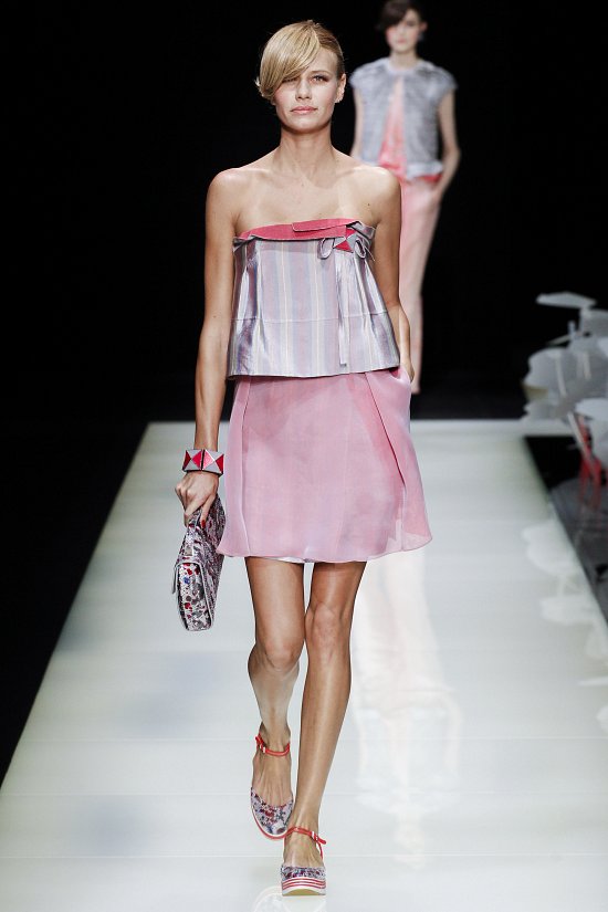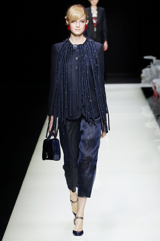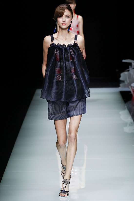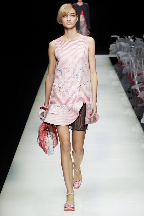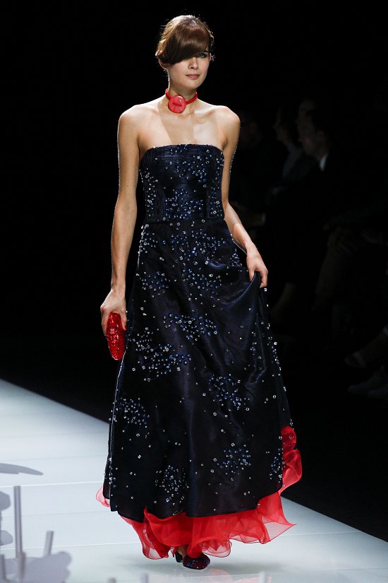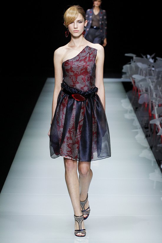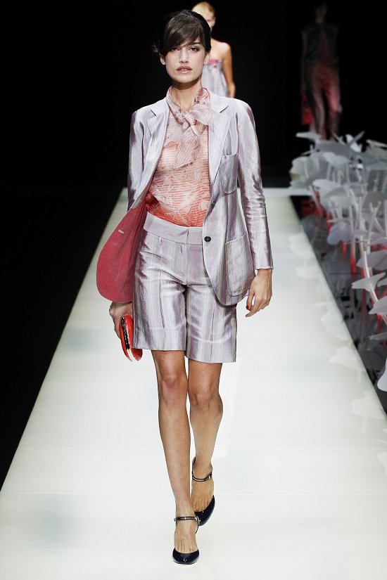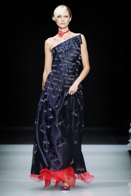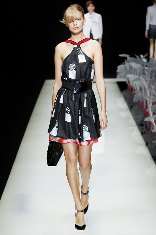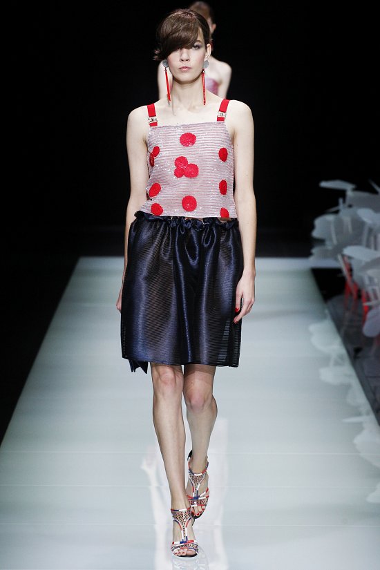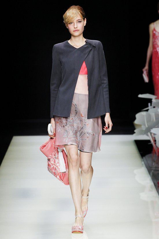К 40-летнему юбилею бренда мэтр приготовил сюрприз – главным цветом коллекции Giorgio Armani весна-лето 2016 стал красный! Его можно было заметить везде – в скромных полосках принтов и вырывающимся сполохами из-под юбок вечерних платьев, замысловатых переплетениях жакетов и насыщенных тонах аксессуаров. Он был так прекрасен и так многолик – оттенки зари и вина, герани и красной гвоздики, с оранжевым и розовым подтоном… Что же до любимых дизайнером серого и синего, они прекрасно дополнили красную гамму, придав коллекции изящества, легкости и функциональности, чем и славится Giorgio Armani. Сама же коллекция не была революционной: костюмы с шортами, летние пальто, брюки-палаццо, блузы, короткие комбинезоны, коктейльные и вечерние платья.