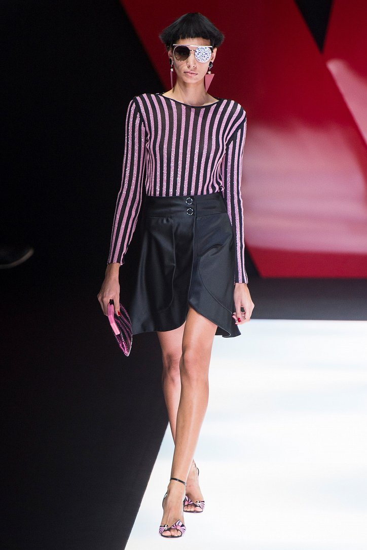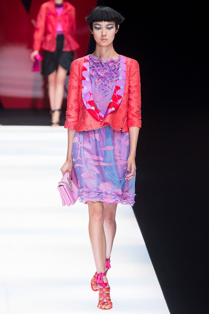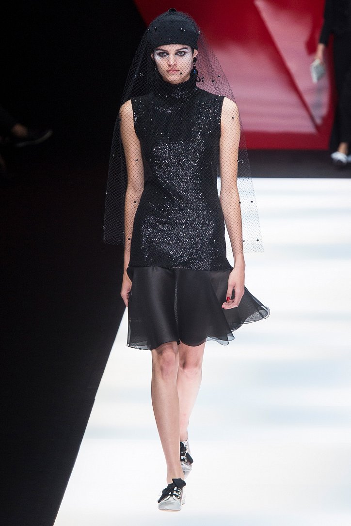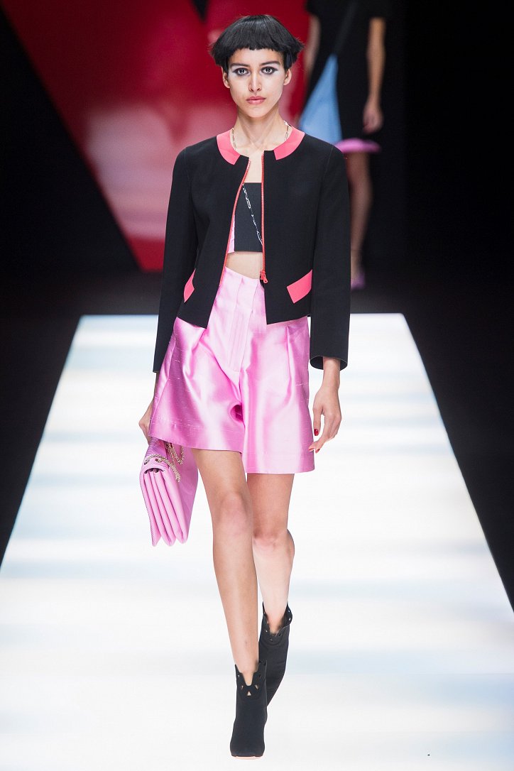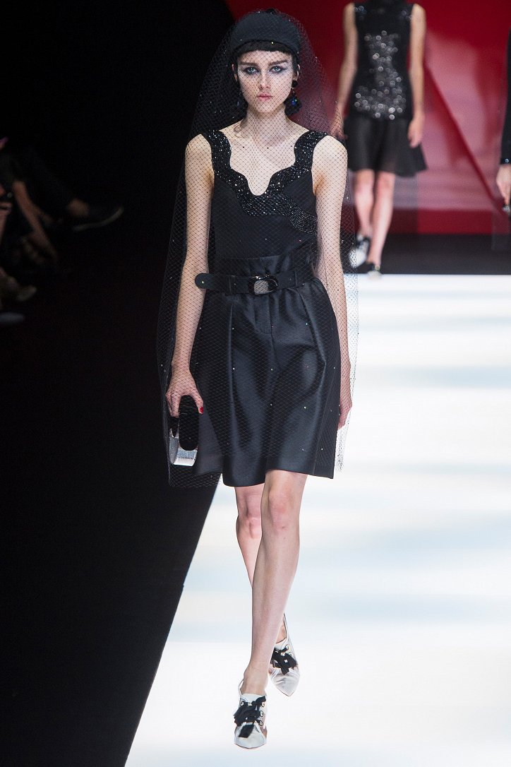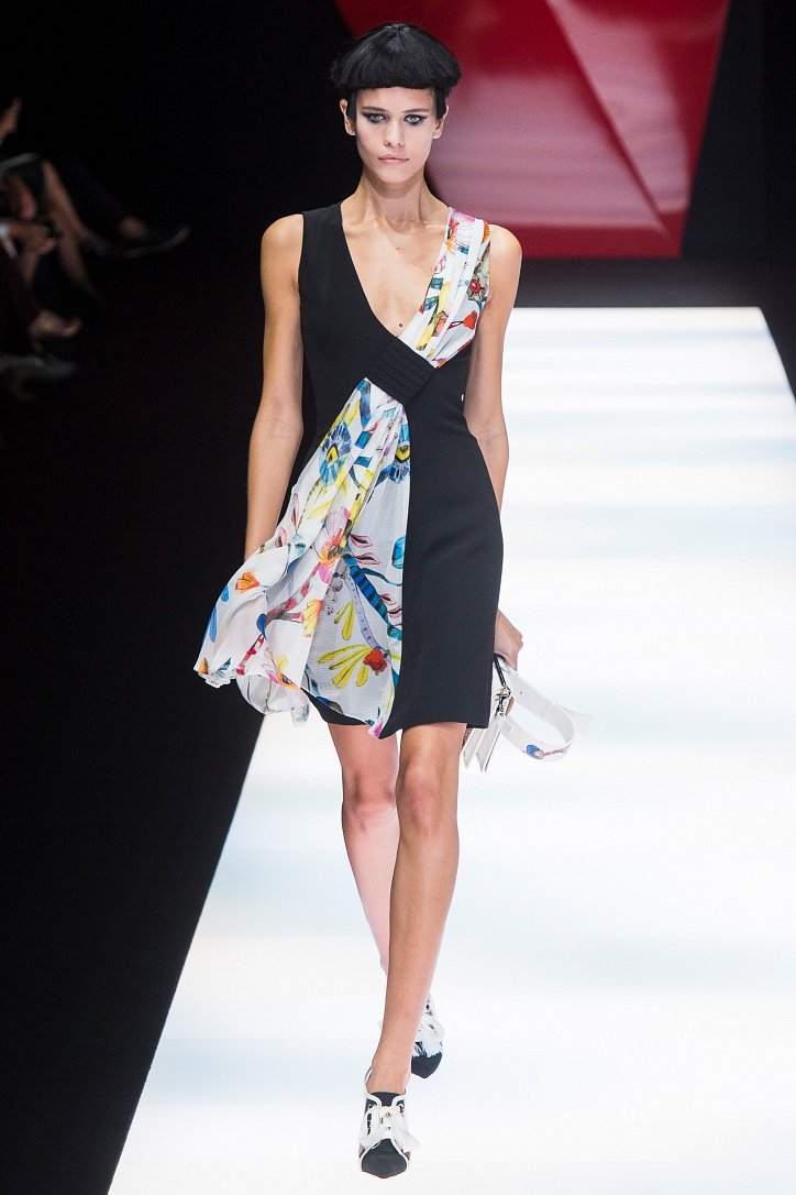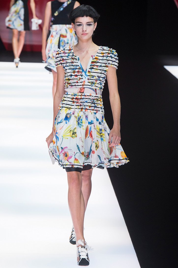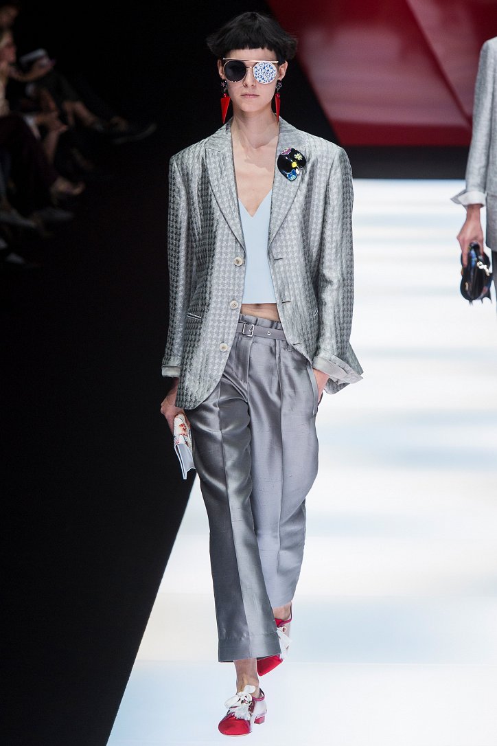 Наиболее эффектно яркие цветы смотрятся на черном фоне. Об этом еще раз напомнил нам маэстро Джорджио Армани. Впрочем, вся коллекция Giorgio Armani весна-лето 2018 – это игра на контрастах. Строгий крой перемежается с легкомысленными рюшиками, полупрозрачные модели из шифона – с плотными жакетами с асимметричной застежкой. Объединяло коллекцию одно – ощущение праздника. Яркая цветочная палитра в сочетании с черным цветом напоминала фейерверк в ночном небе. Мерцающий атлас и металлизированные ткани, усыпанные блесками брюки, топы и удивительной красоты черные брючные костюмы, шарфики и боа, похожие на новогодние гирлянды, и берет с помпонами-конфетти – все в лучших традициях Армани!