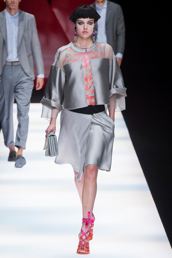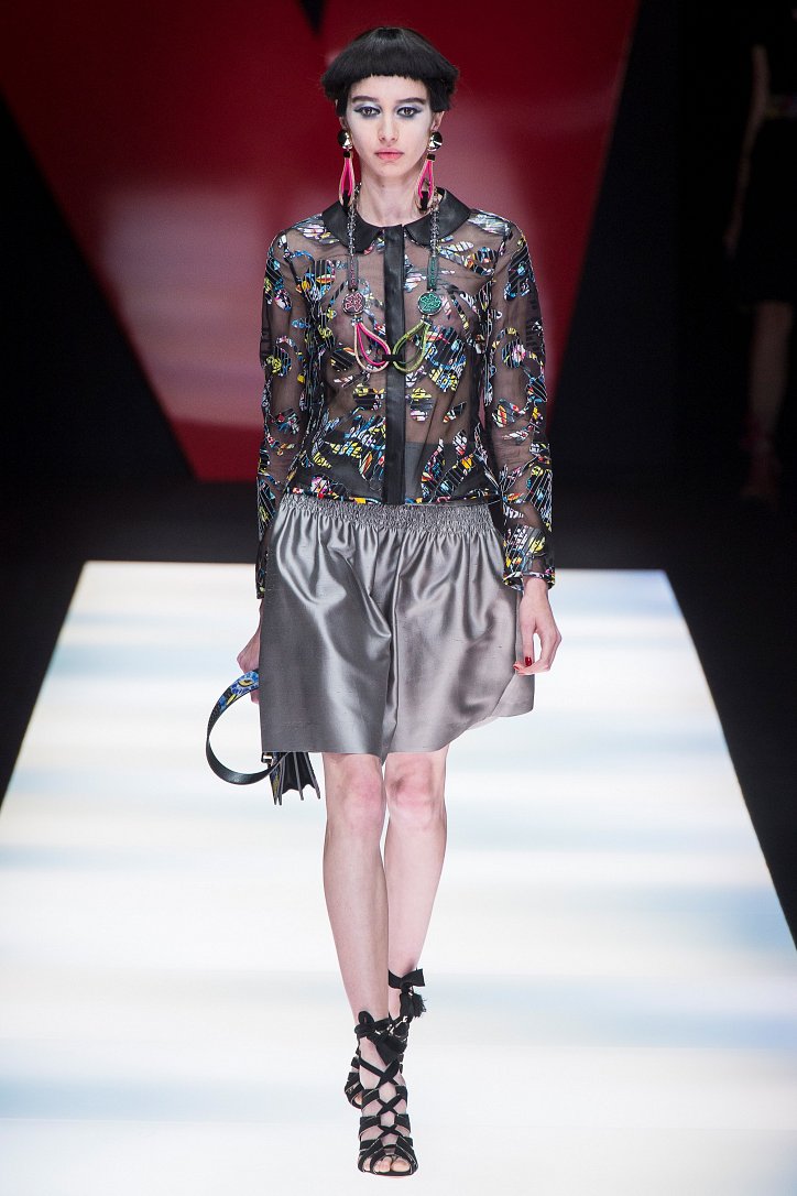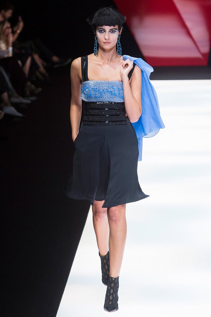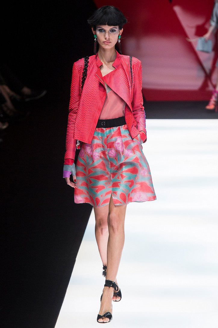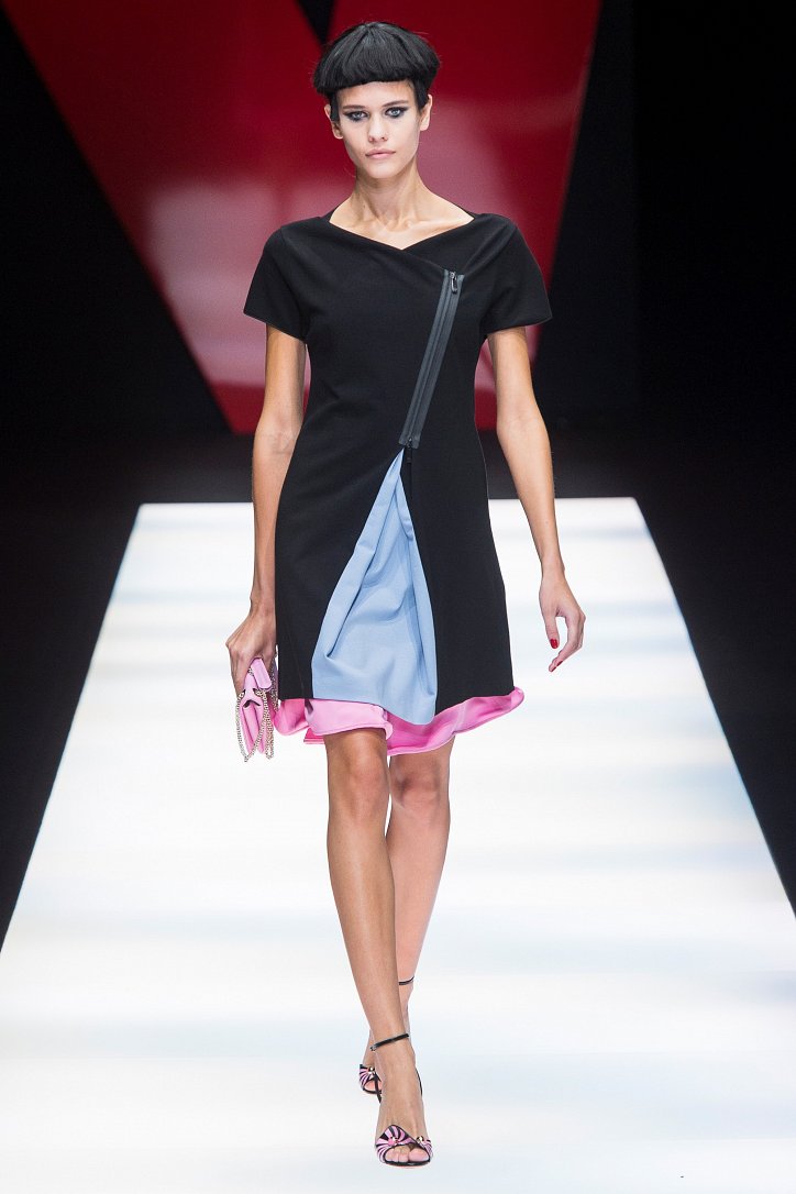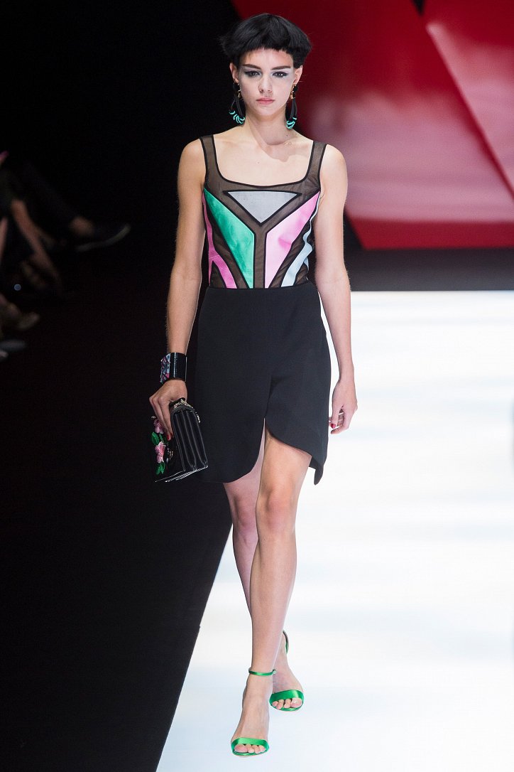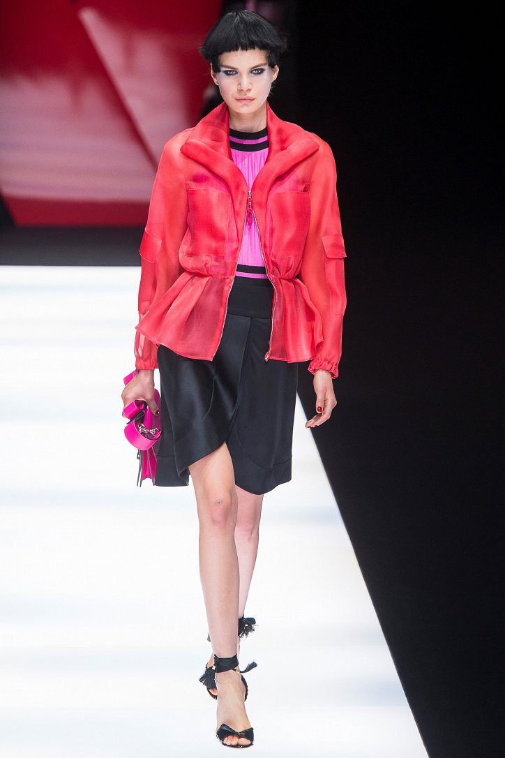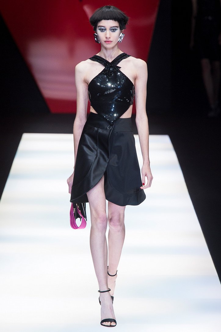 Наиболее эффектно яркие цветы смотрятся на черном фоне. Об этом еще раз напомнил нам маэстро Джорджио Армани. Впрочем, вся коллекция Giorgio Armani весна-лето 2018 – это игра на контрастах. Строгий крой перемежается с легкомысленными рюшиками, полупрозрачные модели из шифона – с плотными жакетами с асимметричной застежкой. Объединяло коллекцию одно – ощущение праздника. Яркая цветочная палитра в сочетании с черным цветом напоминала фейерверк в ночном небе. Мерцающий атлас и металлизированные ткани, усыпанные блесками брюки, топы и удивительной красоты черные брючные костюмы, шарфики и боа, похожие на новогодние гирлянды, и берет с помпонами-конфетти – все в лучших традициях Армани!