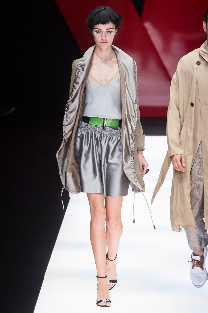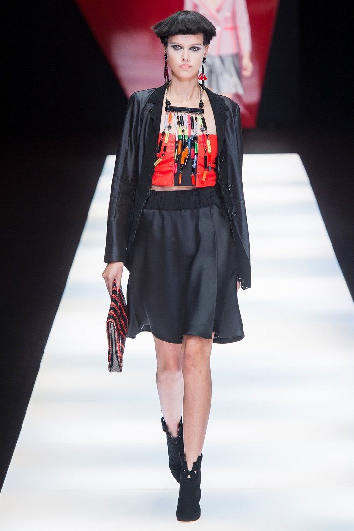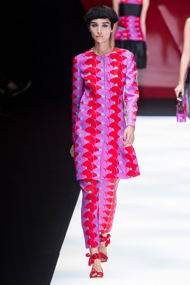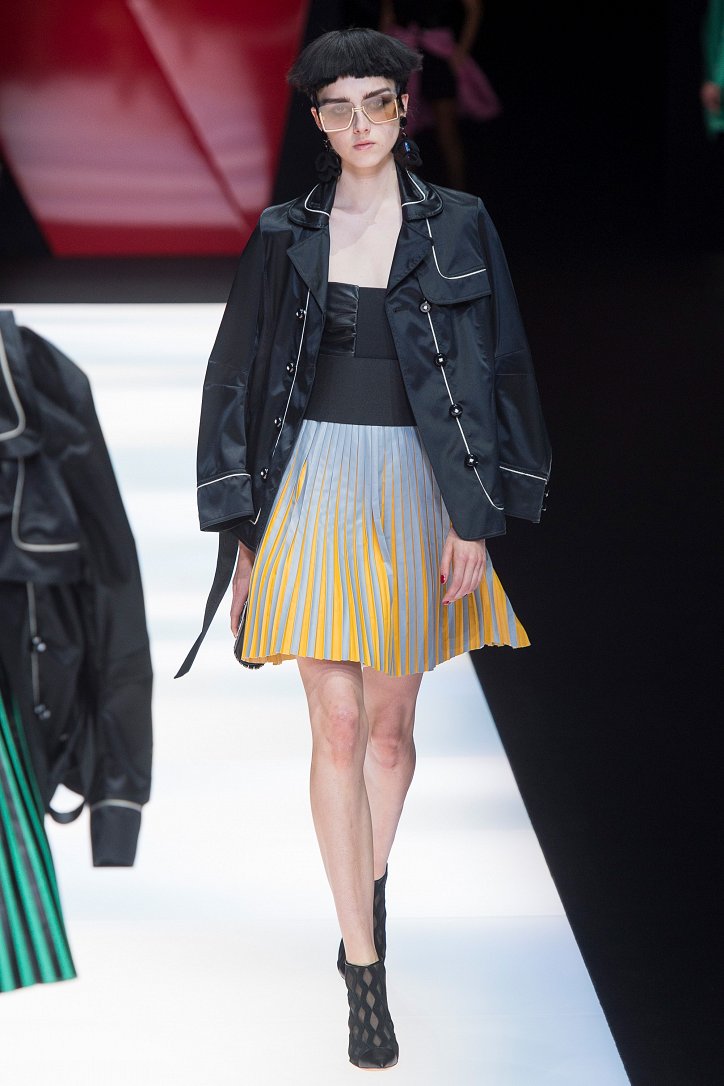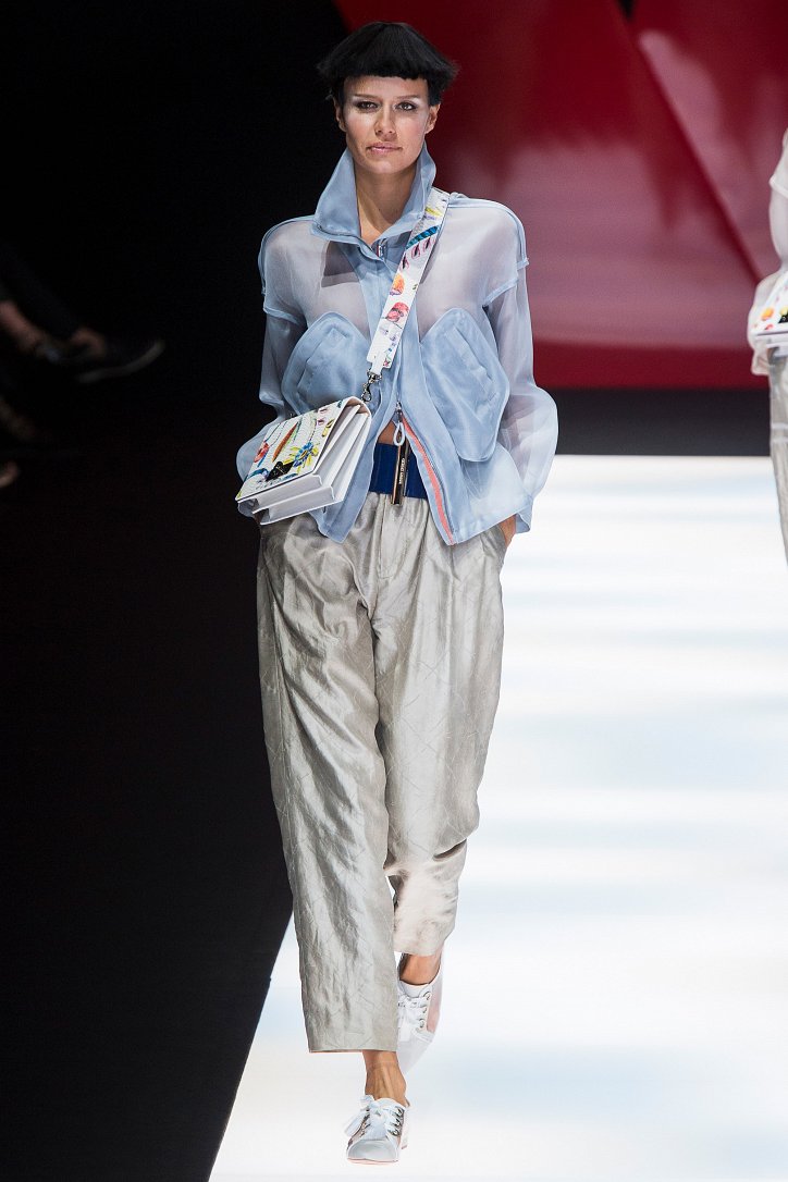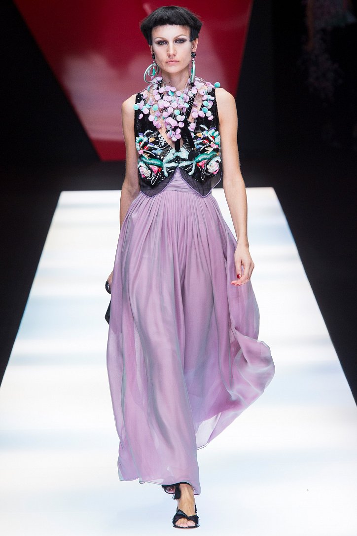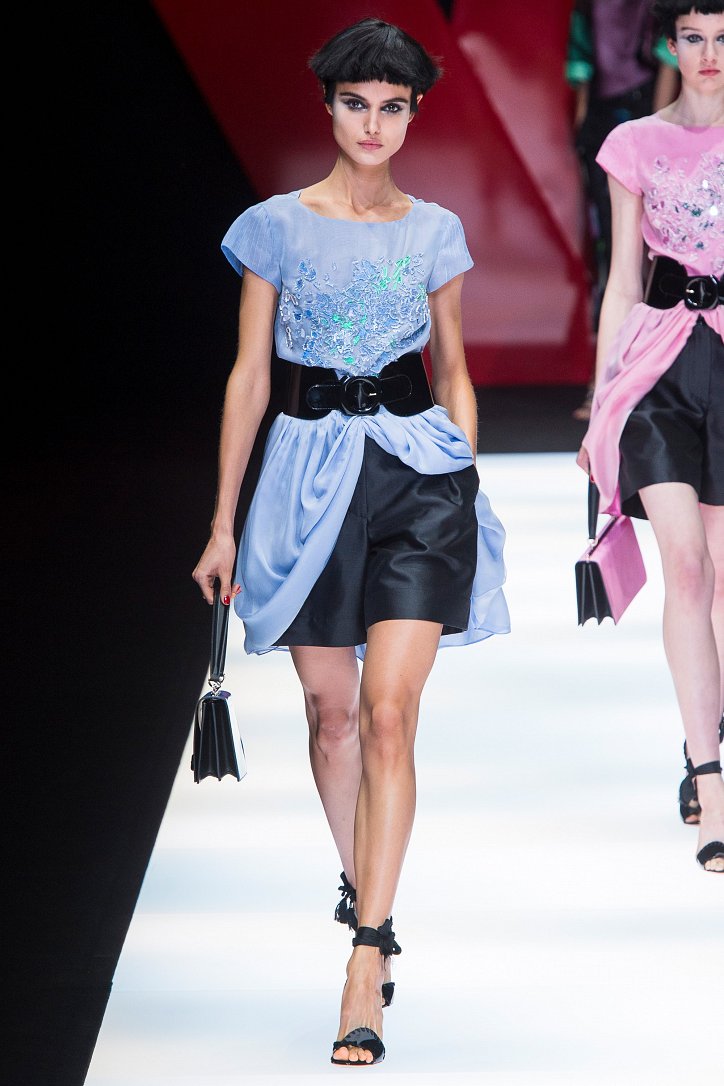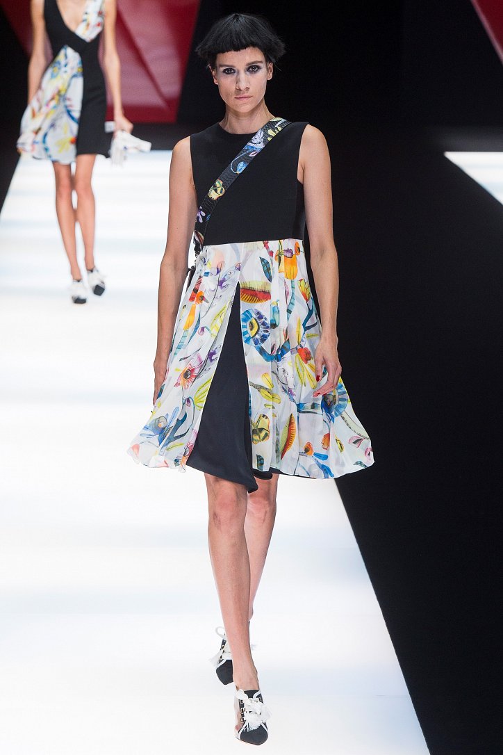 Наиболее эффектно яркие цветы смотрятся на черном фоне. Об этом еще раз напомнил нам маэстро Джорджио Армани. Впрочем, вся коллекция Giorgio Armani весна-лето 2018 – это игра на контрастах. Строгий крой перемежается с легкомысленными рюшиками, полупрозрачные модели из шифона – с плотными жакетами с асимметричной застежкой. Объединяло коллекцию одно – ощущение праздника. Яркая цветочная палитра в сочетании с черным цветом напоминала фейерверк в ночном небе. Мерцающий атлас и металлизированные ткани, усыпанные блесками брюки, топы и удивительной красоты черные брючные костюмы, шарфики и боа, похожие на новогодние гирлянды, и берет с помпонами-конфетти – все в лучших традициях Армани!