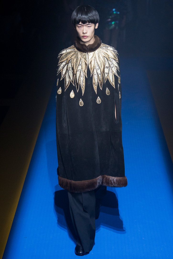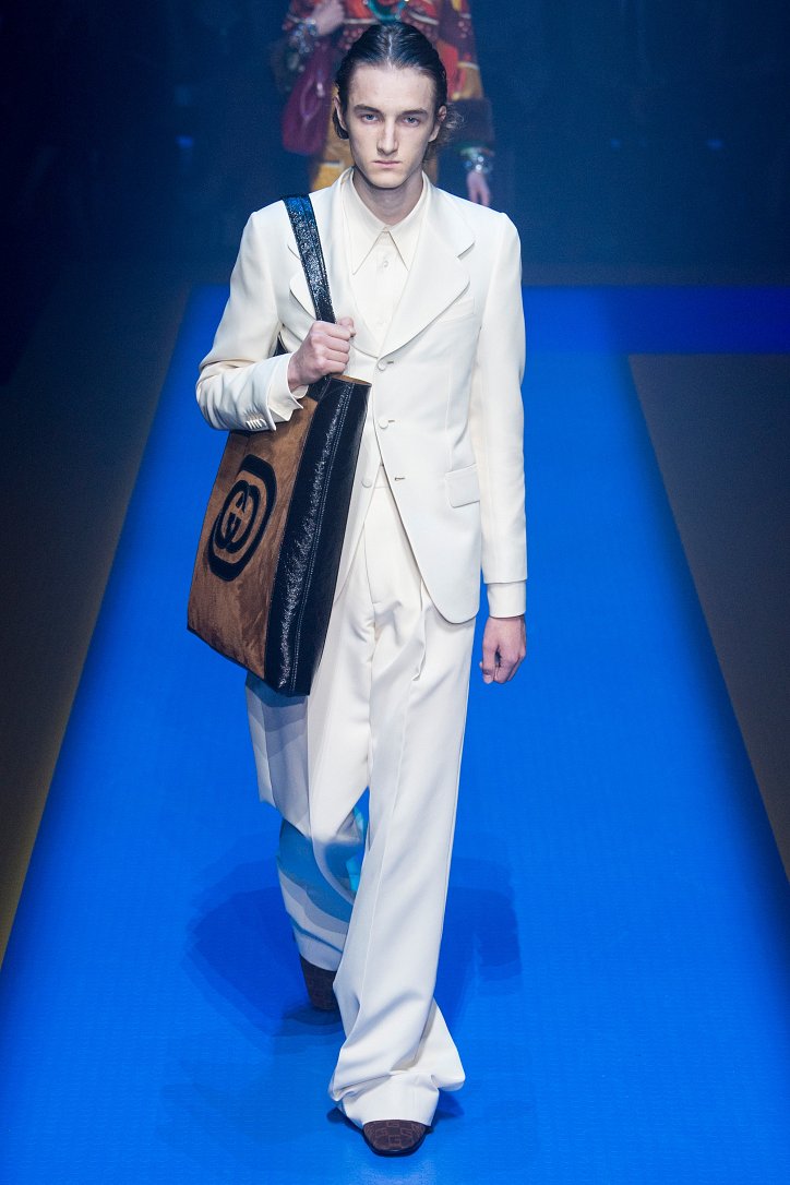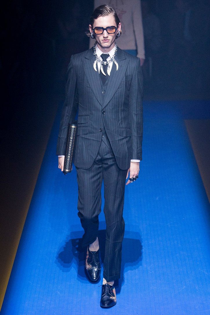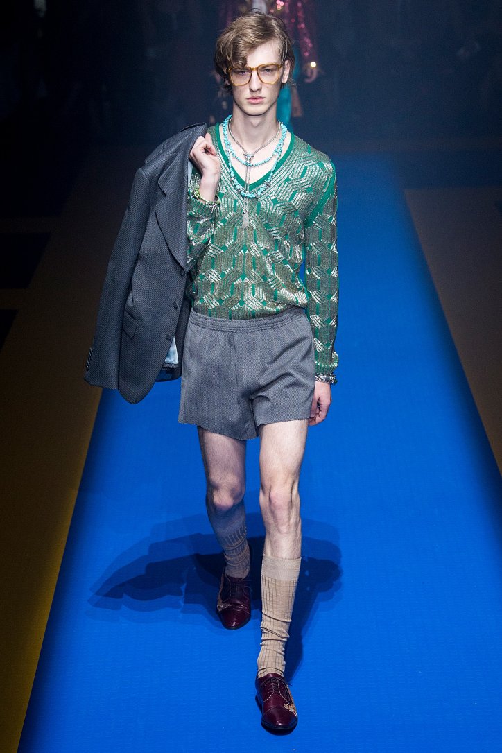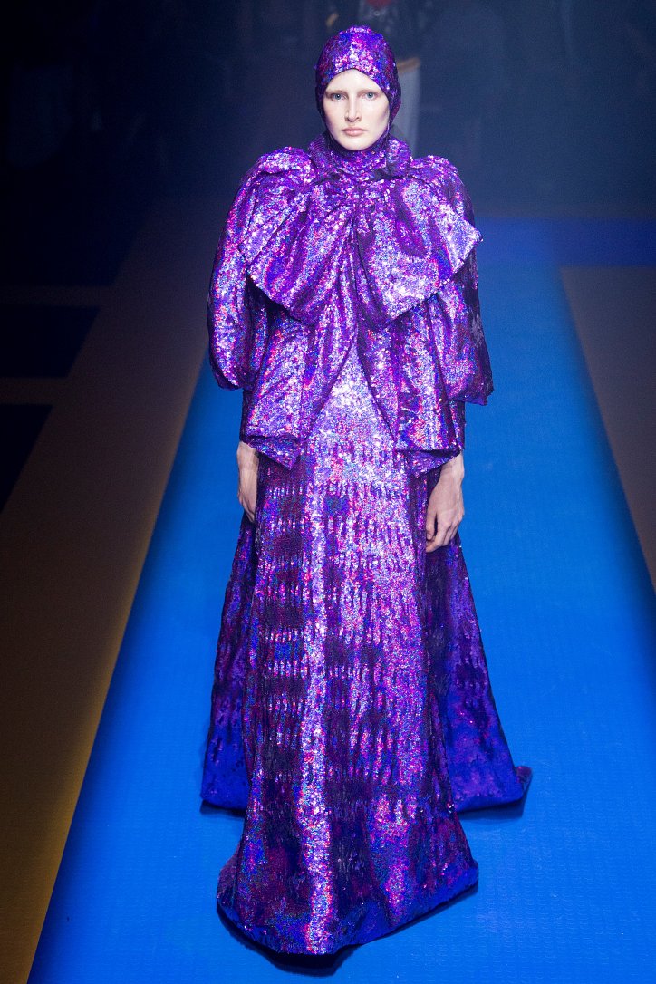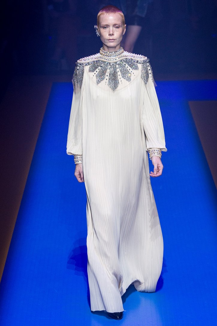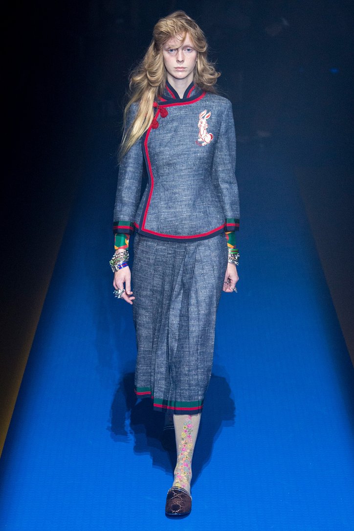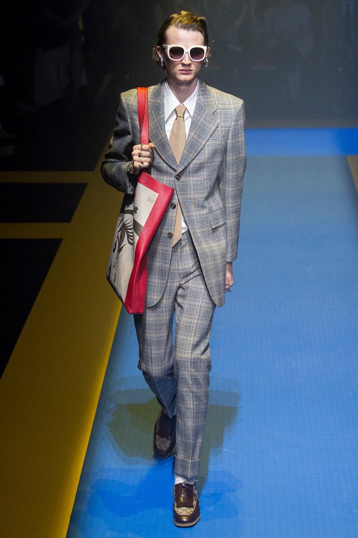 И вновь коллекция Gucci весна-лето 2018 стала гимном эклектике – Алессандро Микеле продолжил заданный в прошлых коллекция тон. На этот раз по подиуму, который должен был символизировать реку Тибр, дефилировали модели, одетые в платья с капюшонами и блестящие купальники, «леопардовое» пальто с меховой отделкой и шелковый комбинезон со звездами, пуританский костюм с юбкой в складочку и гламурный спортивные костюм, носить который полагается не иначе как с бусами. Завершали образ уже ставшие ультапопулярными поясные сумки, броские очки со стразами и крупные украшения. Бохо и спорт, гипертрофированные плечи родом из 80-ых и романтика 70-ых, диснеевские принты и цитаты из восточных культур – все смешалось в доме Гуччи! Но можно даже не сомневаться - и этот модный винегрет будет съеден с удовольствием.