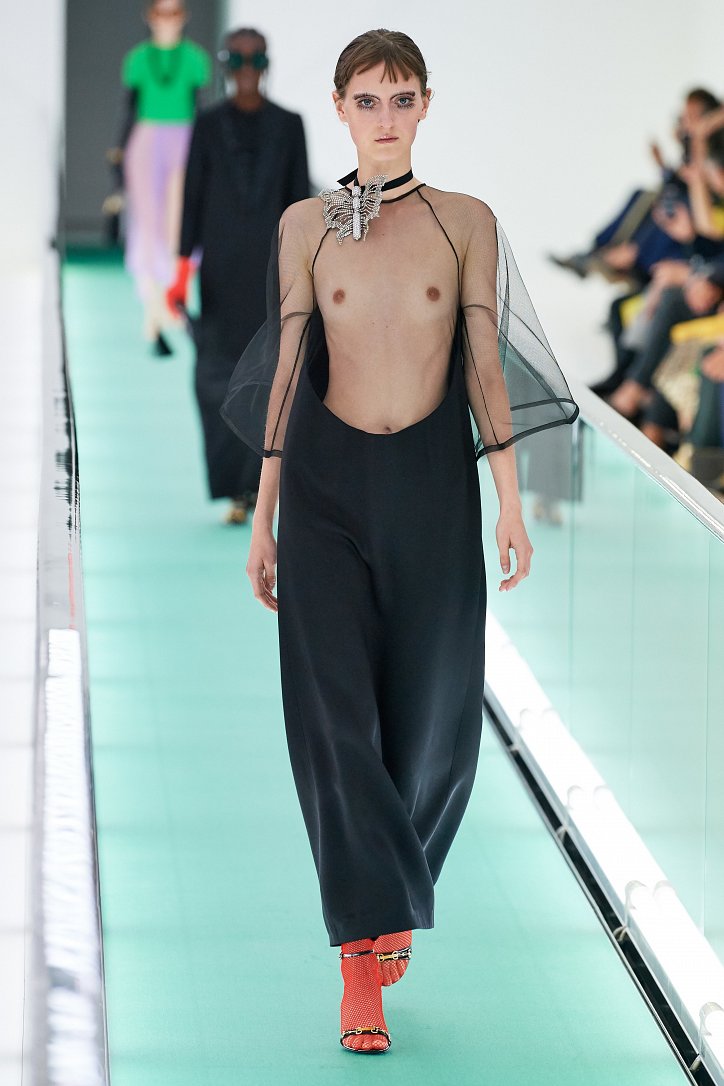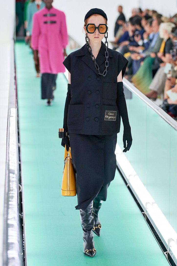 Много белого и черного, колорблокинг вместо принтов, откровенная сексуальность взамен причудливой эклектики и … эко-сертификат – коллекция Gucci была одной большой неожиданностью.