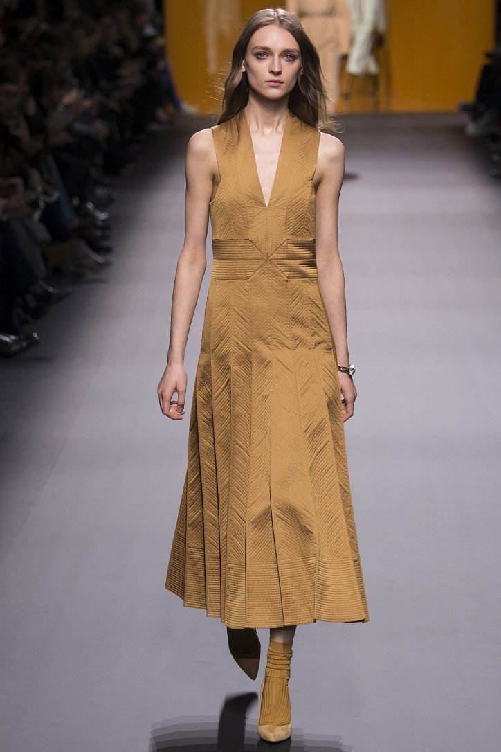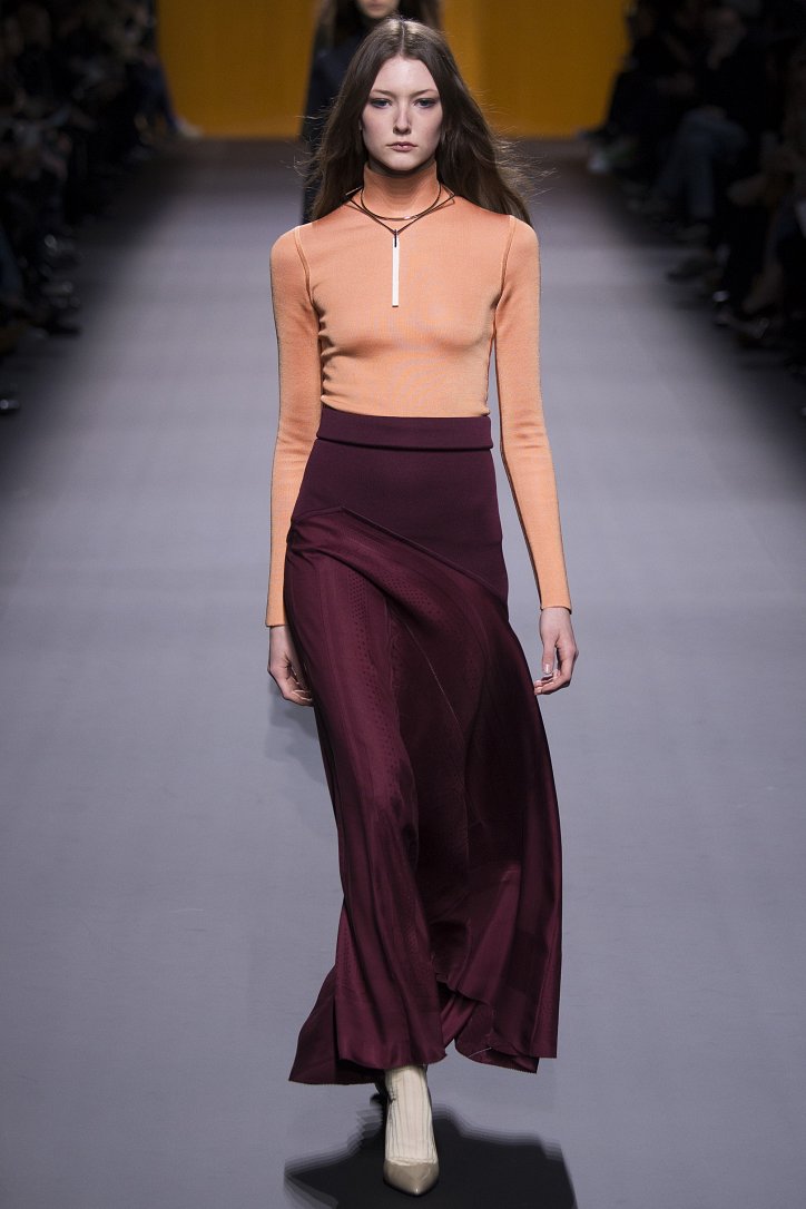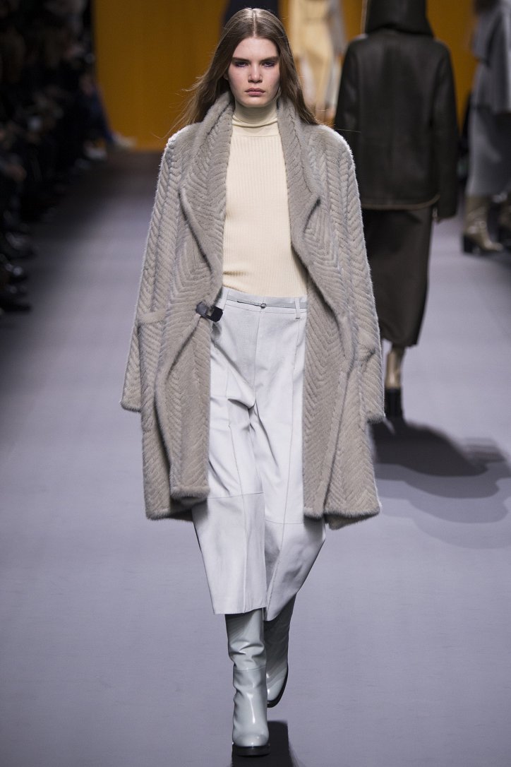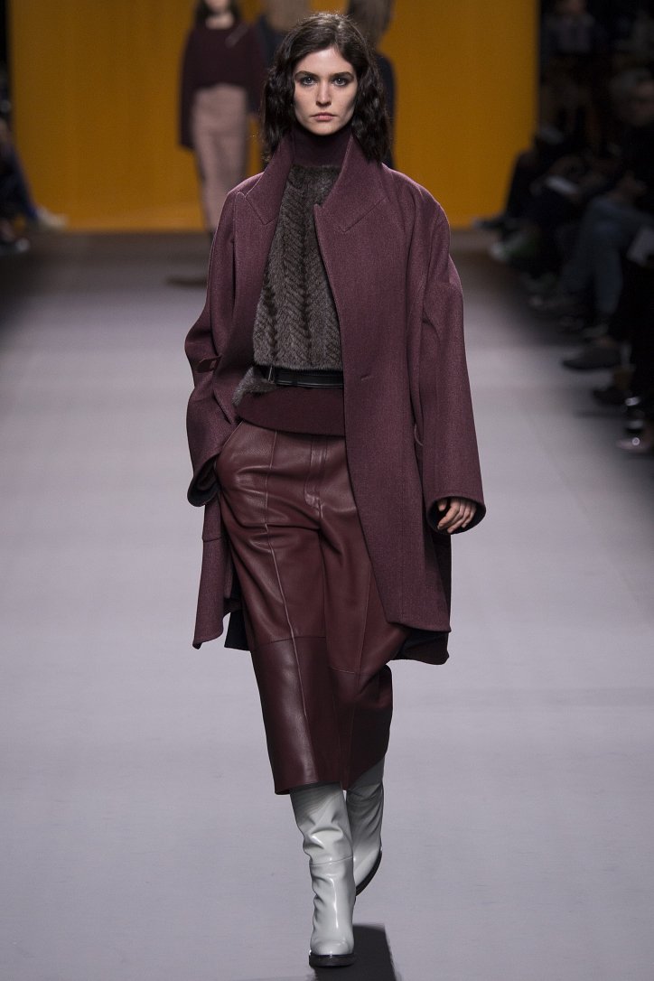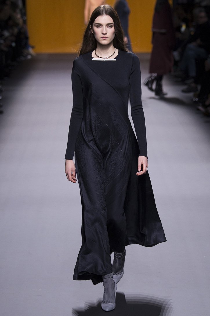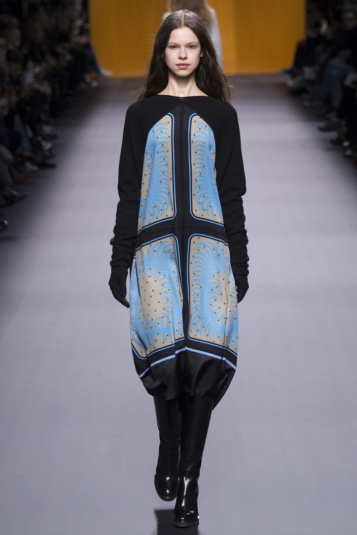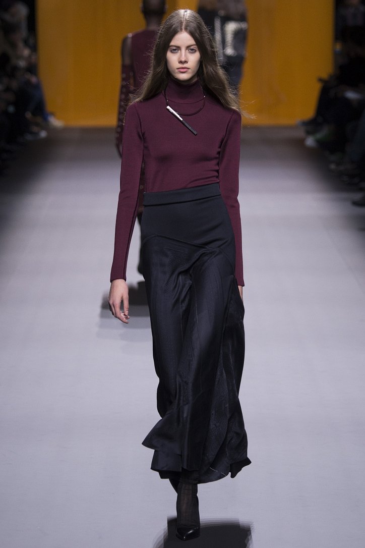 Контрастные детали, акцент на аксессуары, меховый пэчворк, сочетание разных фактур и обновленная техника Twillaine – такой увидели гости показа новую коллекцию Hermès осень-зима 2016-2017. Критики приняли новаторство Надеж Ване-Цыбульски вполне благосклонно: помня о традициях дома моды, креативный директор весьма удачно их модернизировала. Ансамбли в спокойной цветовой гамме она дополнила яркой обувью или контрастными элементами, традиционный кашемир и кожу разбавила фактурными модными дубленками и верхней одеждой из меха. Но самым интересным решением стало использование в крое юбок легендарной техники бренда - Twillaine, которая позволяет «вживлять» в трикотаж шелковые платки-каре.