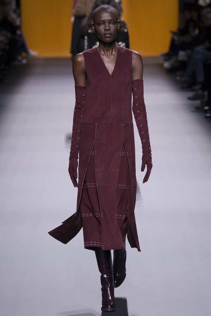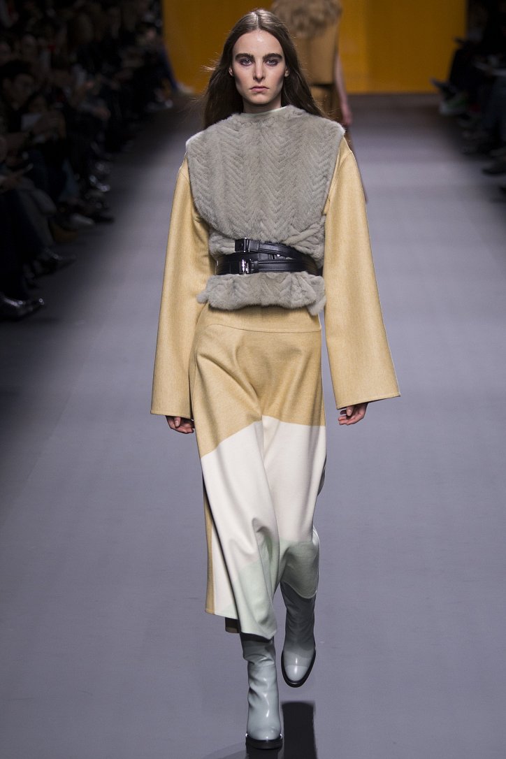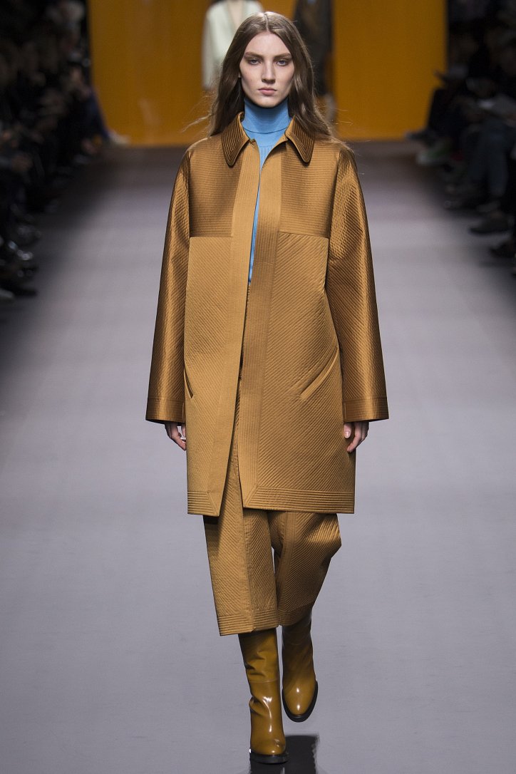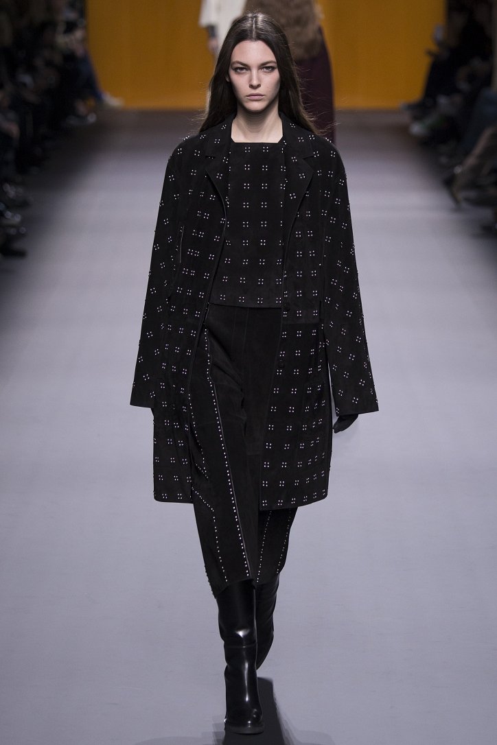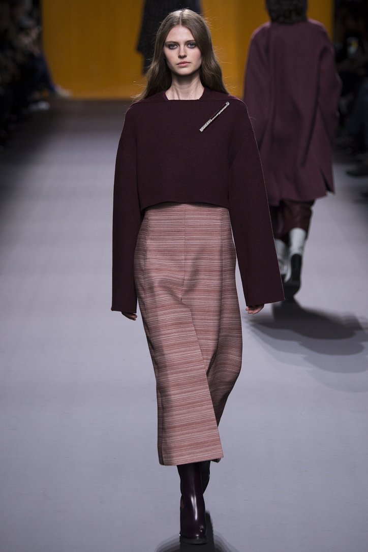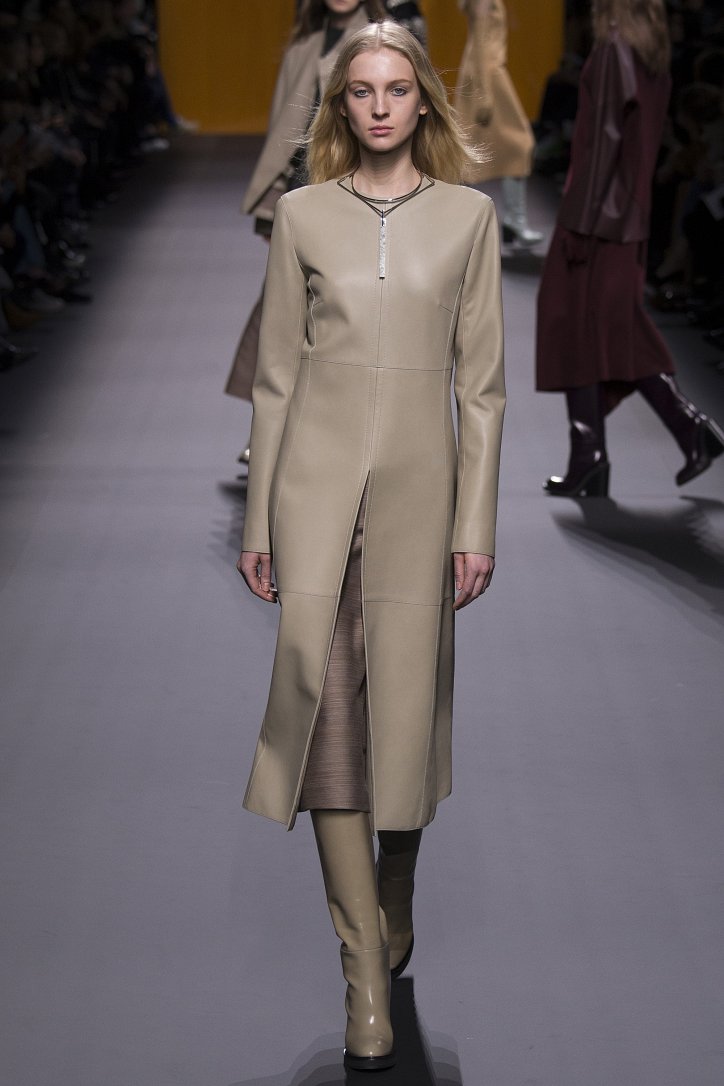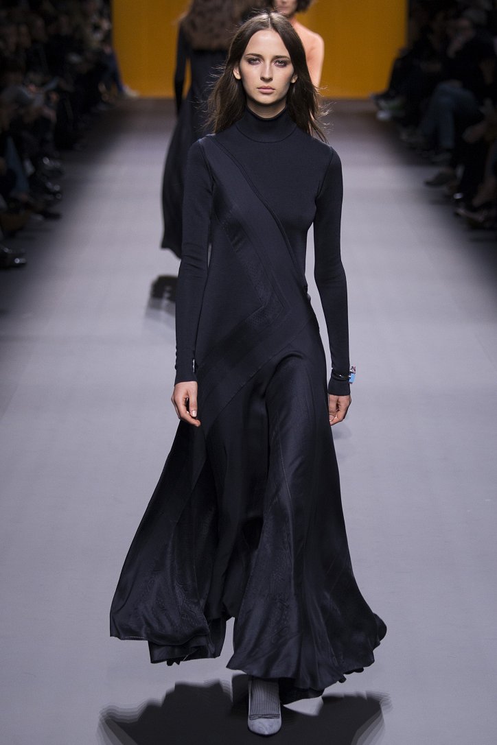 Контрастные детали, акцент на аксессуары, меховый пэчворк, сочетание разных фактур и обновленная техника Twillaine – такой увидели гости показа новую коллекцию Hermès осень-зима 2016-2017. Критики приняли новаторство Надеж Ване-Цыбульски вполне благосклонно: помня о традициях дома моды, креативный директор весьма удачно их модернизировала. Ансамбли в спокойной цветовой гамме она дополнила яркой обувью или контрастными элементами, традиционный кашемир и кожу разбавила фактурными модными дубленками и верхней одеждой из меха. Но самым интересным решением стало использование в крое юбок легендарной техники бренда - Twillaine, которая позволяет «вживлять» в трикотаж шелковые платки-каре.
