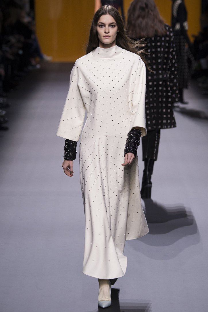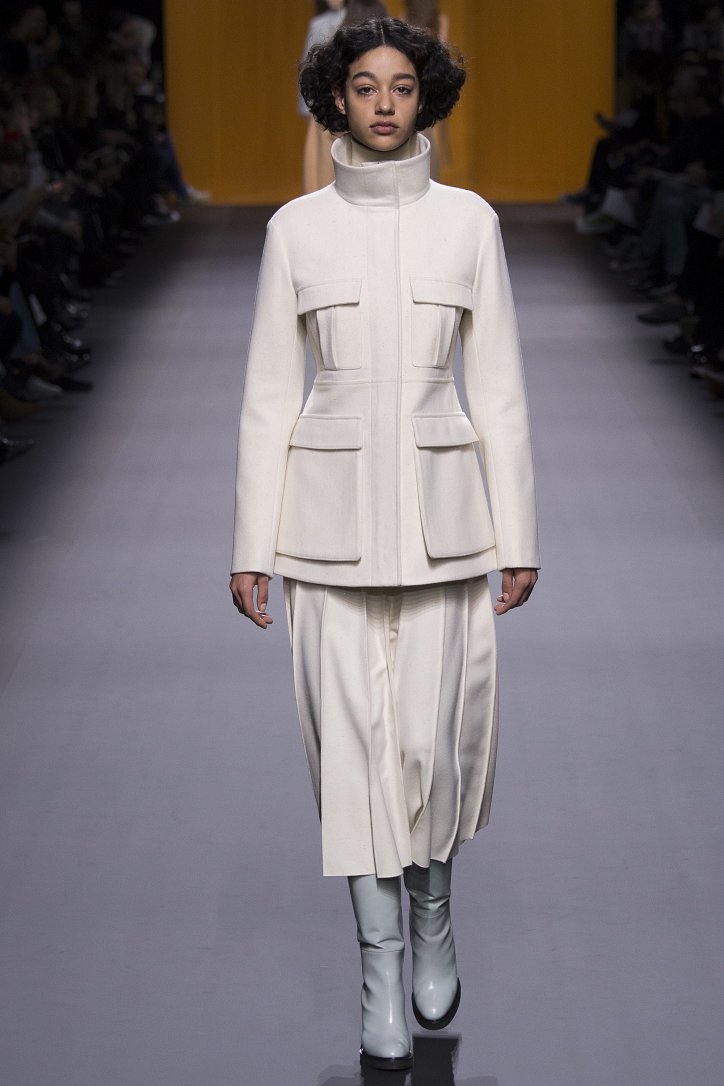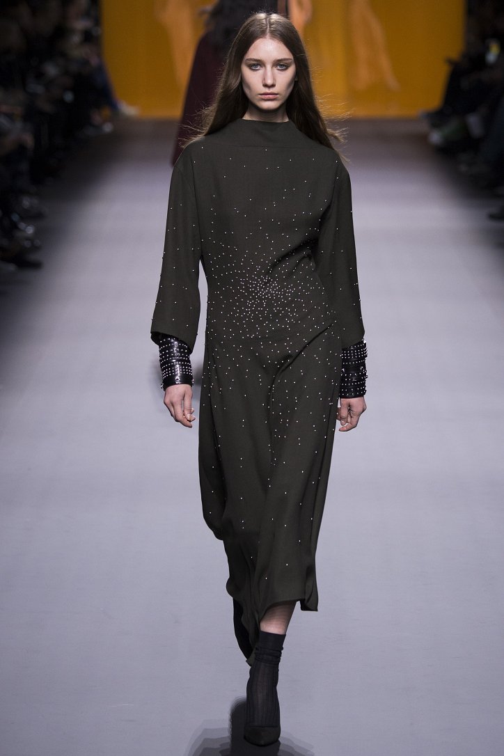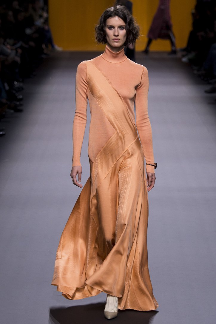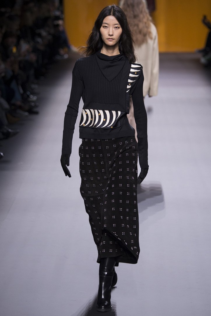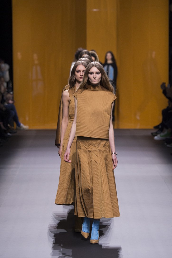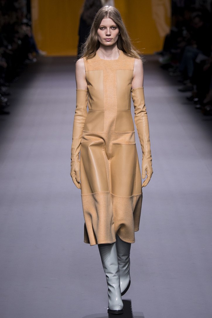 Контрастные детали, акцент на аксессуары, меховый пэчворк, сочетание разных фактур и обновленная техника Twillaine – такой увидели гости показа новую коллекцию Hermès осень-зима 2016-2017. Критики приняли новаторство Надеж Ване-Цыбульски вполне благосклонно: помня о традициях дома моды, креативный директор весьма удачно их модернизировала. Ансамбли в спокойной цветовой гамме она дополнила яркой обувью или контрастными элементами, традиционный кашемир и кожу разбавила фактурными модными дубленками и верхней одеждой из меха. Но самым интересным решением стало использование в крое юбок легендарной техники бренда - Twillaine, которая позволяет «вживлять» в трикотаж шелковые платки-каре.