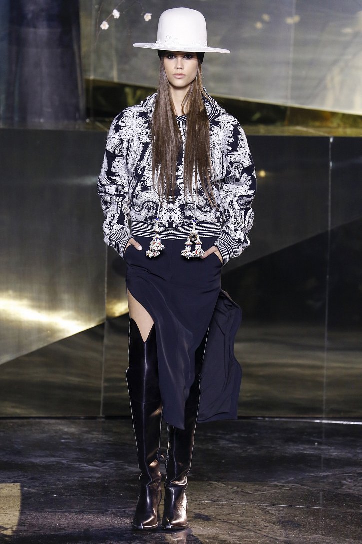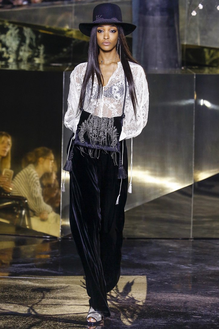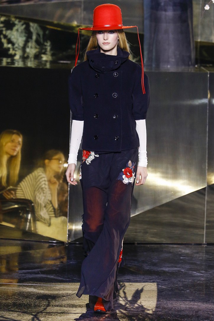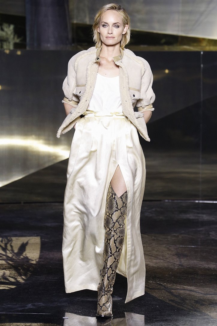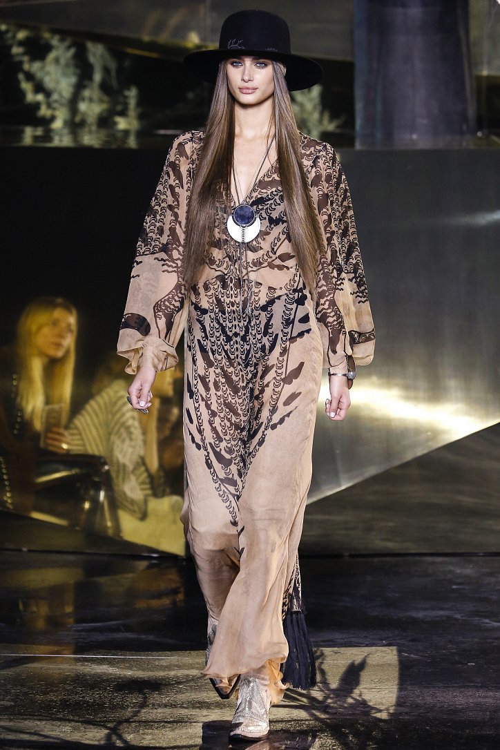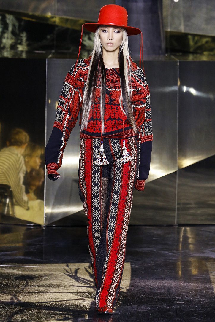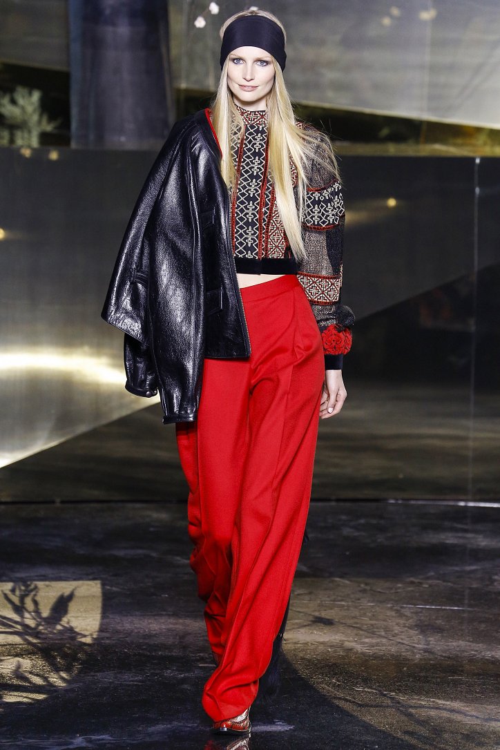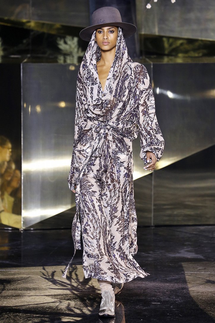 Что ж до самой коллекции, но ее изюминкой стали… шляпы гаучо. И высокие ковбойские сапоги из кожи и замши с вызывающим хищным принтом. Все эти аксессуары дополняли брючные костюмы, оригинальные «большемерные» пальто, дубленки, корсеты из «мужских» тканей, свободные платья и блузы с принтами, напоминающими национальную шведскую вышивку, широкие брюки на высокой талии, прозрачные топы, блузы и костюмы в бельевом стиле.