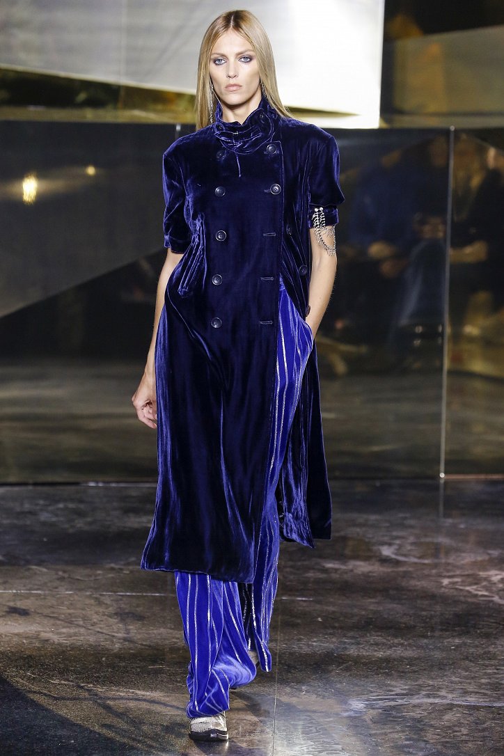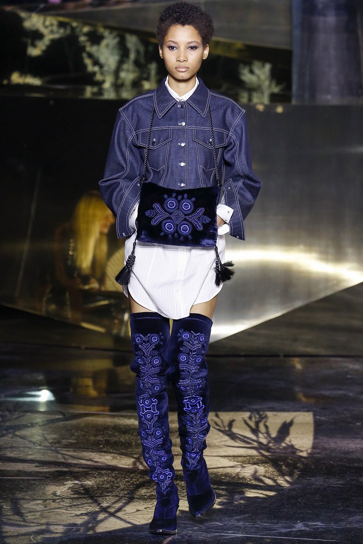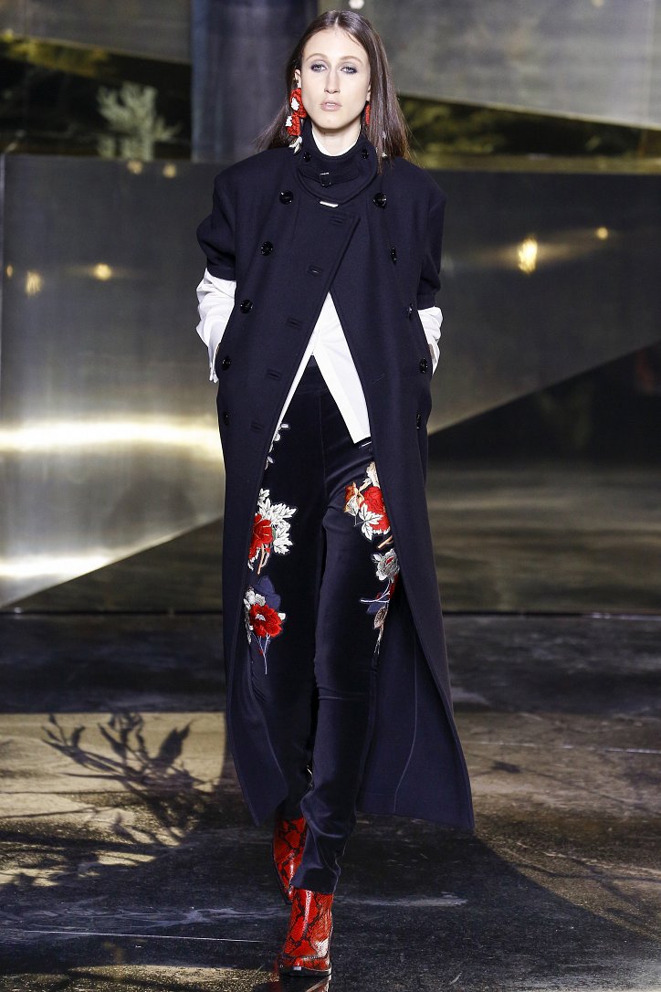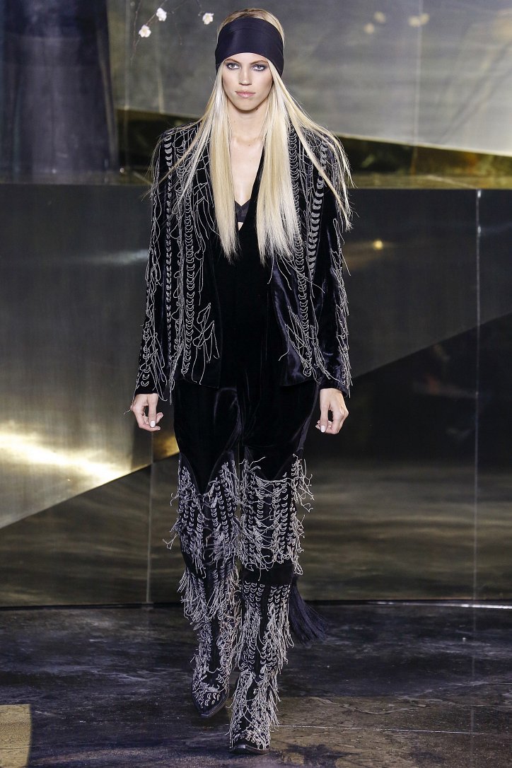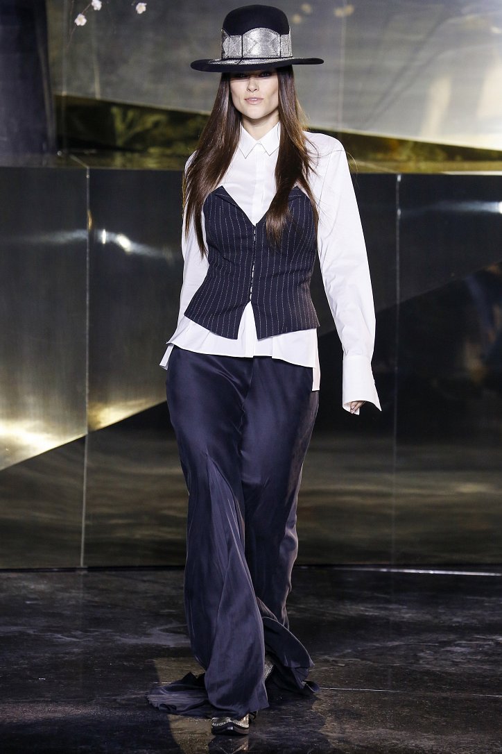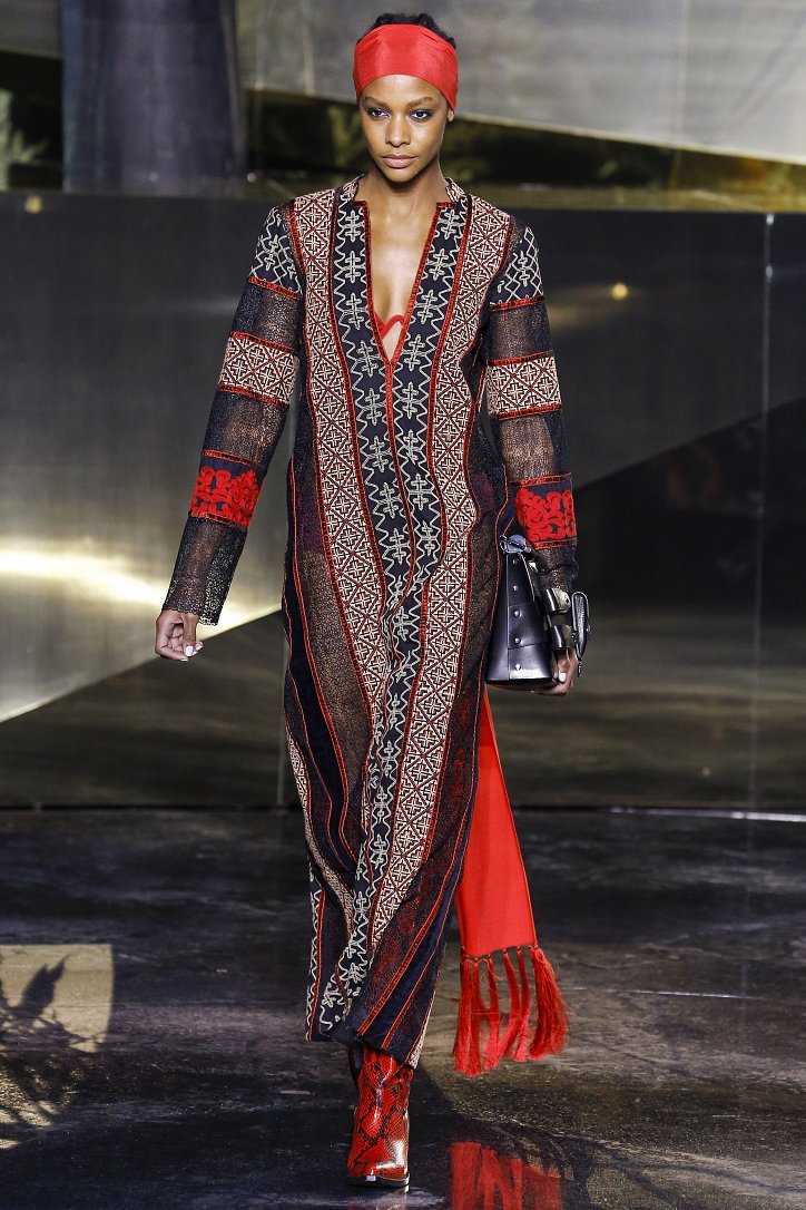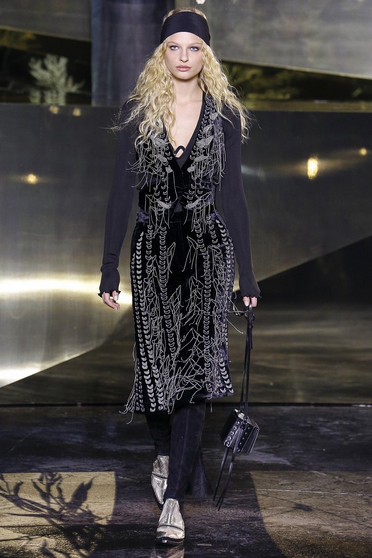 Что ж до самой коллекции, но ее изюминкой стали… шляпы гаучо. И высокие ковбойские сапоги из кожи и замши с вызывающим хищным принтом. Все эти аксессуары дополняли брючные костюмы, оригинальные «большемерные» пальто, дубленки, корсеты из «мужских» тканей, свободные платья и блузы с принтами, напоминающими национальную шведскую вышивку, широкие брюки на высокой талии, прозрачные топы, блузы и костюмы в бельевом стиле.