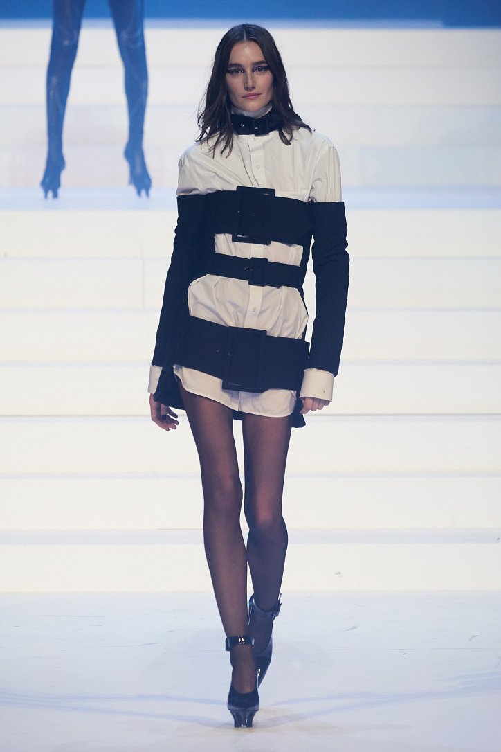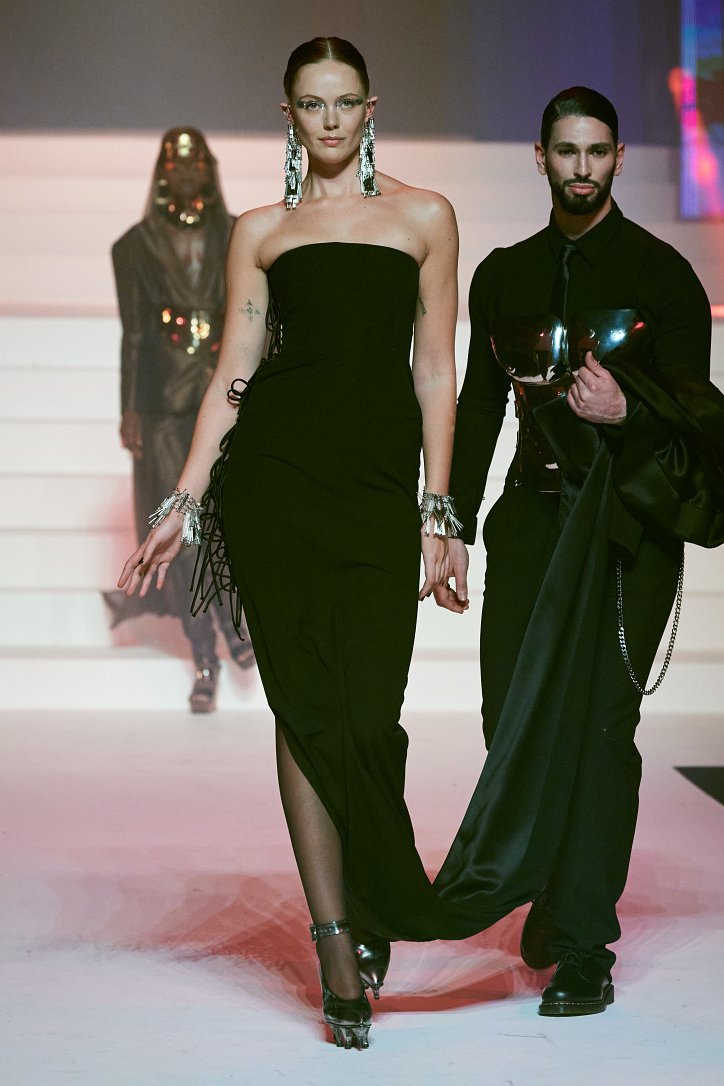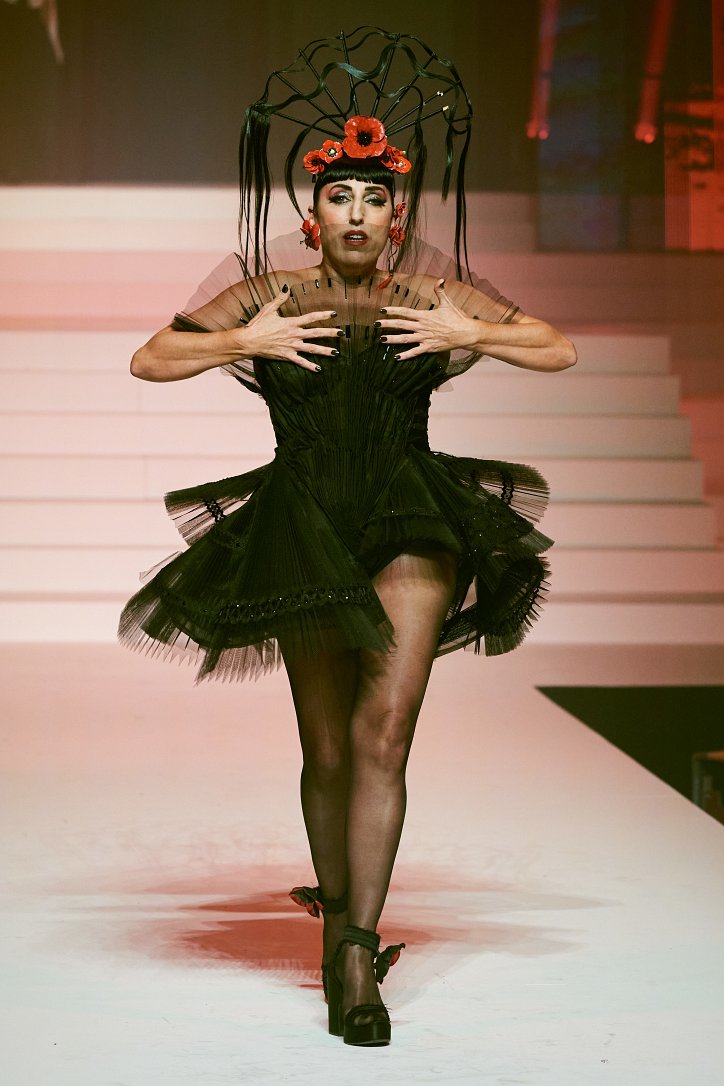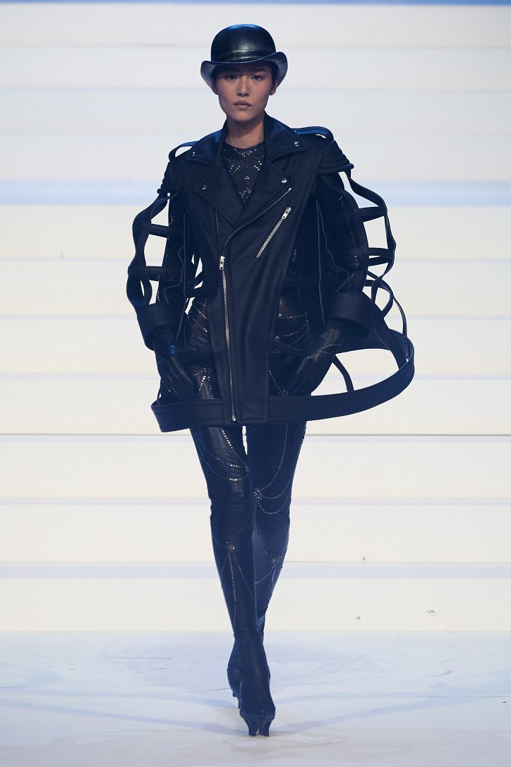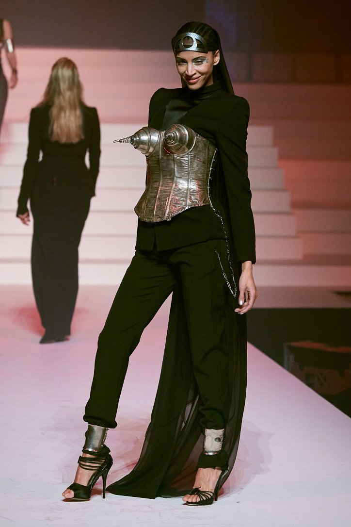 Начало шоу было глубоко символичным, немного печальным, но целиком и полностью в духе Готье: на подиум вынесли гроб, на верхней крышке которого были прикреплены 2 конуса – словно напоминание о легендарном бра Готье.