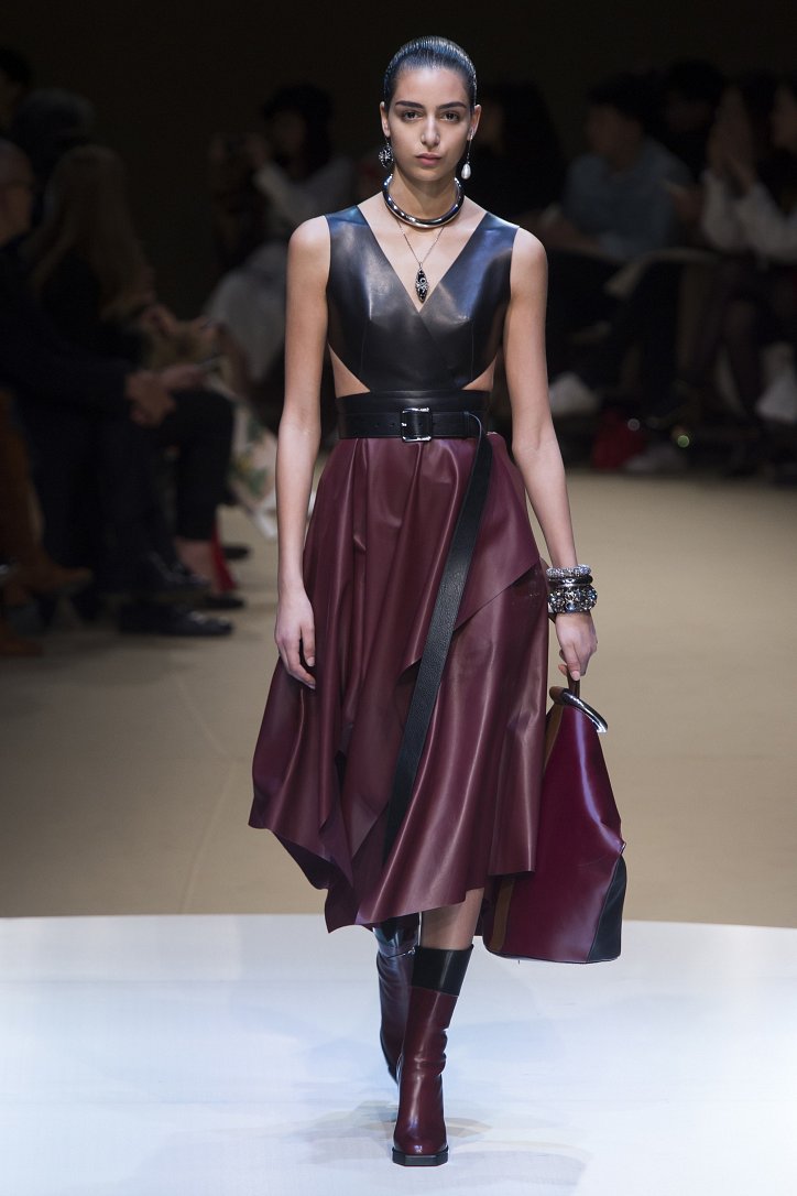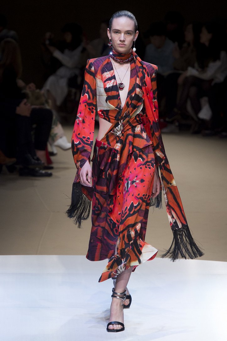 Метаморфозы – вот ключевое слово, которым характеризует свою новую коллекцию дизайнер. Когда женщине необходимо проявить силу – она одевается, словно амазонка, – в кожу, брючные костюмы и жакеты с квадратными плечами. Ну а мягкость – это платья-макси с длинной бахромой, полупрозрачные материалы, перья, воланы и струящиеся силуэты. Впрочем, все это может и сочетаться (ведь сила женщины – в ее слабости). Воплощение этого – платья с кожаными бюстье, шнуровка и пояса-корсеты.