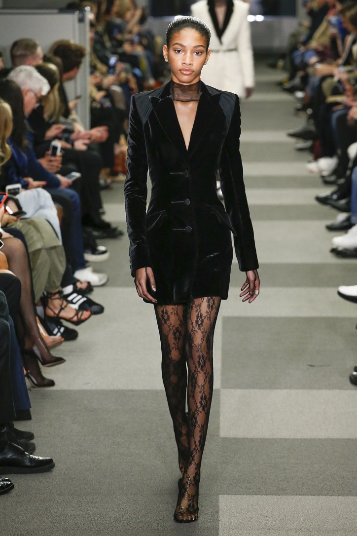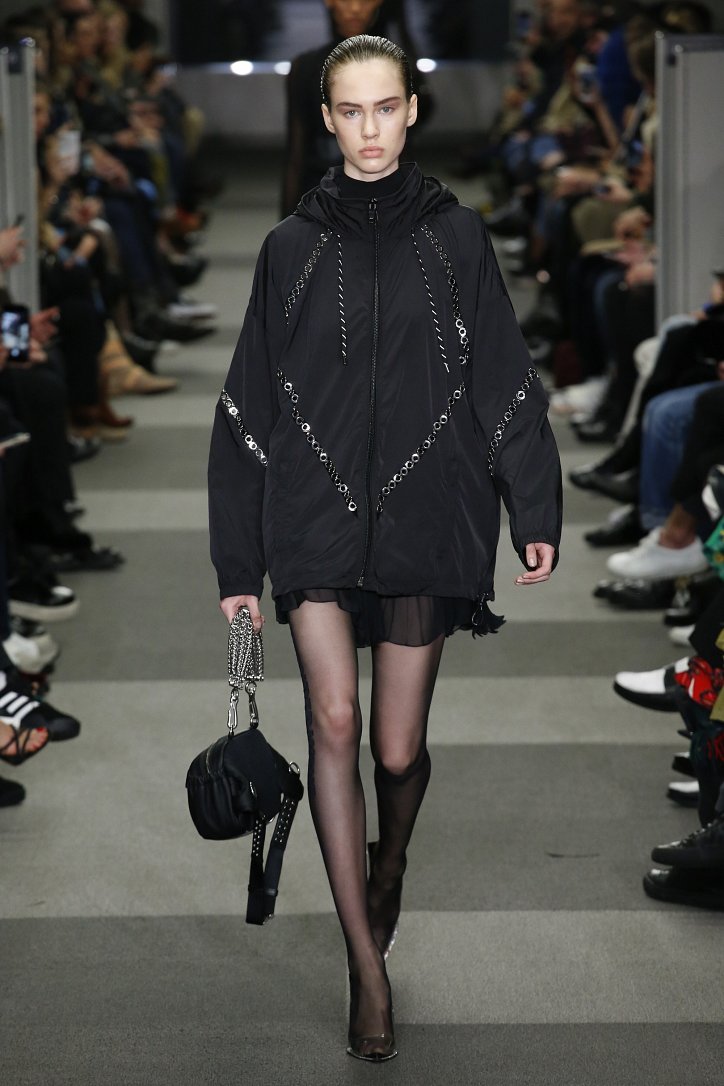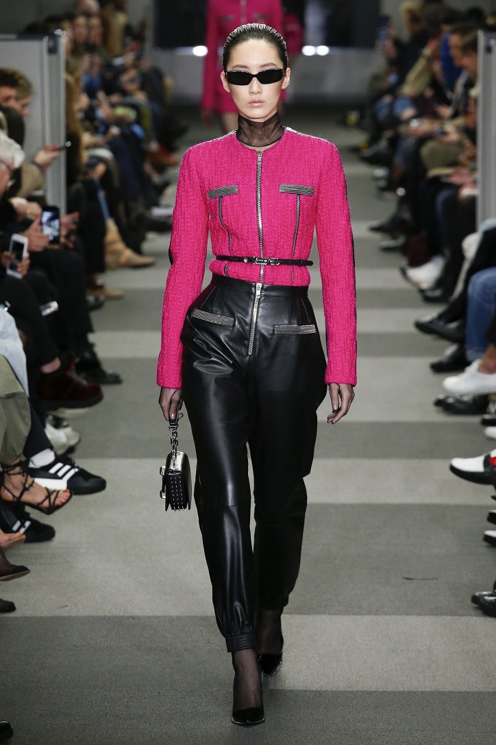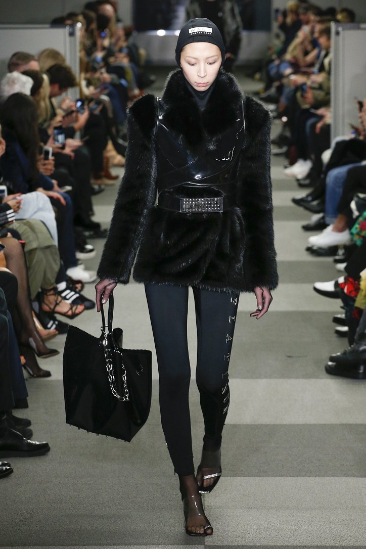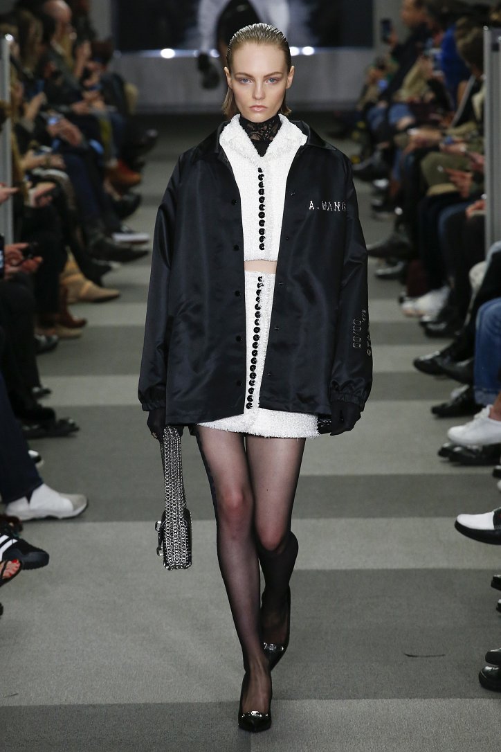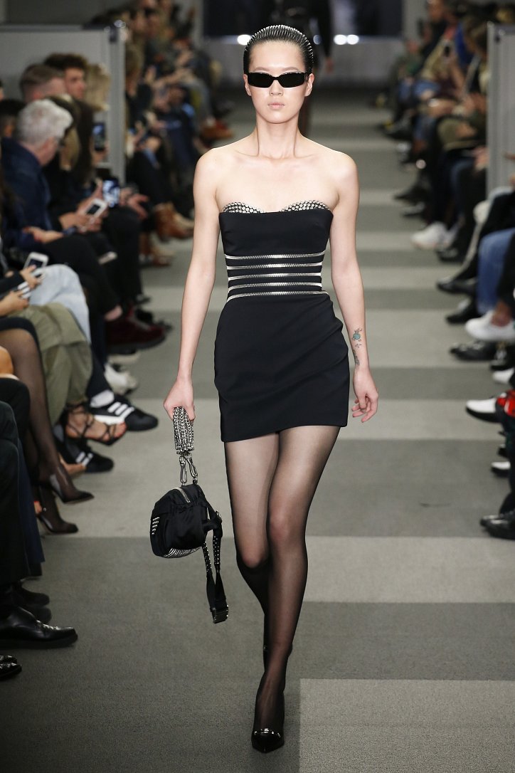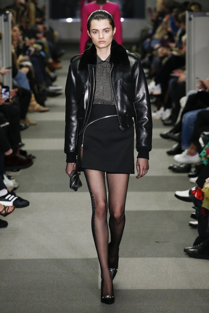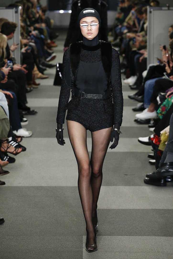 Черно-белая коллекция Alexander Wang осень-зима 2018-2019 создана для современных Тринити. Она дерзкая и сексуальная, смелая и экстравагантная. Ставку дизайнер сделал на длину мини (стремящуюся к микро), черную кожу, очки (естественно, а-ля Матрица) и рок.