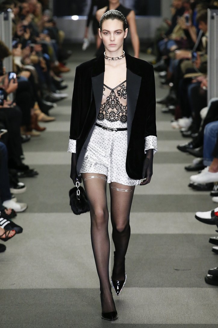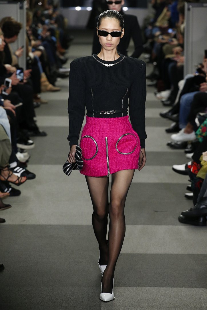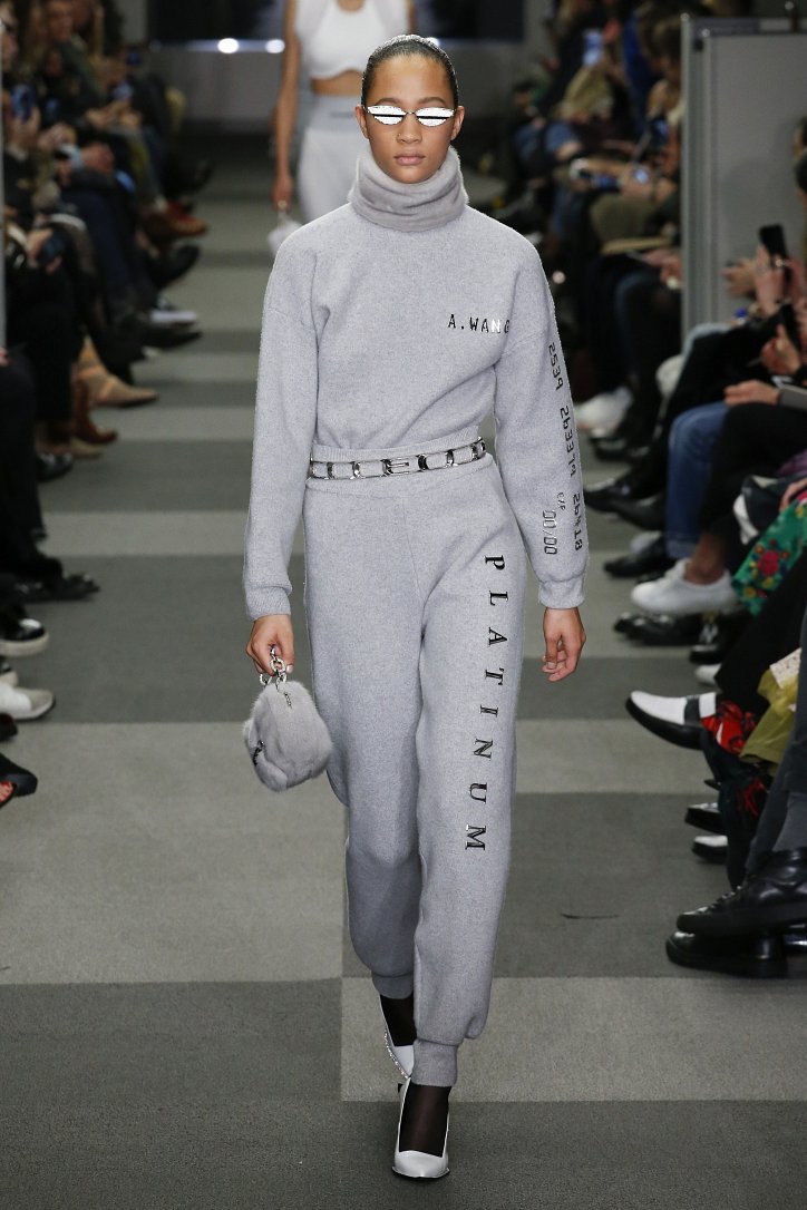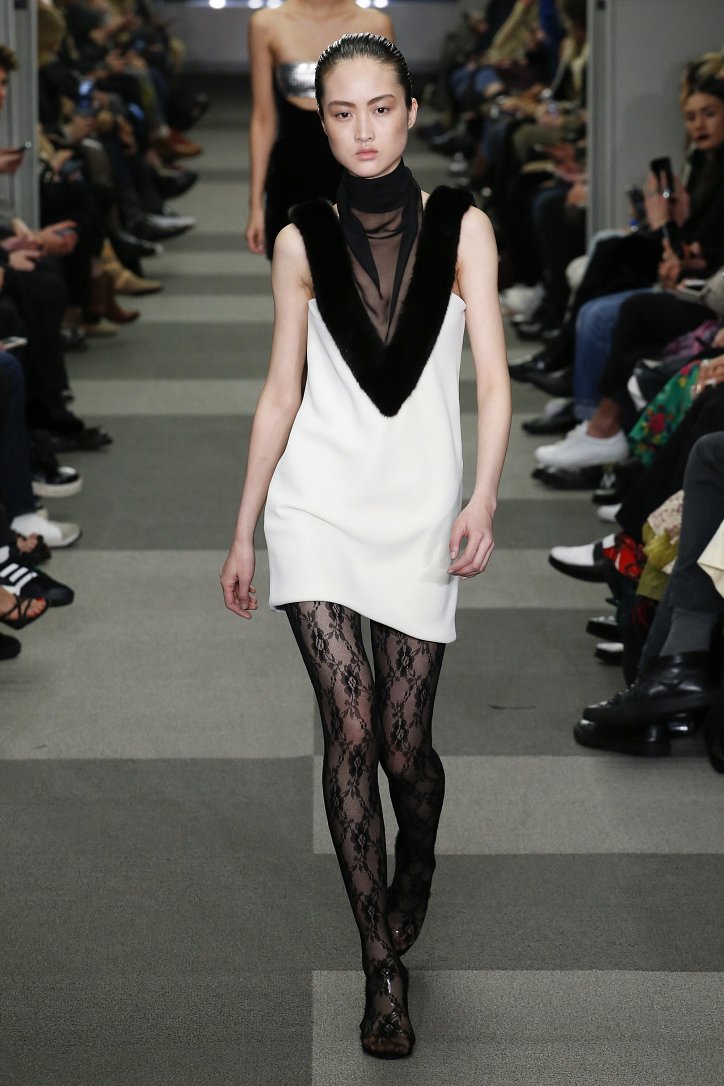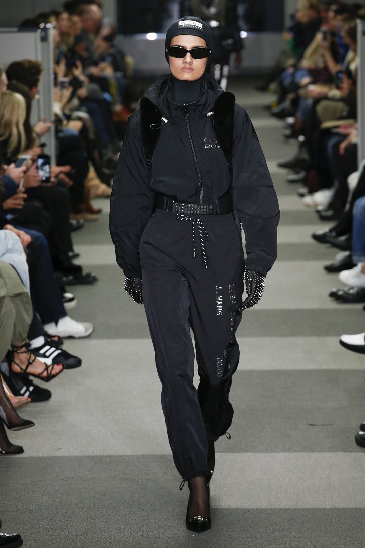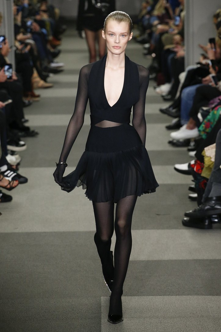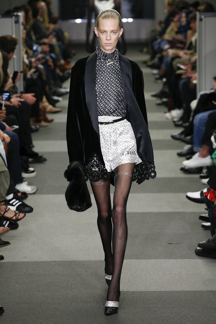 Черно-белая коллекция Alexander Wang осень-зима 2018-2019 создана для современных Тринити. Она дерзкая и сексуальная, смелая и экстравагантная. Ставку дизайнер сделал на длину мини (стремящуюся к микро), черную кожу, очки (естественно, а-ля Матрица) и рок.