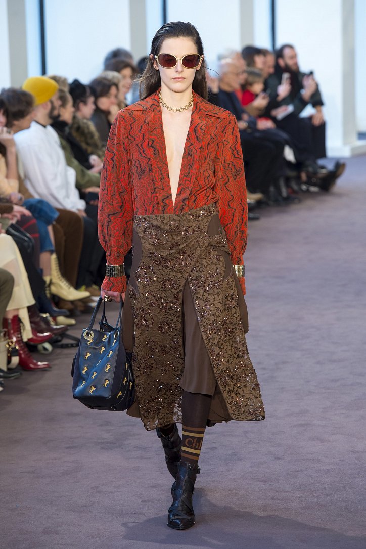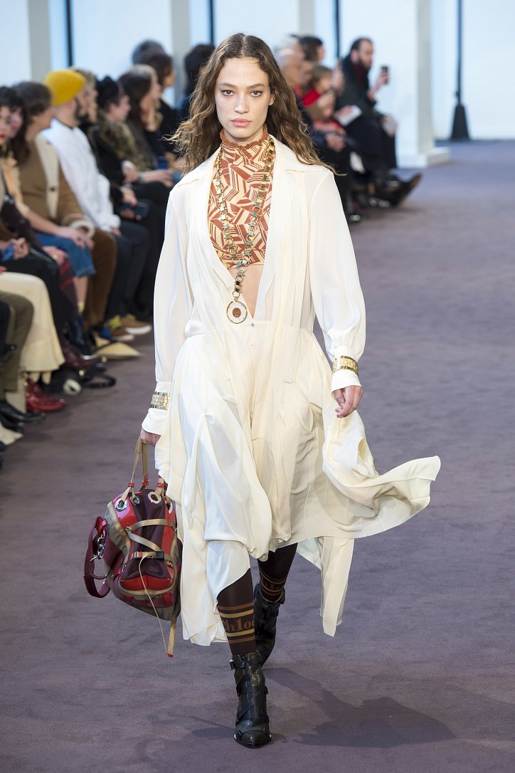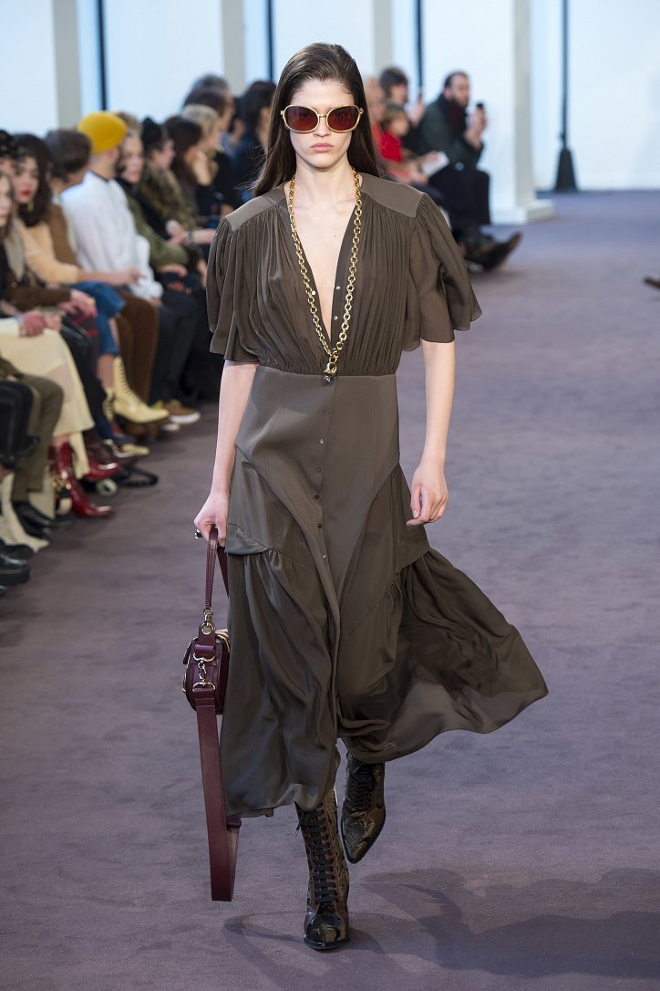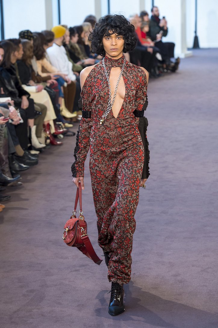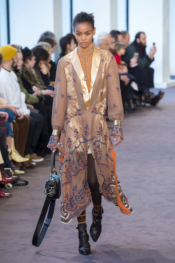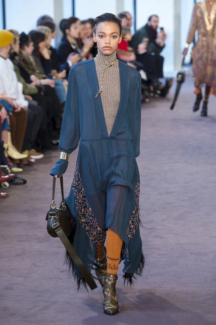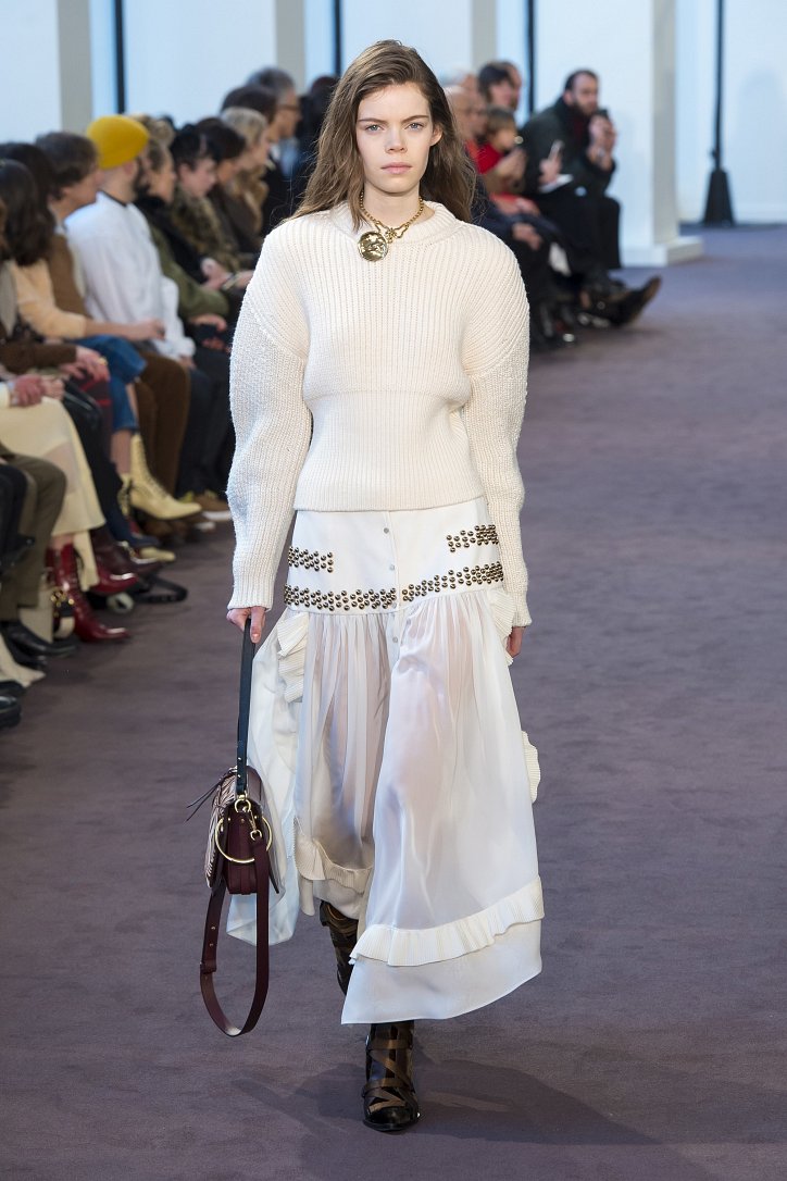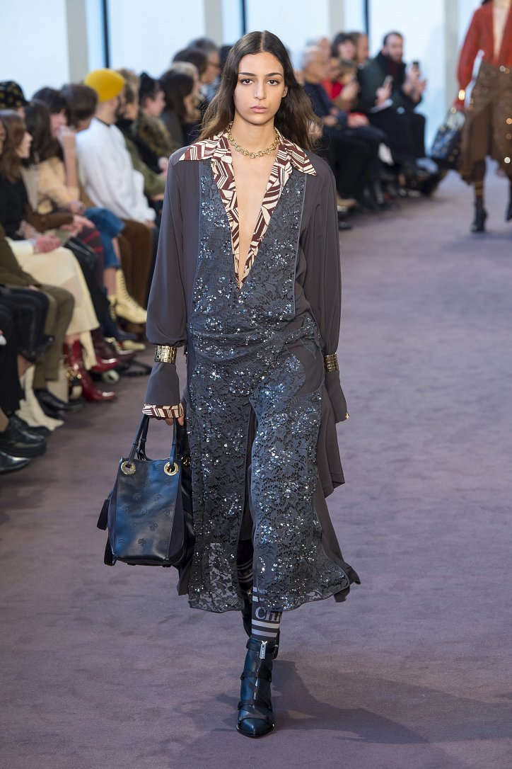 Вторая коллекция Наташи Рамсей-Леви для дома моды Chloé получилась сложной и кинематографичной – вдохновлялась дизайнер образами звезд 70-ых: Анжелики Хьюстон, Сисси Спейсек, Изабель Хупперт и Стефан Аудран. Магнетизм их ауры она и пыталась передать в коллекции Chloé осень-зима 2018-2019.