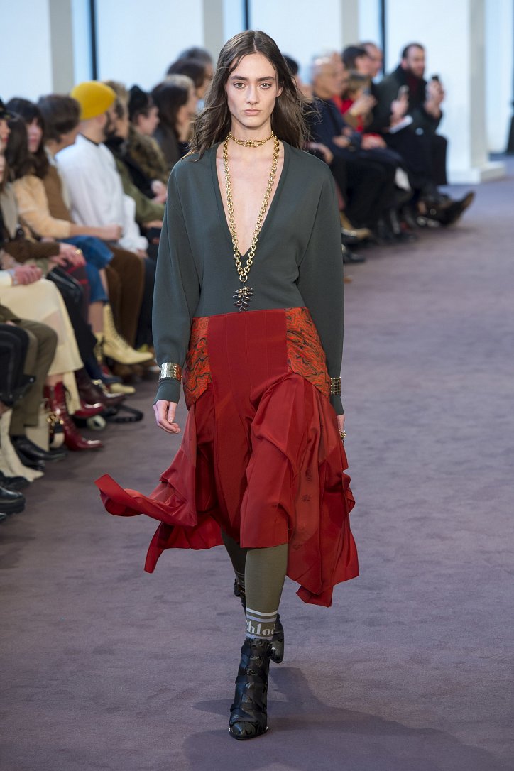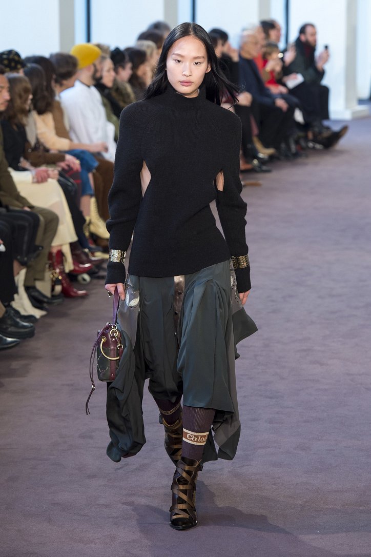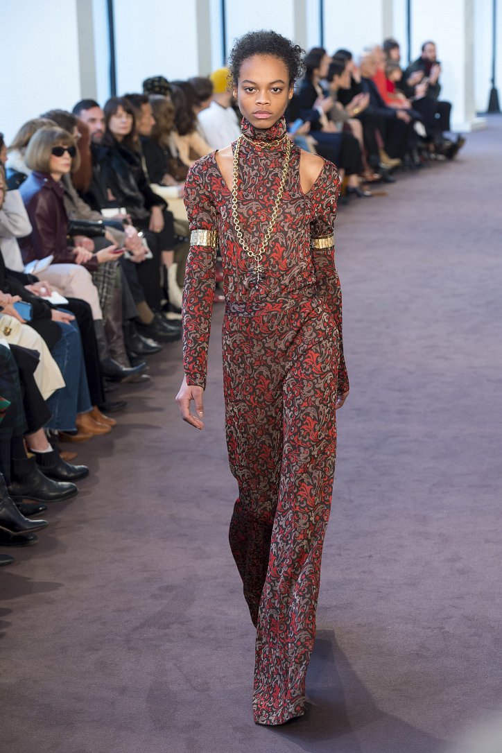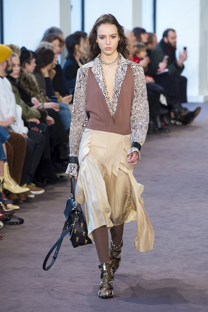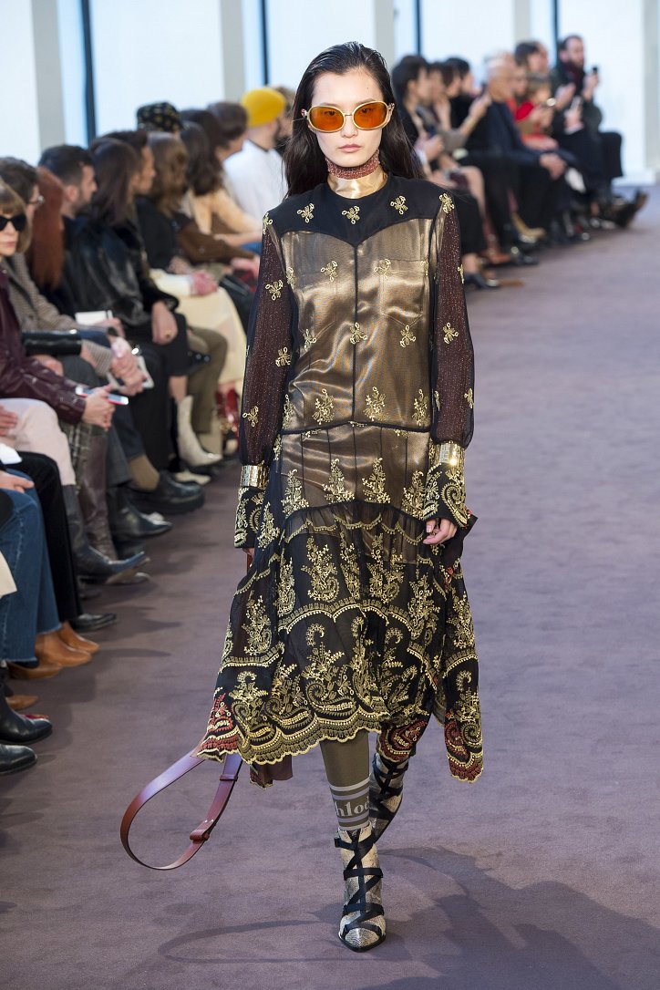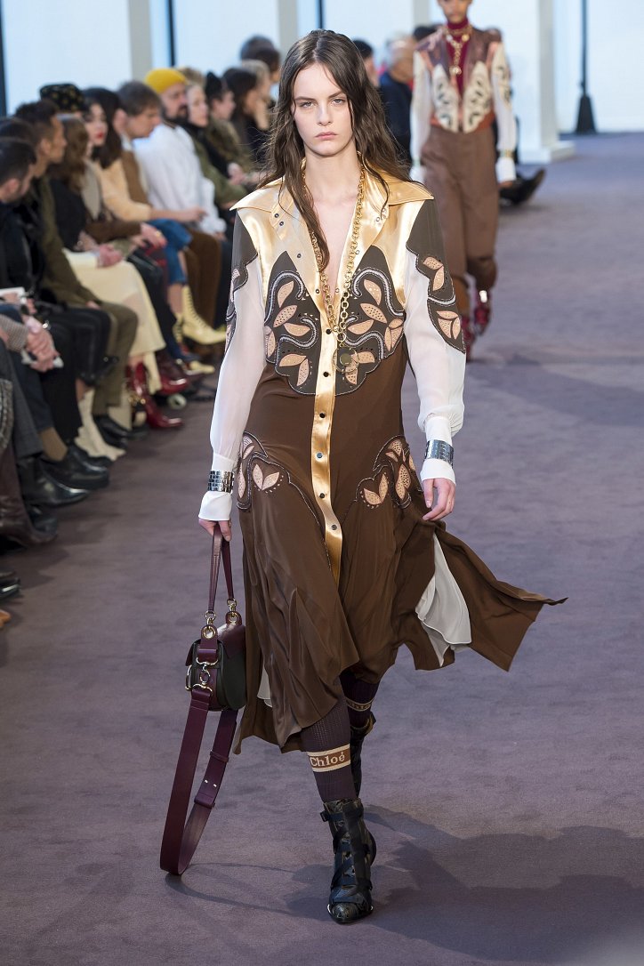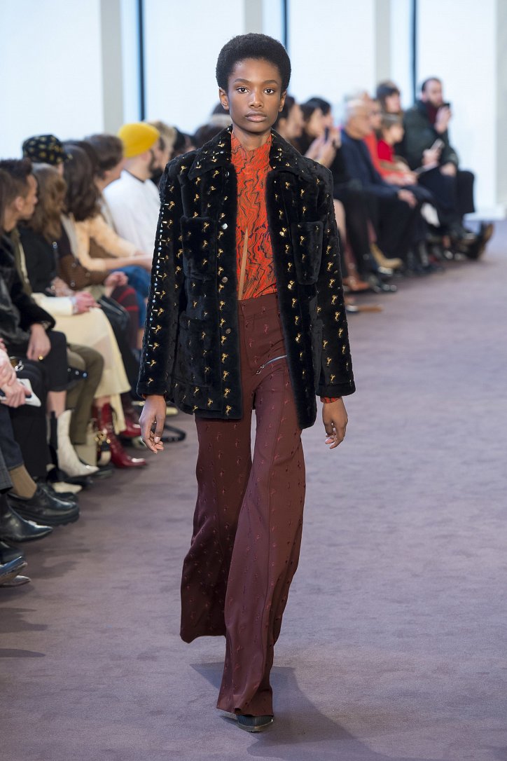 Вторая коллекция Наташи Рамсей-Леви для дома моды Chloé получилась сложной и кинематографичной – вдохновлялась дизайнер образами звезд 70-ых: Анжелики Хьюстон, Сисси Спейсек, Изабель Хупперт и Стефан Аудран. Магнетизм их ауры она и пыталась передать в коллекции Chloé осень-зима 2018-2019.