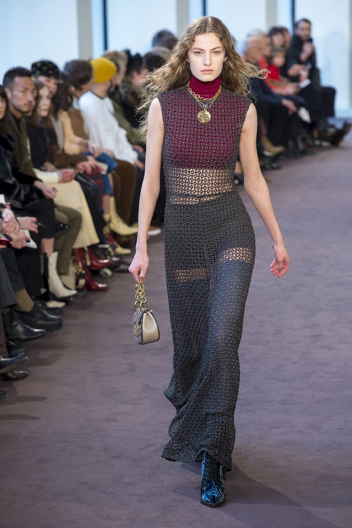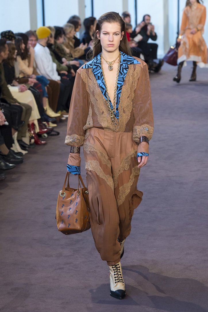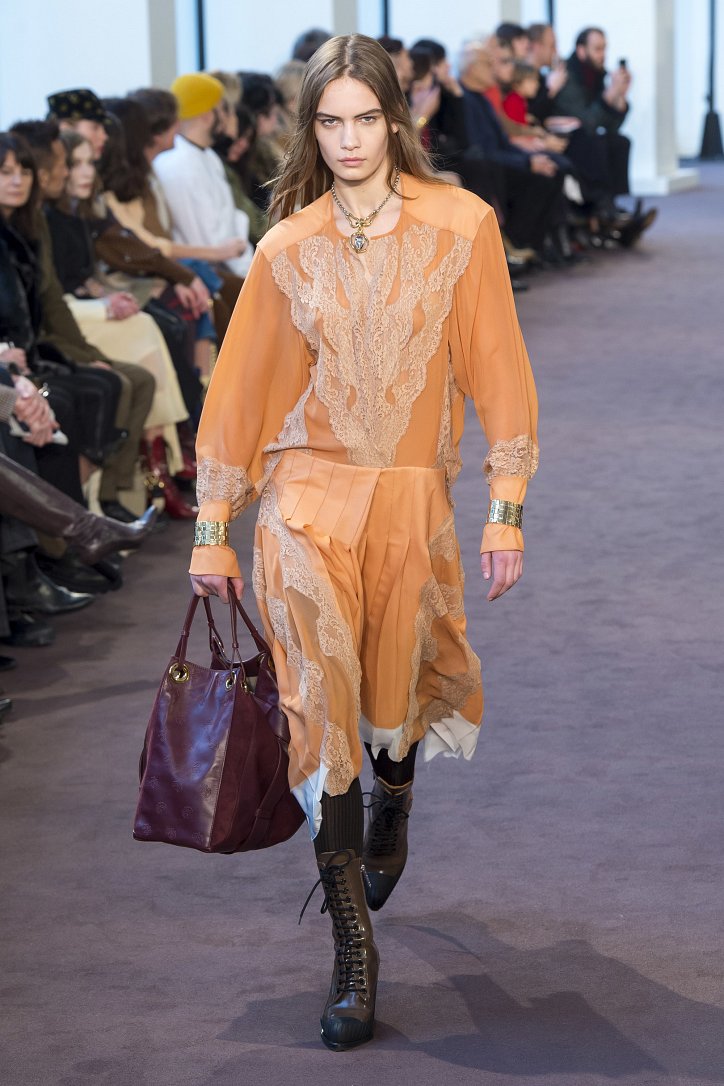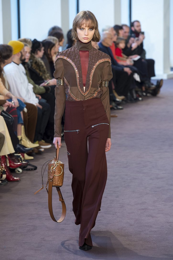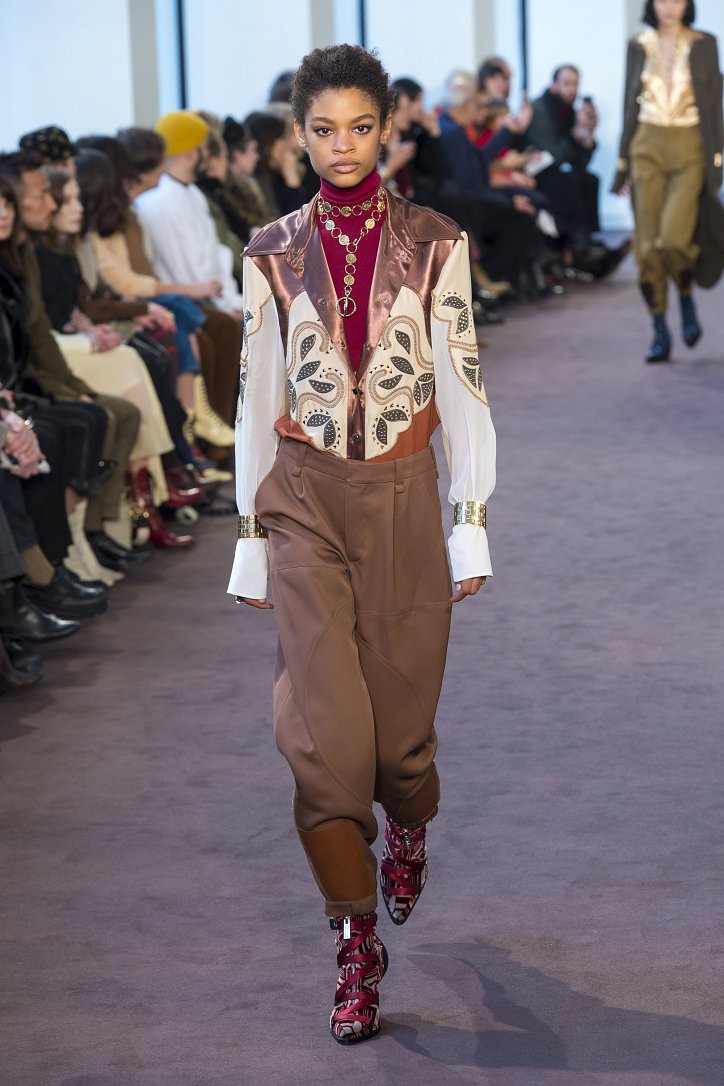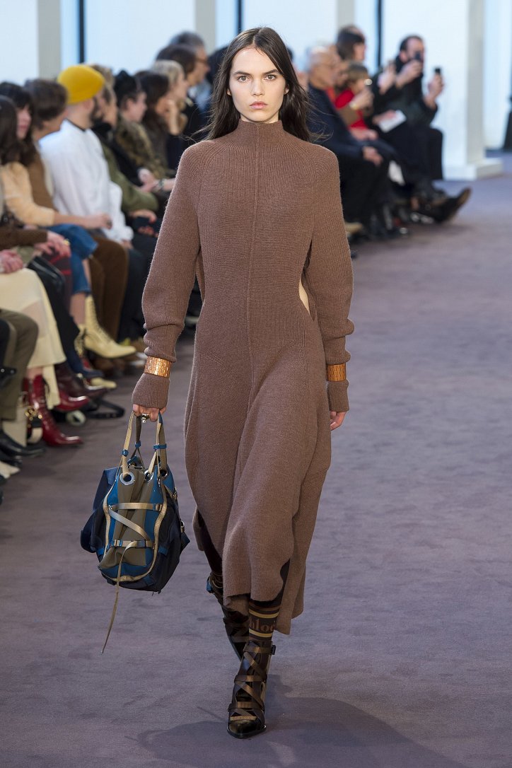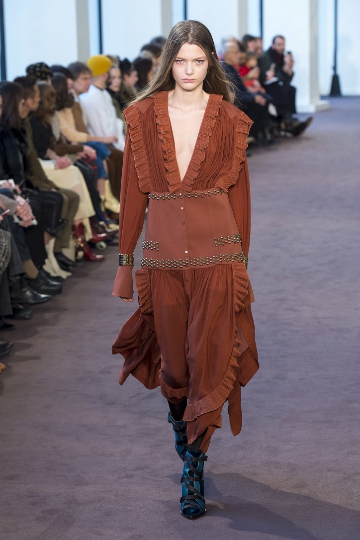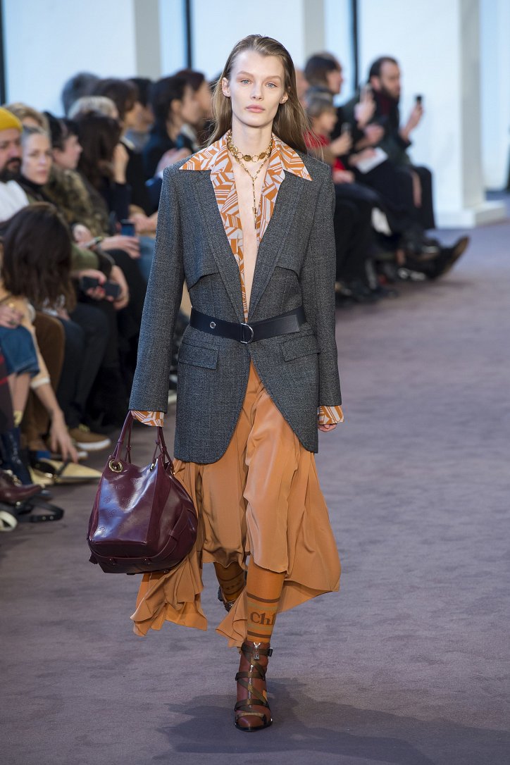 Вторая коллекция Наташи Рамсей-Леви для дома моды Chloé получилась сложной и кинематографичной – вдохновлялась дизайнер образами звезд 70-ых: Анжелики Хьюстон, Сисси Спейсек, Изабель Хупперт и Стефан Аудран. Магнетизм их ауры она и пыталась передать в коллекции Chloé осень-зима 2018-2019.
