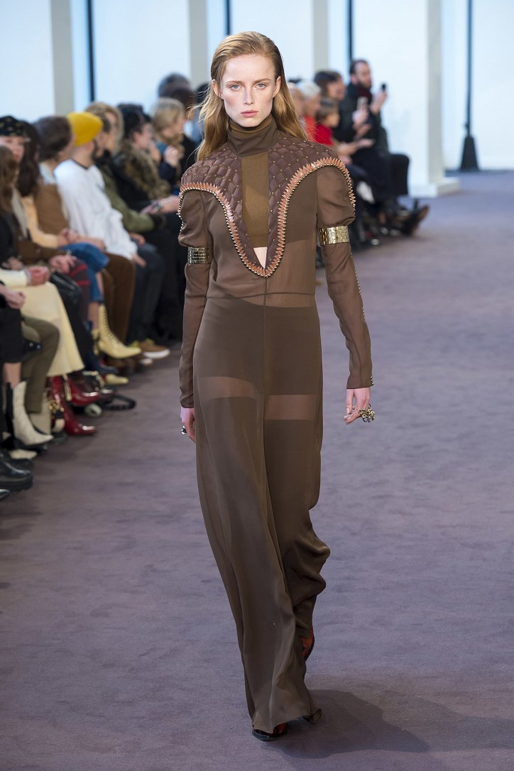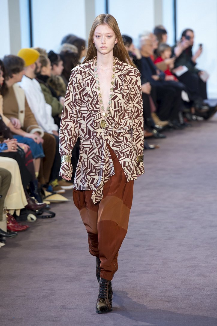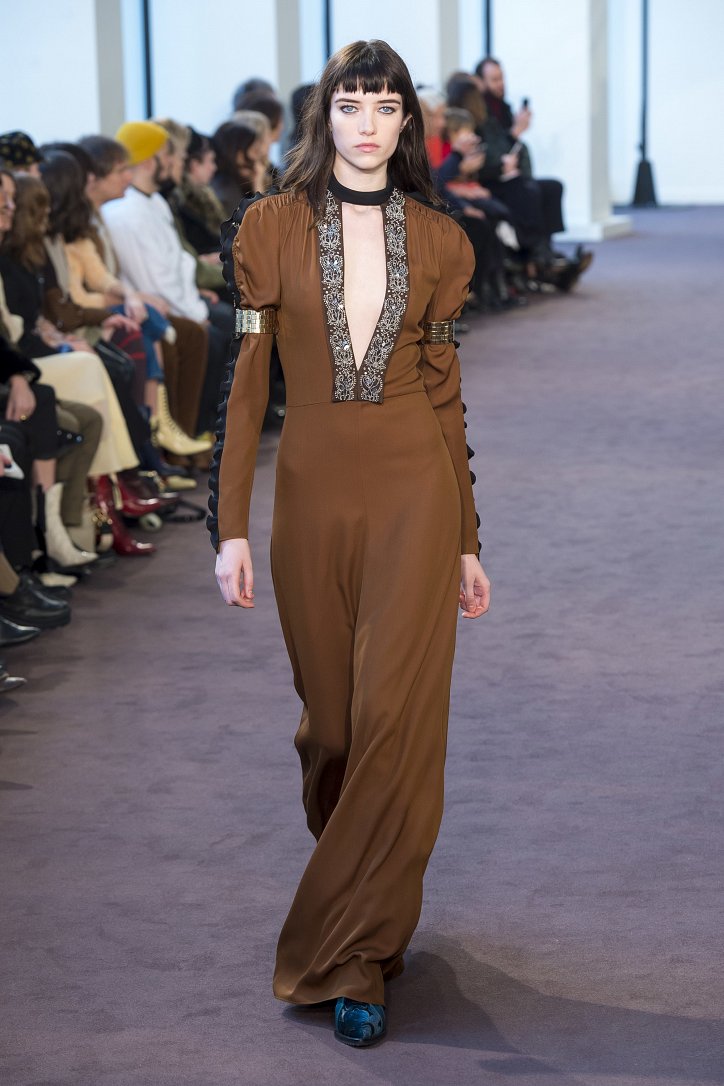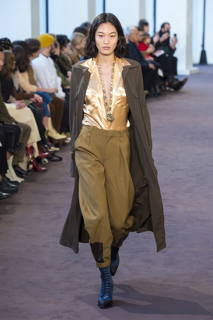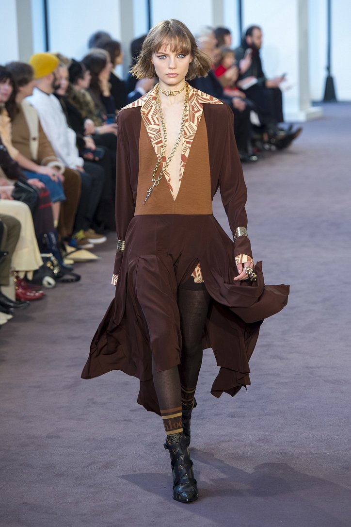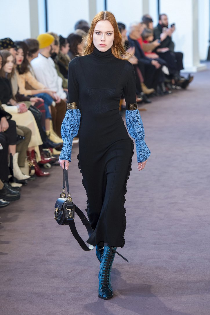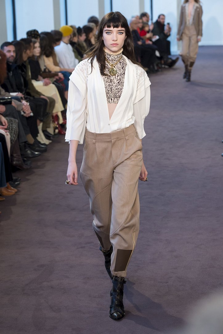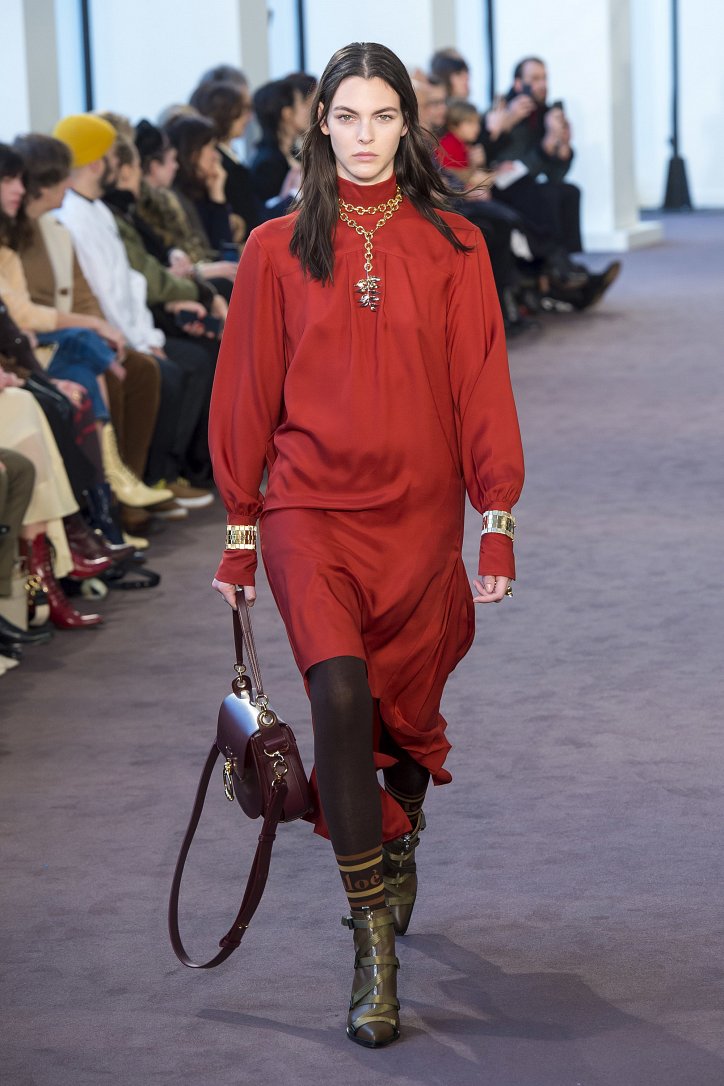 Вторая коллекция Наташи Рамсей-Леви для дома моды Chloé получилась сложной и кинематографичной – вдохновлялась дизайнер образами звезд 70-ых: Анжелики Хьюстон, Сисси Спейсек, Изабель Хупперт и Стефан Аудран. Магнетизм их ауры она и пыталась передать в коллекции Chloé осень-зима 2018-2019.