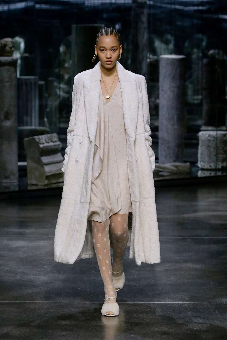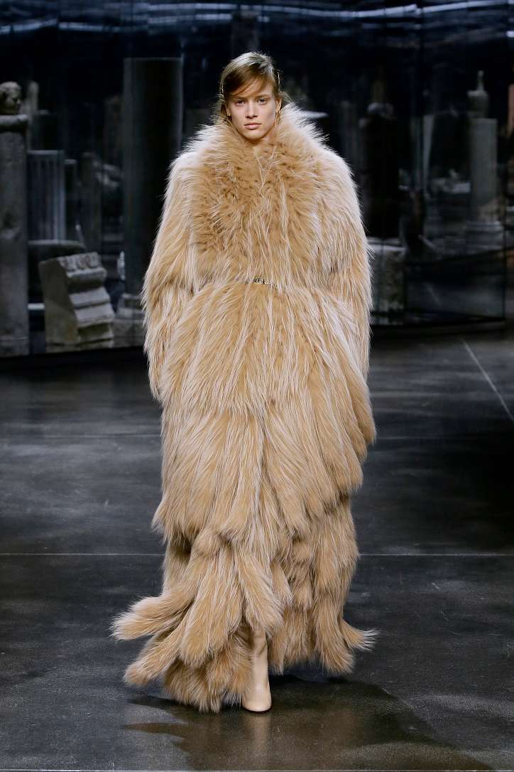 Воспевая каноны дома моды, дизайнер переосмысливает их в новой эпохе, в новой реальности. Наиболее показательна в этом плане длинная лисья шуба – она была создана из переработанного меха.