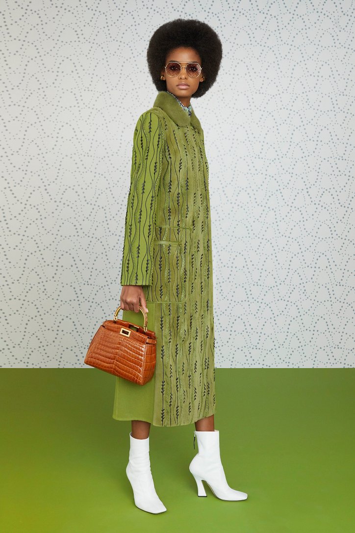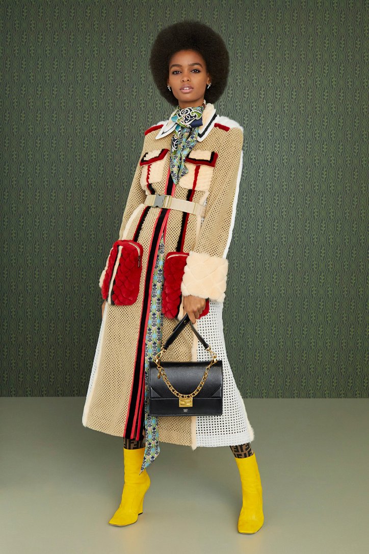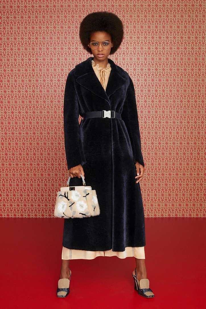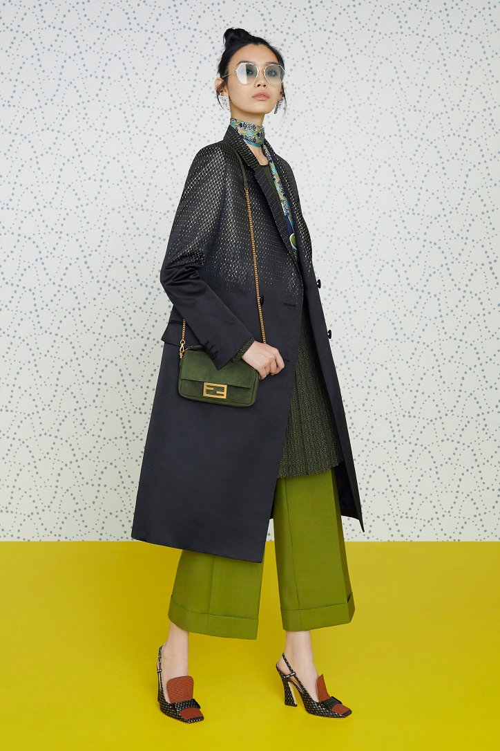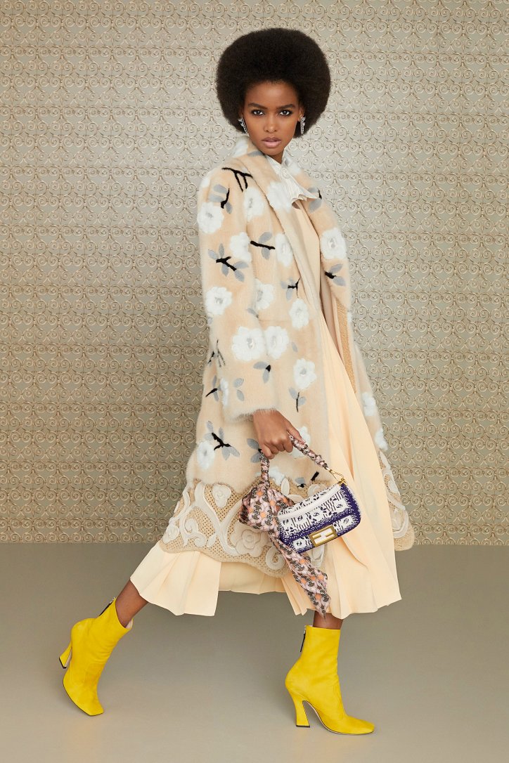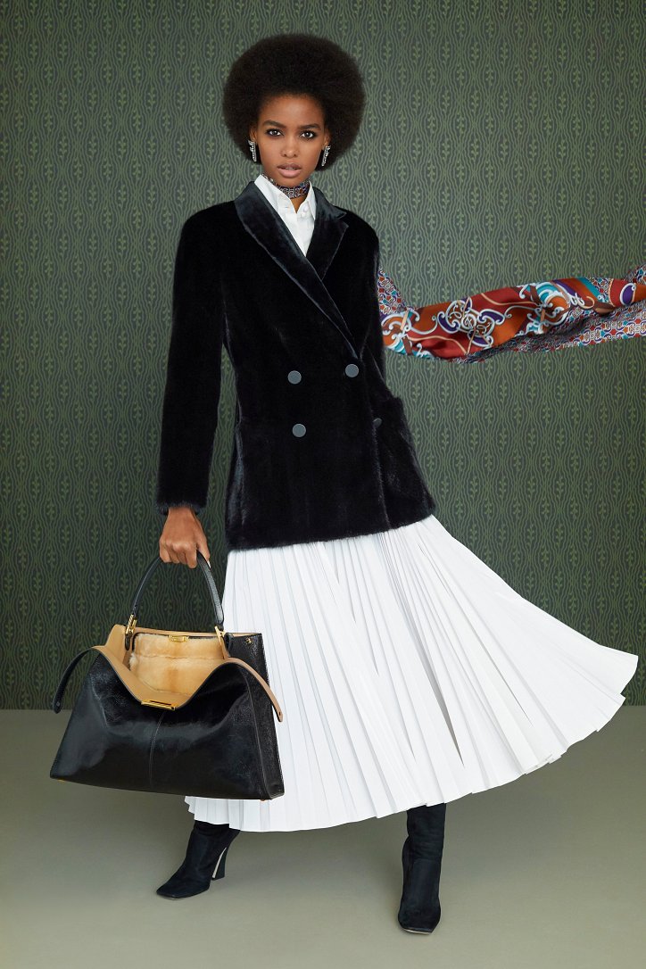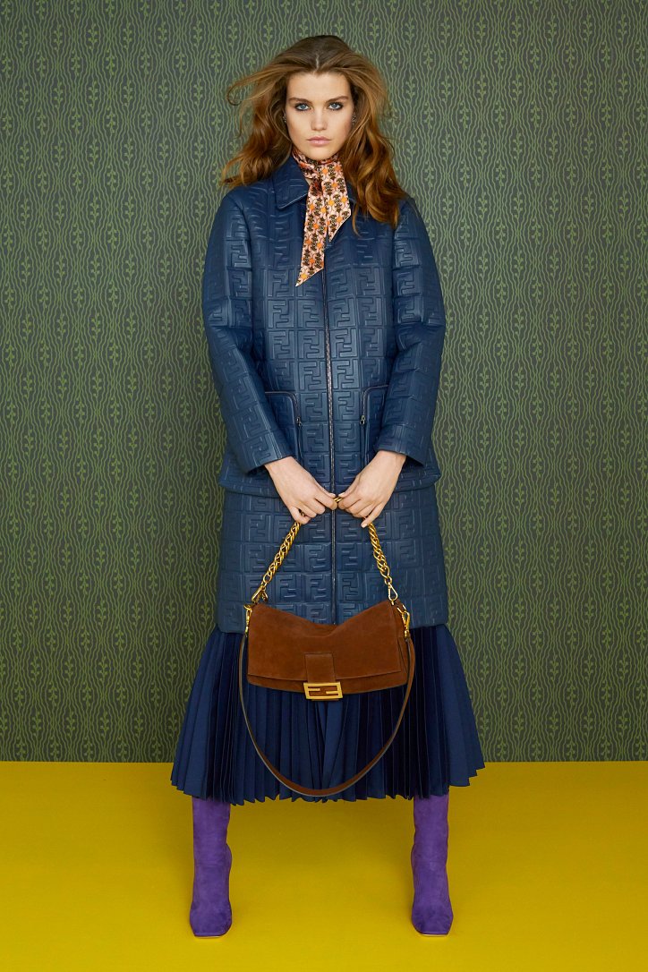 Стильные брючные костюмы и прямые, свободного кроя пальто, жаккардовые жакеты «под пояс» и плиссированные юбки миди, меховой бомбер-оверсайз, лаконичные шубы и дубленки… Коллекция Fendi вызывает лишь одно желание – скупить ее целиком и полностью. Но вы ни за что не догадаетесь, где на сей раз черпали вдохновение дизайнеры: Karl Lagerfeld и Silvia Venturini Fendi, готовя межсезонную коллекцию, изучали книгу о железных французских воротах XIX века и антикварное издание о мужских японских кимоно! Вот этот «диалог» между причудливой графикой барокко и едва заметными микроузорами и вели в коллекции принты, которыми мэтр украсил платья-плиссе и «бомберы» в стиле oversize.