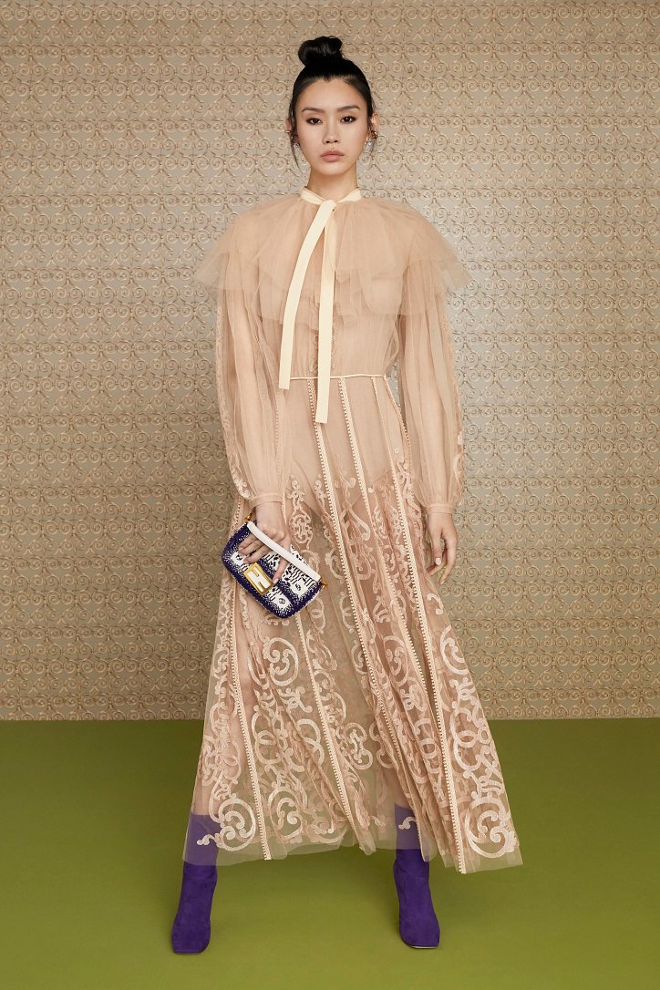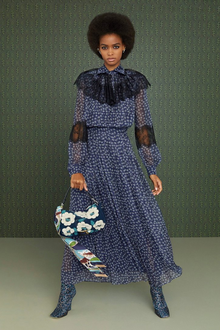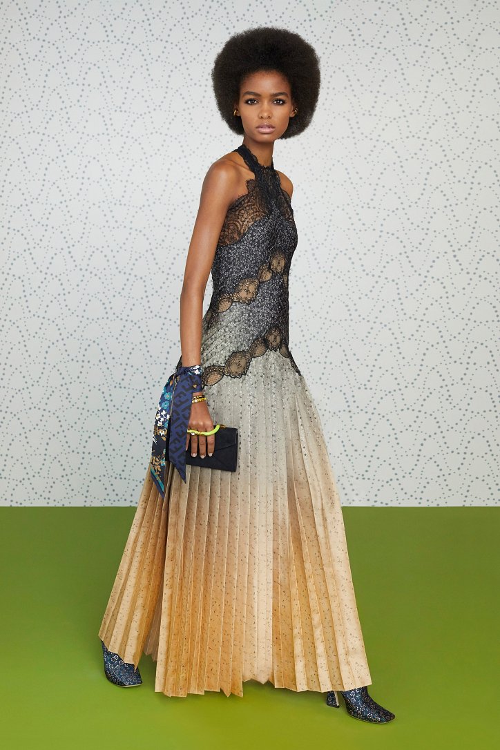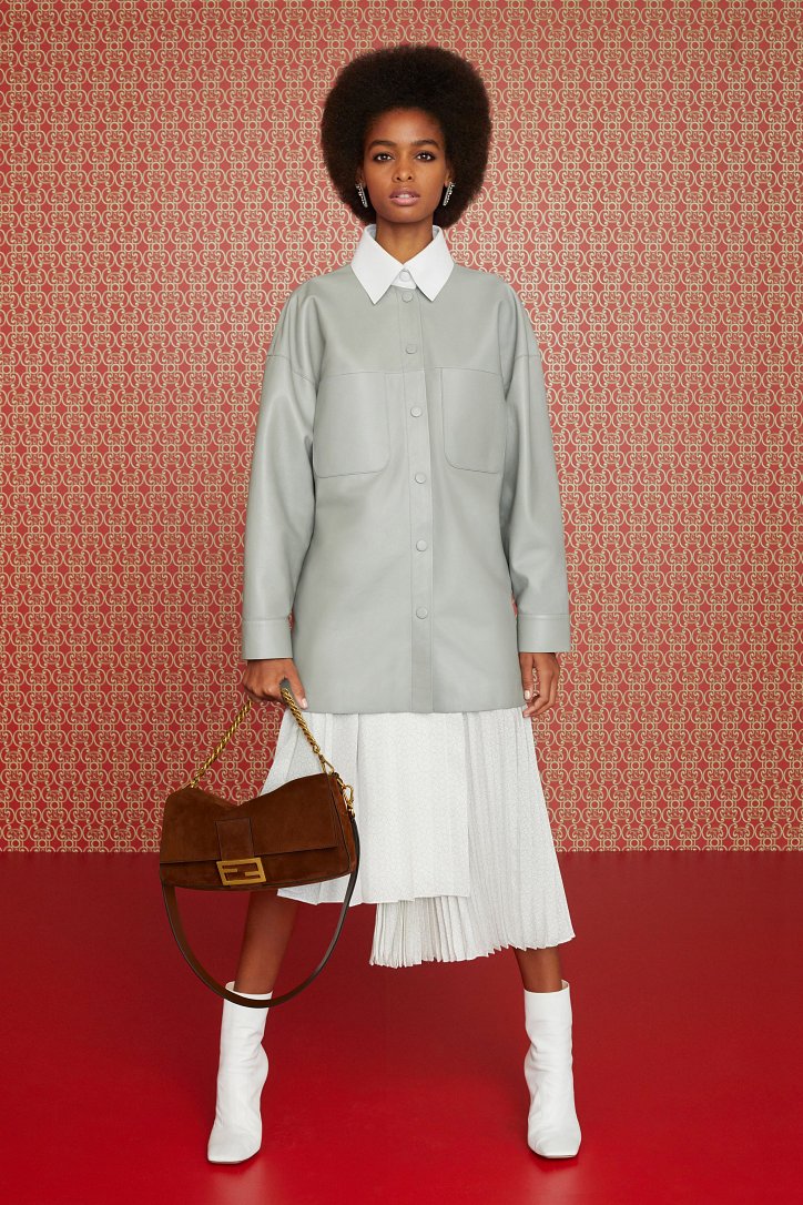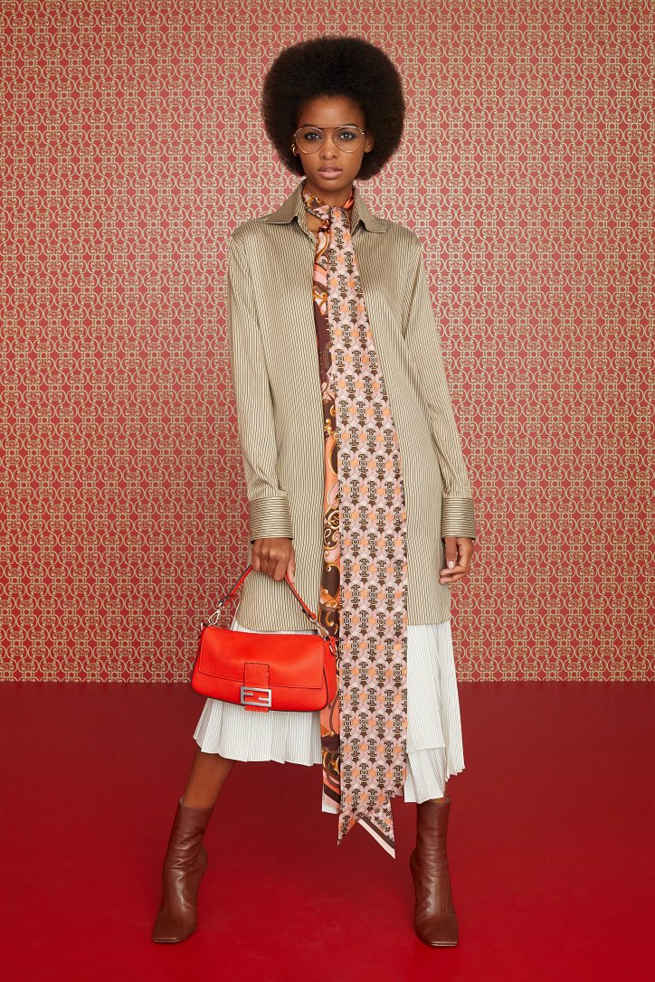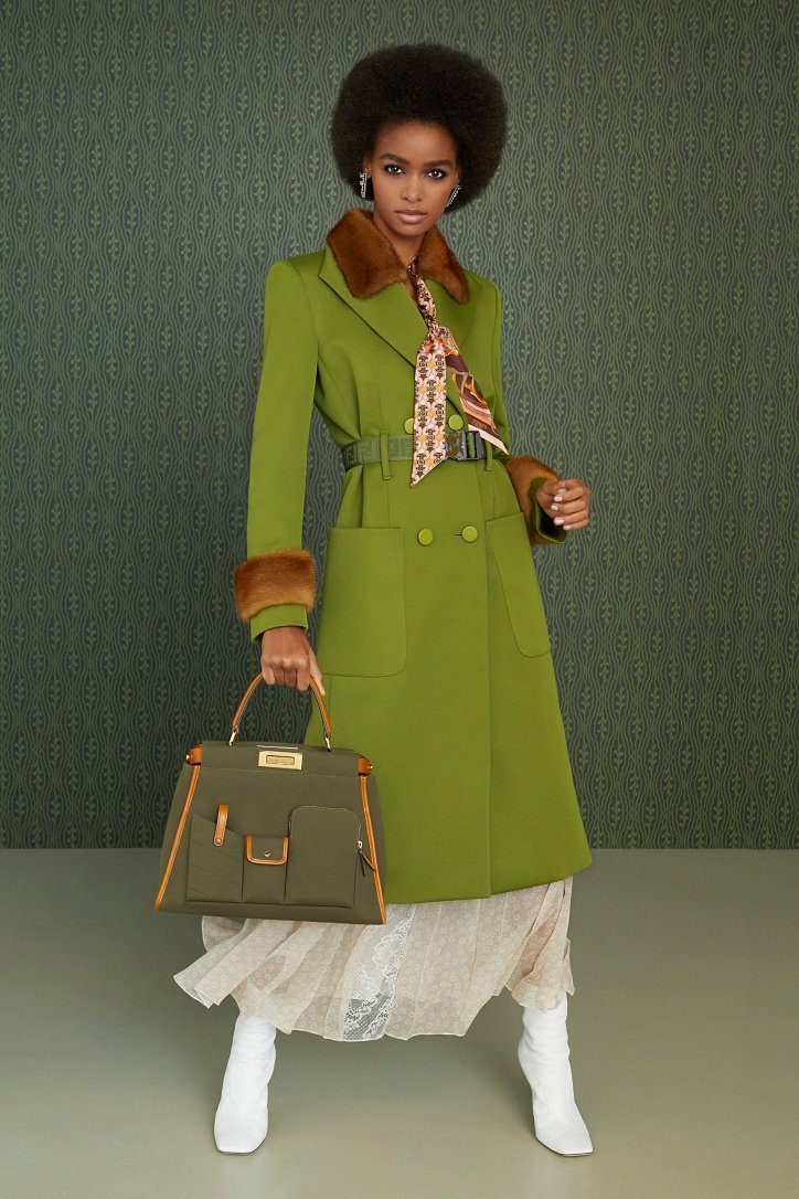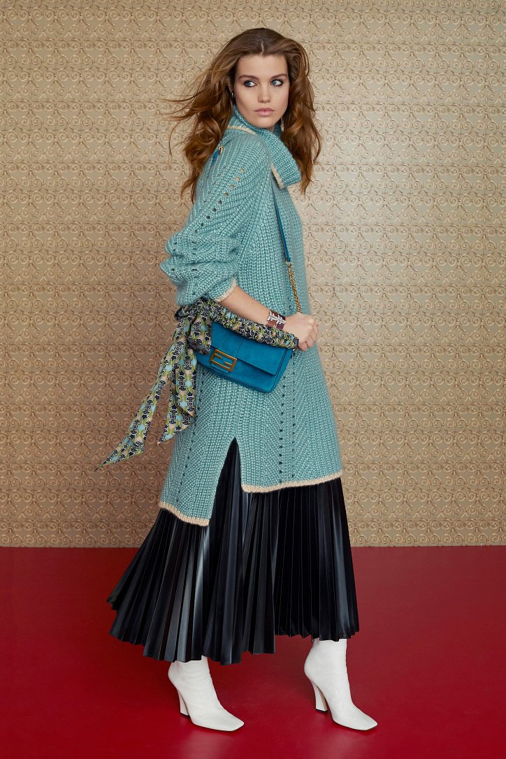 Стильные брючные костюмы и прямые, свободного кроя пальто, жаккардовые жакеты «под пояс» и плиссированные юбки миди, меховой бомбер-оверсайз, лаконичные шубы и дубленки… Коллекция Fendi вызывает лишь одно желание – скупить ее целиком и полностью. Но вы ни за что не догадаетесь, где на сей раз черпали вдохновение дизайнеры: Karl Lagerfeld и Silvia Venturini Fendi, готовя межсезонную коллекцию, изучали книгу о железных французских воротах XIX века и антикварное издание о мужских японских кимоно! Вот этот «диалог» между причудливой графикой барокко и едва заметными микроузорами и вели в коллекции принты, которыми мэтр украсил платья-плиссе и «бомберы» в стиле oversize.