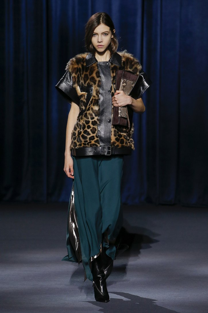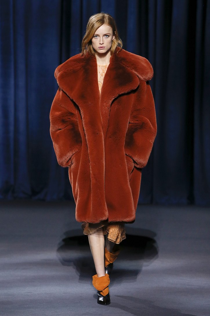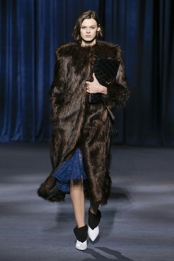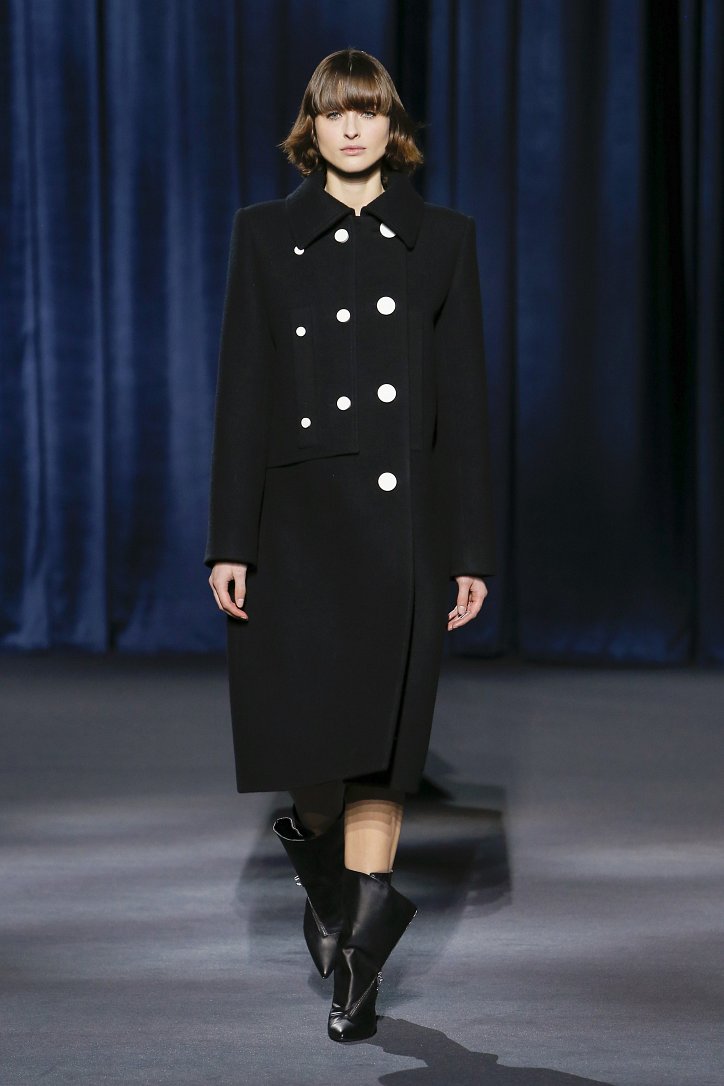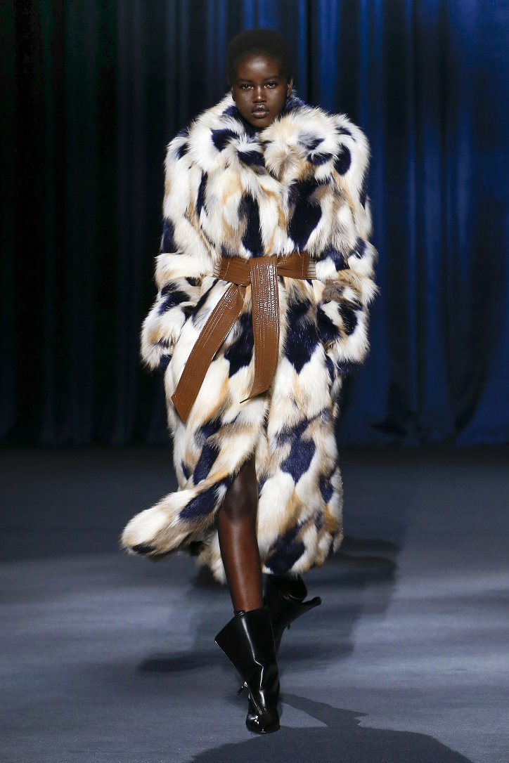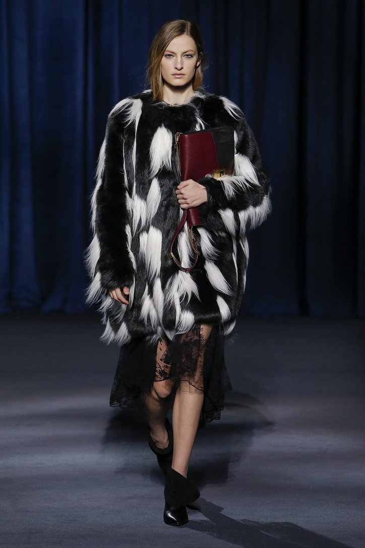 Зал, где проходило дефиле, был оформлен в темных тонах – бархатные шторы не только создавали иллюзию ночи, но и добавляли интимности и драматизма в атмосферу показа. Сами же модели вышагивали по подиуму в роскошных шубах, струящихся юбках-миди, строгих брючных костюмах, кожаных плащах и полупрозрачных кружевных платьях – по замыслу дизайнера, таким образом она продемонстрировала непохожесть Восточного и Западного Берлина.