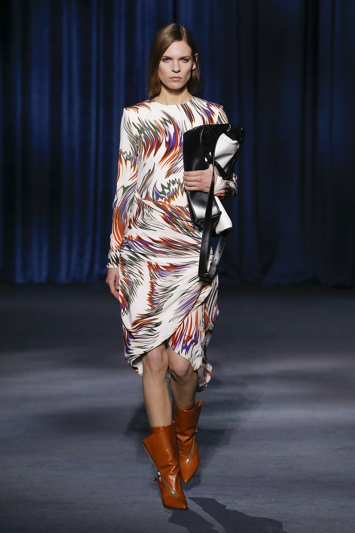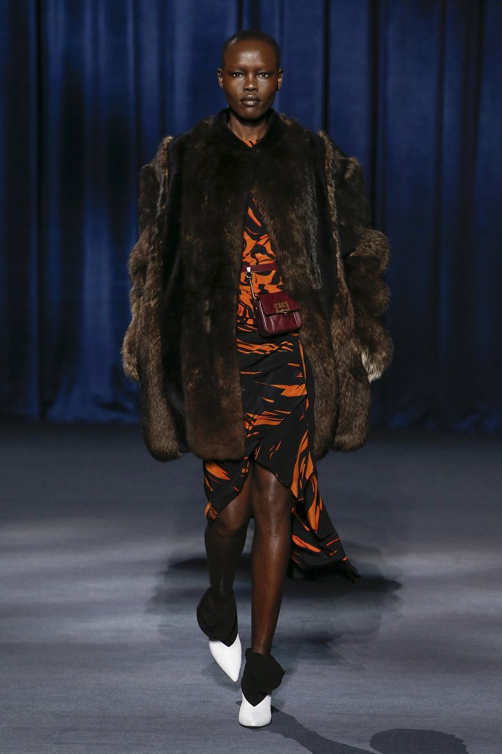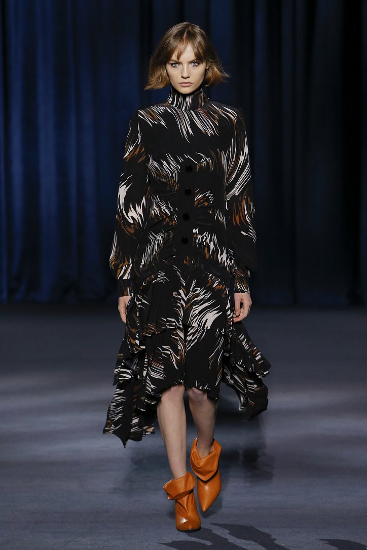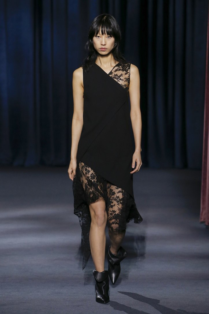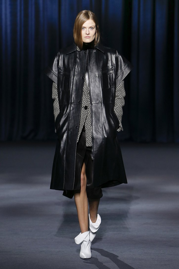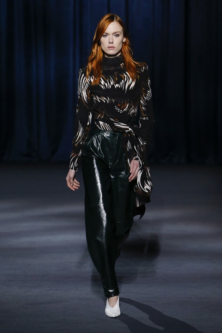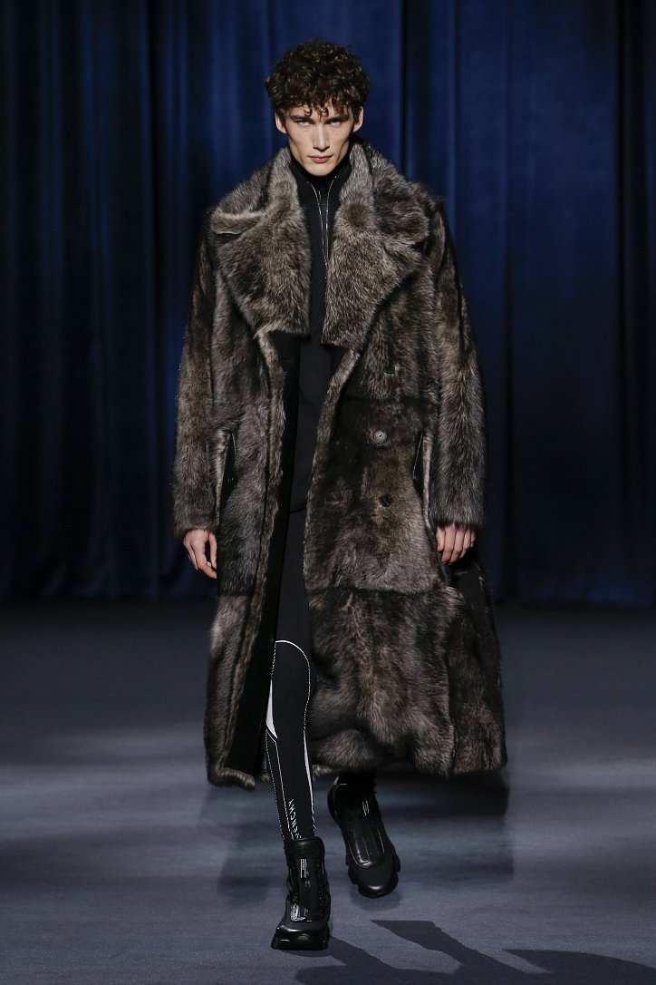 Зал, где проходило дефиле, был оформлен в темных тонах – бархатные шторы не только создавали иллюзию ночи, но и добавляли интимности и драматизма в атмосферу показа. Сами же модели вышагивали по подиуму в роскошных шубах, струящихся юбках-миди, строгих брючных костюмах, кожаных плащах и полупрозрачных кружевных платьях – по замыслу дизайнера, таким образом она продемонстрировала непохожесть Восточного и Западного Берлина.