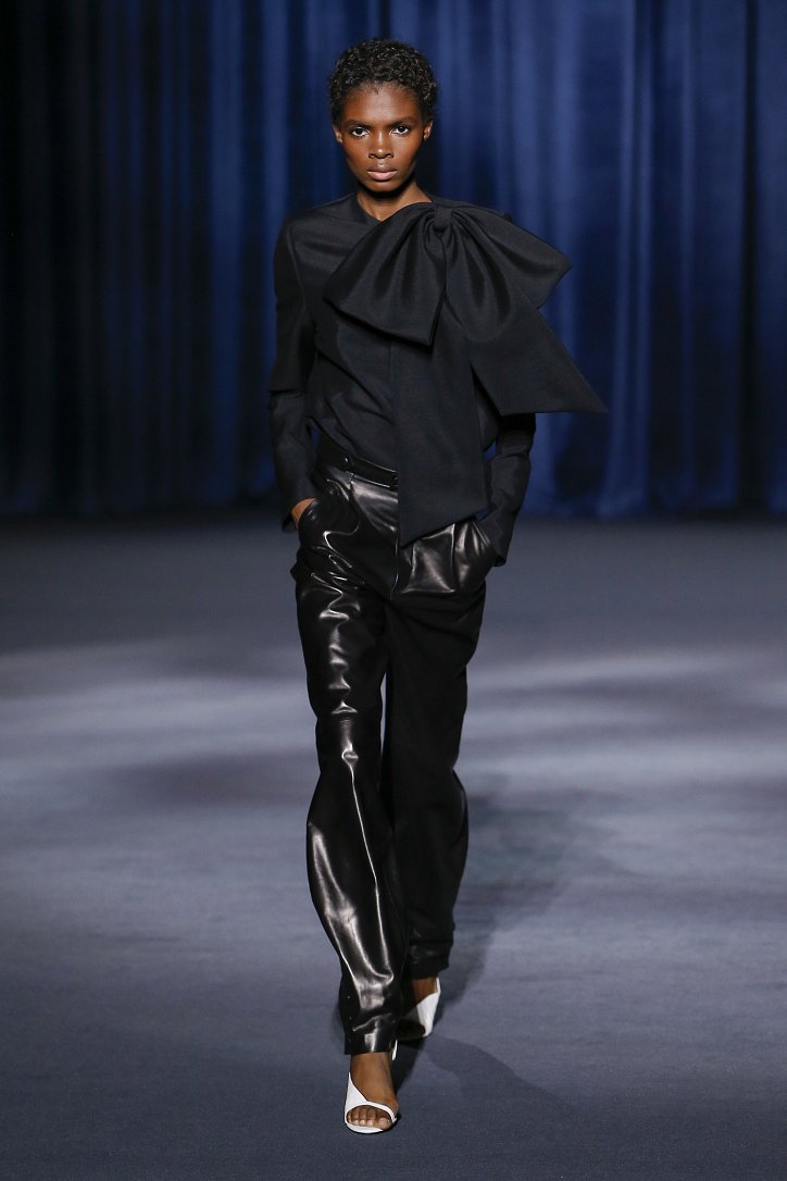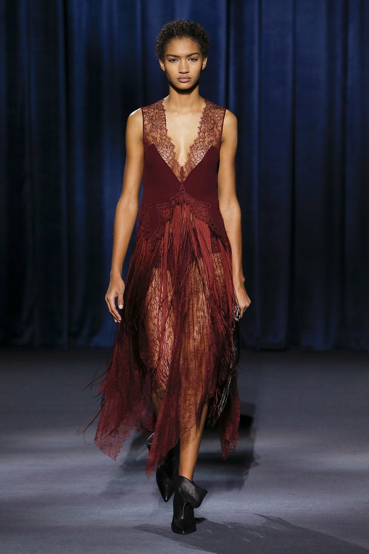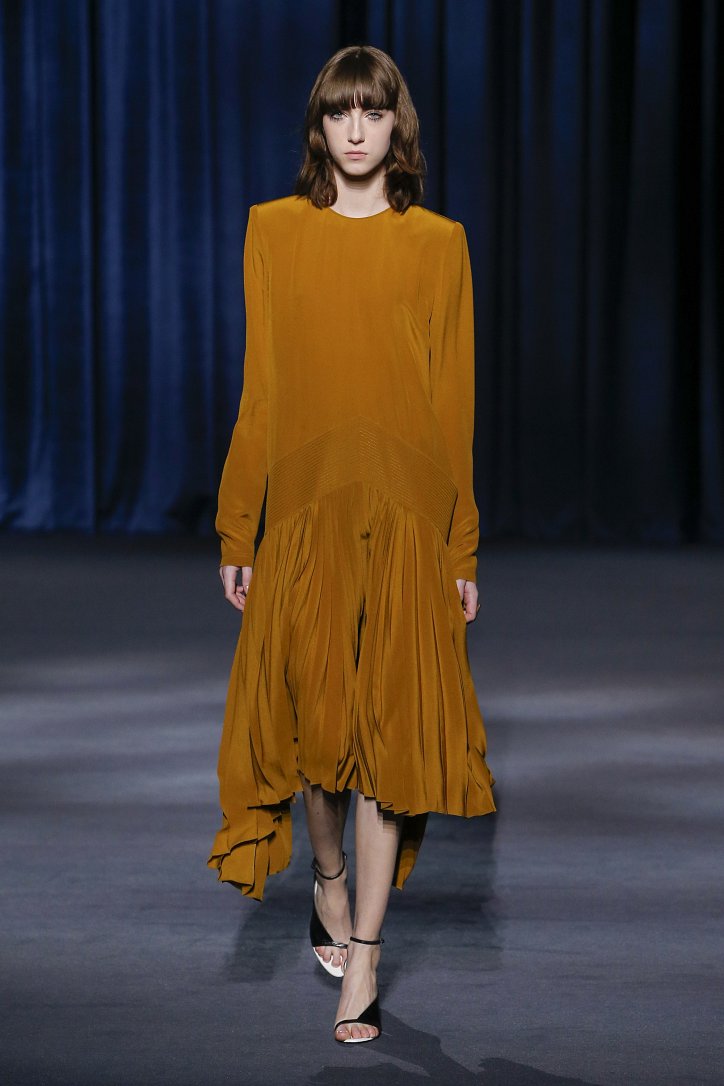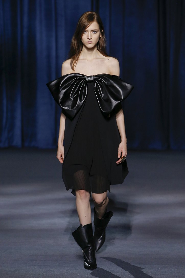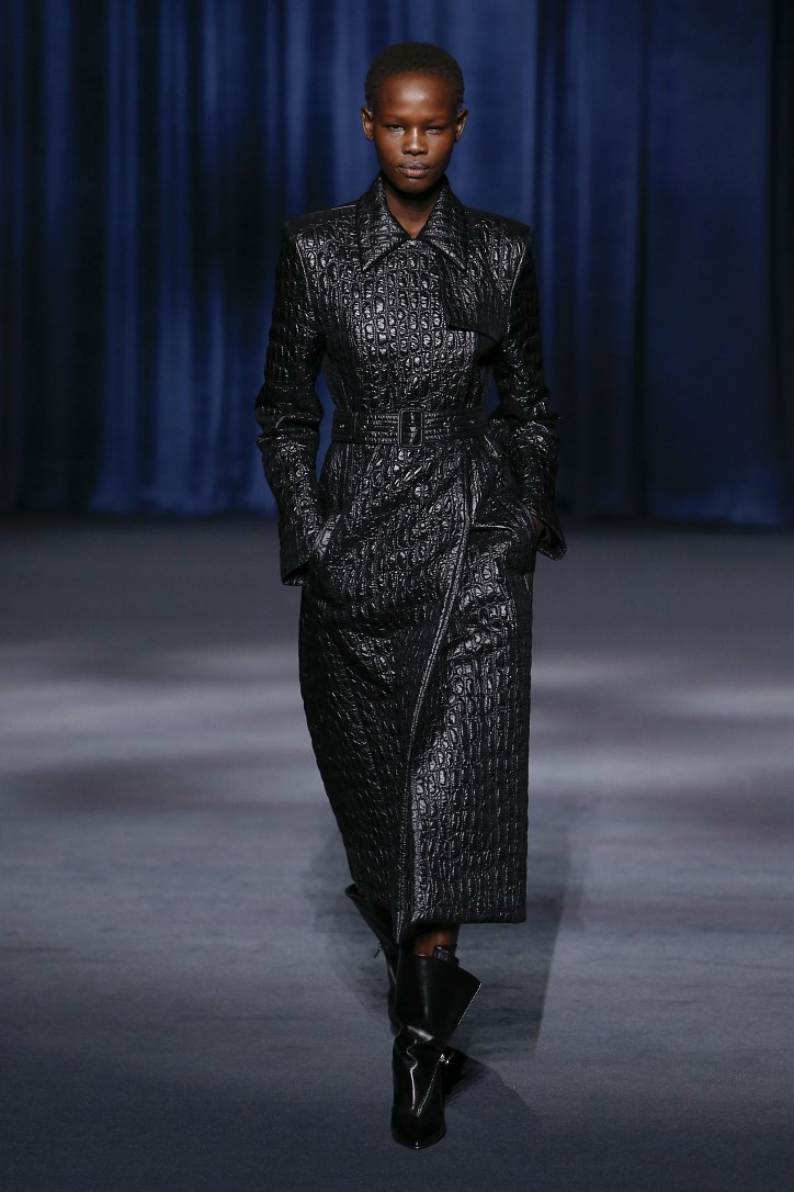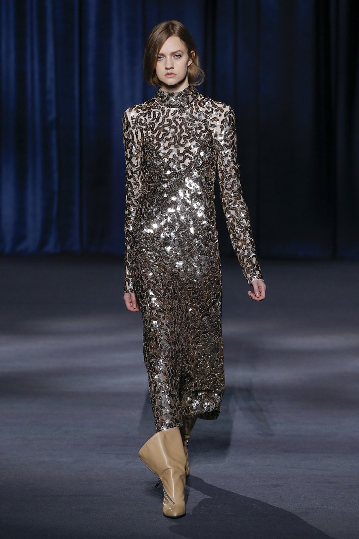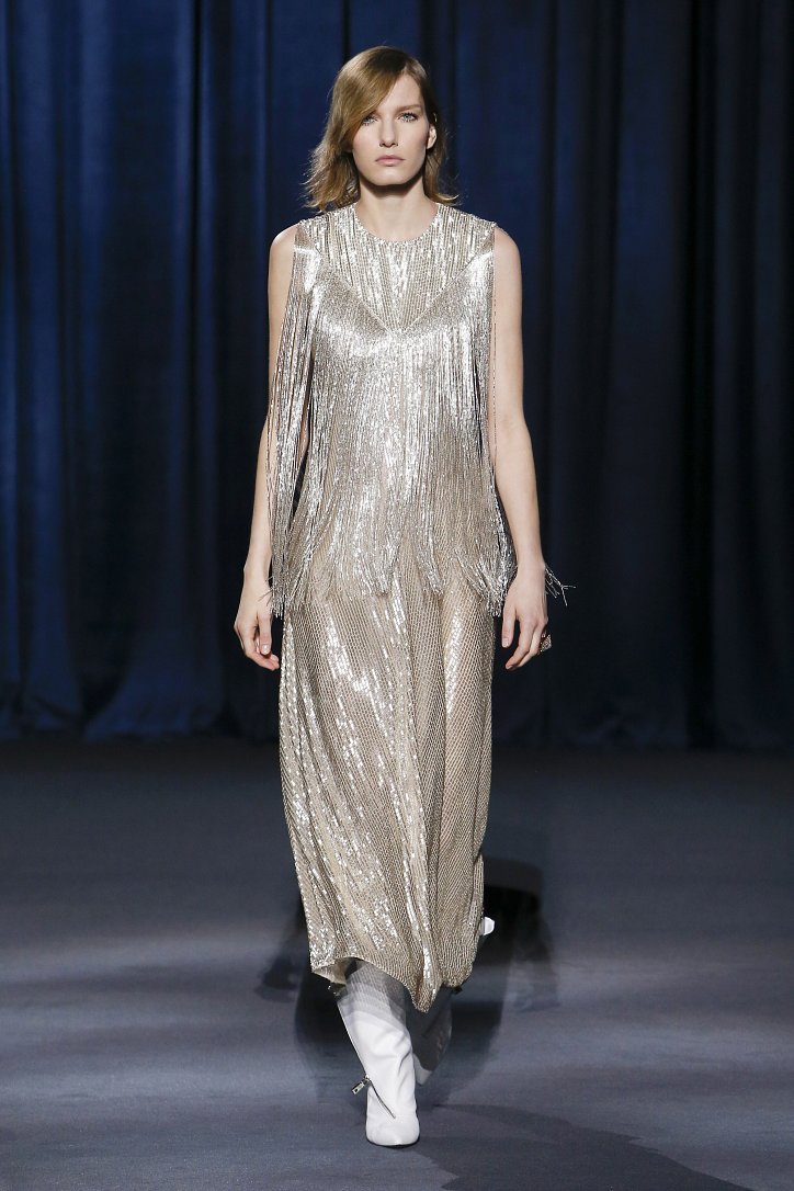 Заявленный же голливудский нуар появился ближе к концу шоу – когда на подиум вышли девушки в роскошных платьях из многослойного плиссе, блестящих материалов и моделях с длинной бахромой.