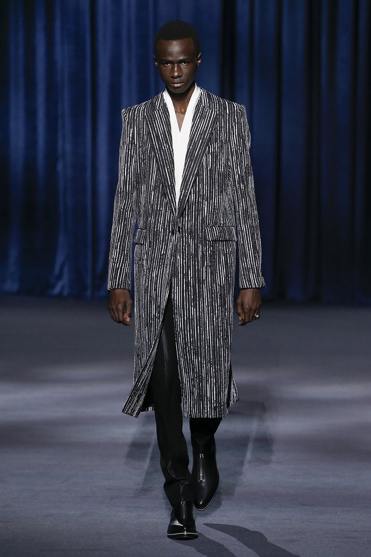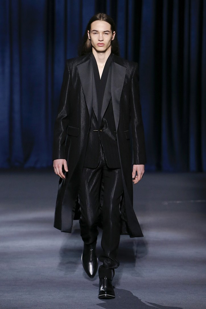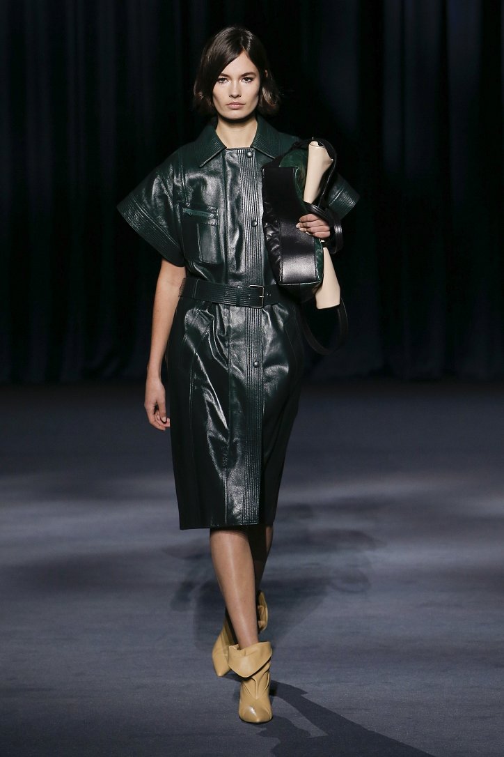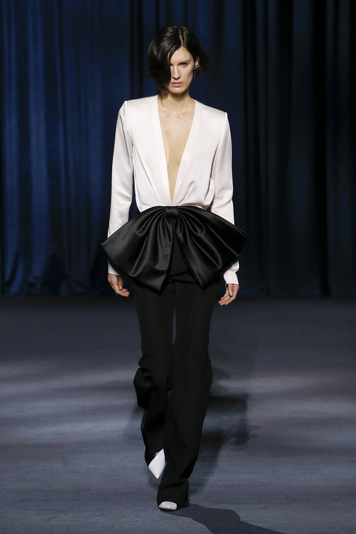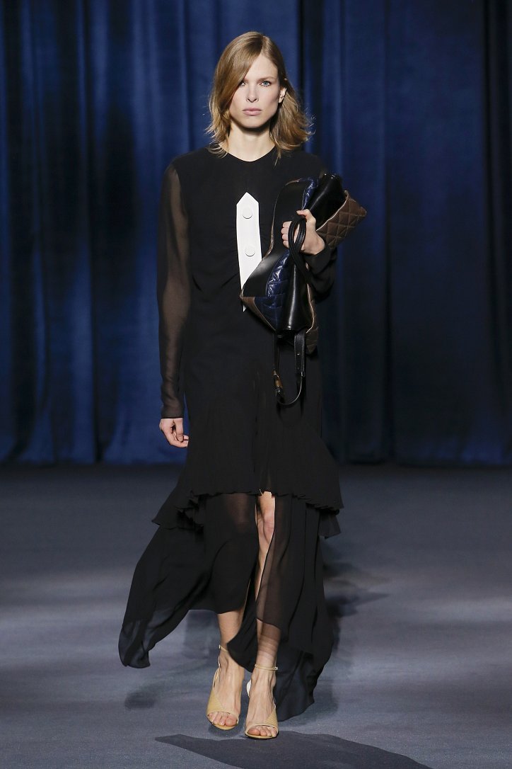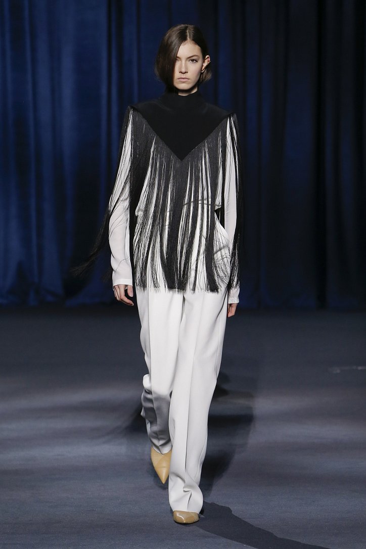 Заявленный же голливудский нуар появился ближе к концу шоу – когда на подиум вышли девушки в роскошных платьях из многослойного плиссе, блестящих материалов и моделях с длинной бахромой.