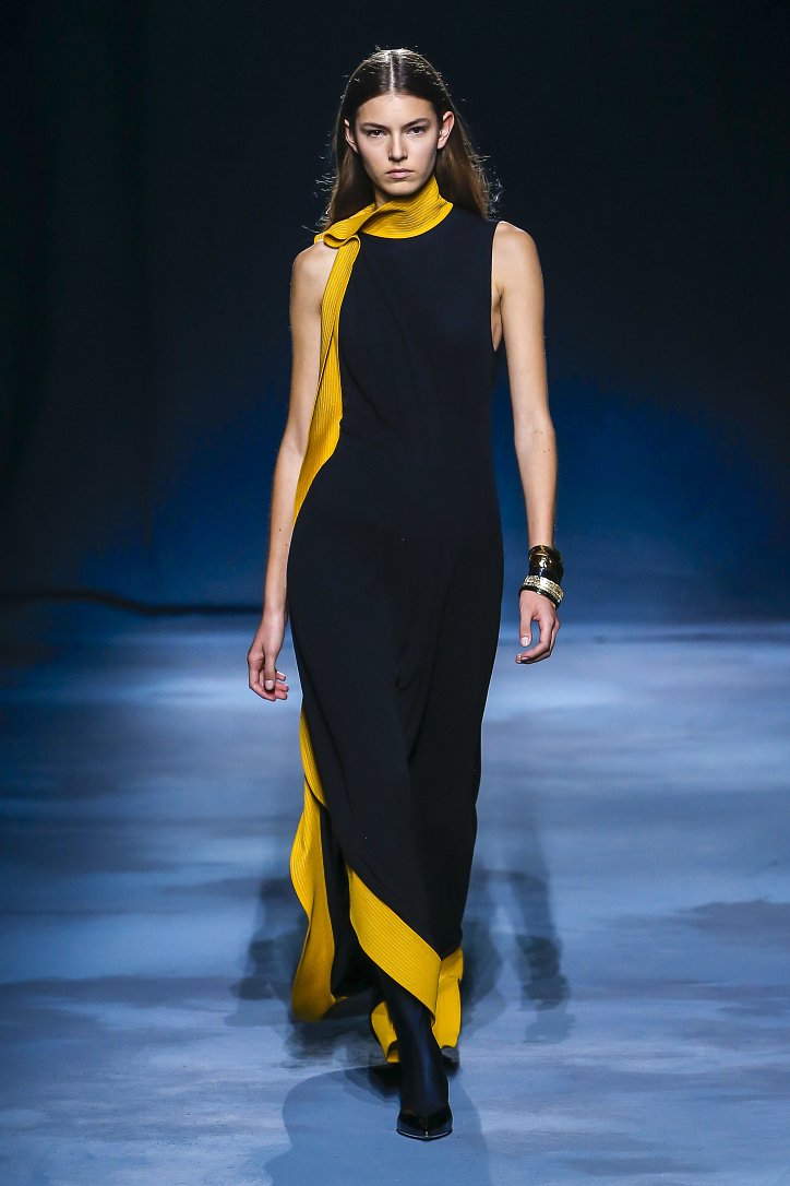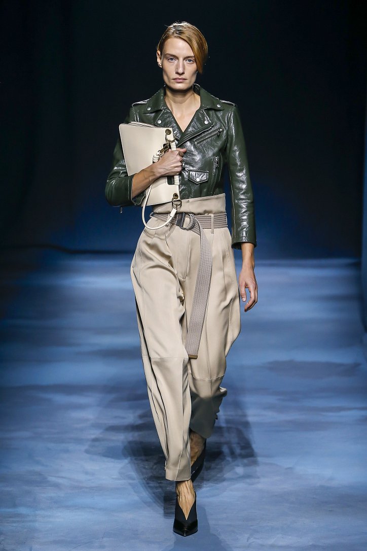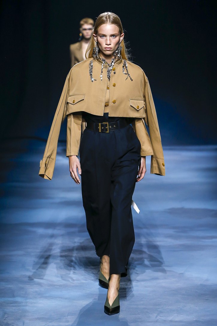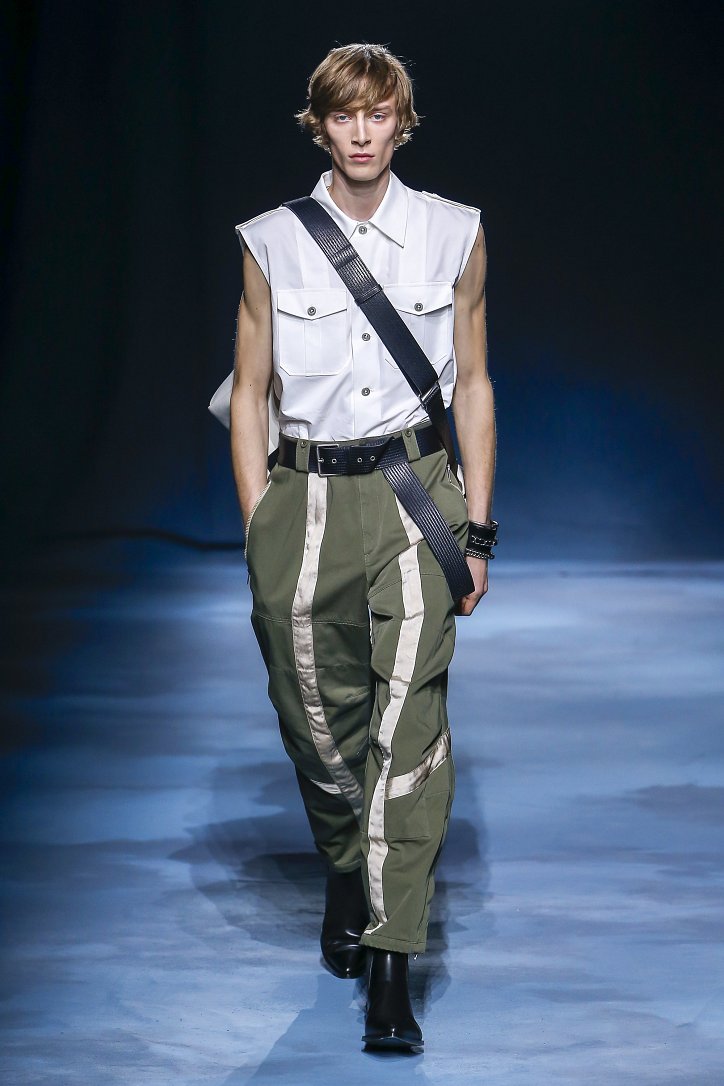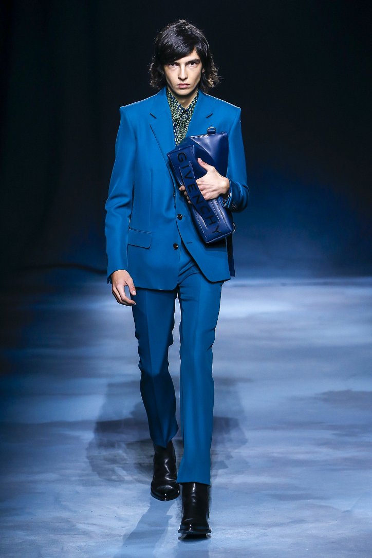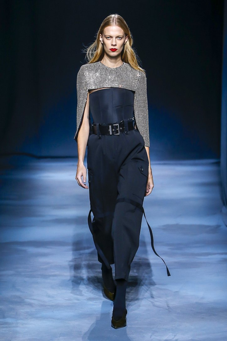 Коллекция Givenchy – это микс из одежды мужского и женского стиля. Героиня Givenchy, как и ее прообраз, носит строгие тренчи и брюки со стрелками, рубашки с остроугольными воротничками и брюки-карго с накладными карманами, но при случае свободно себя чувствует и в асимметричных платьях-плиссе, летящих палаццо и жакетах, надетых на голое тело (и, к слову, заправленных за высокий пояс брюк). При этом в одном луке вполне могут встретиться и андрогинные вещи и откровенно женственные.