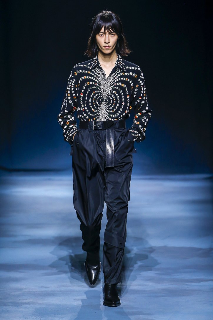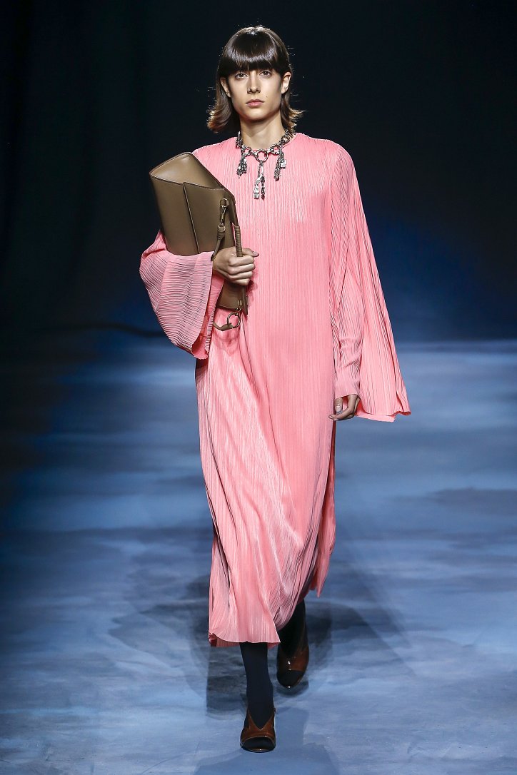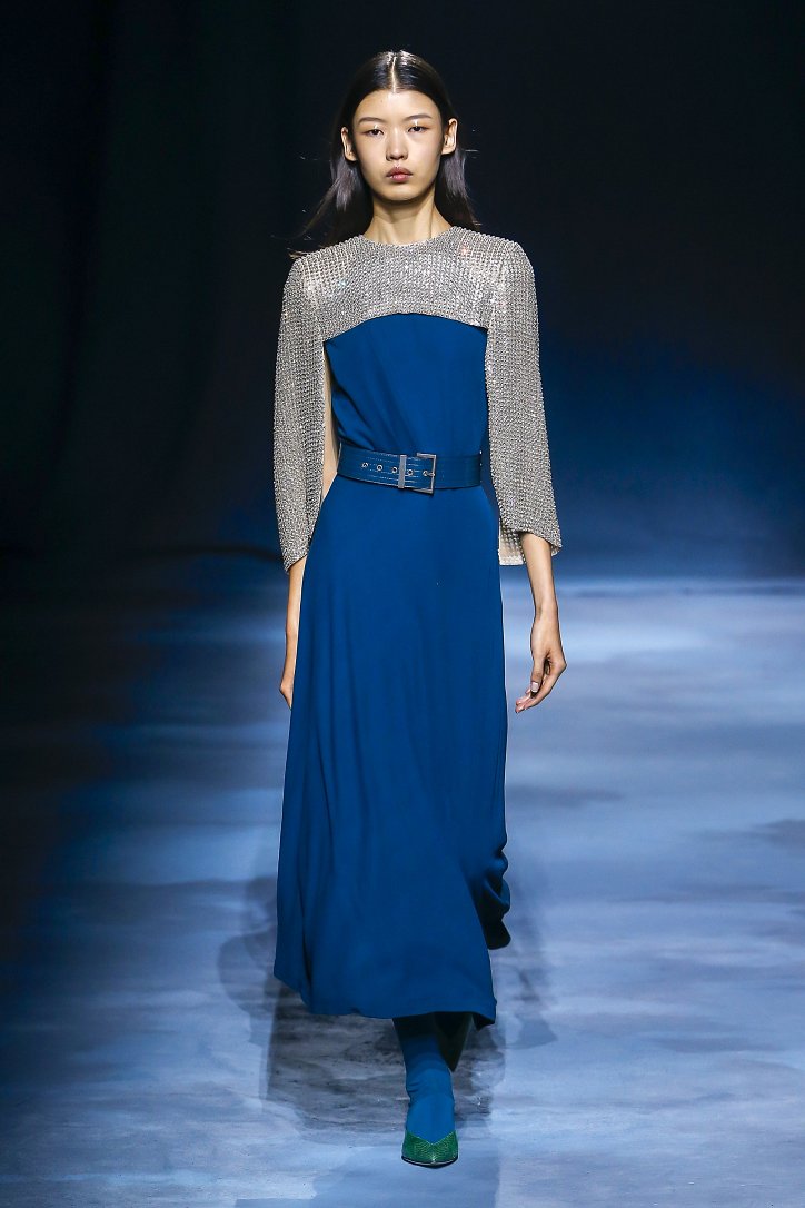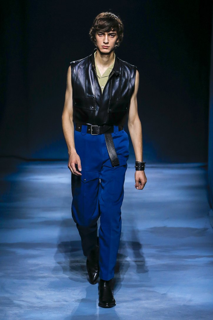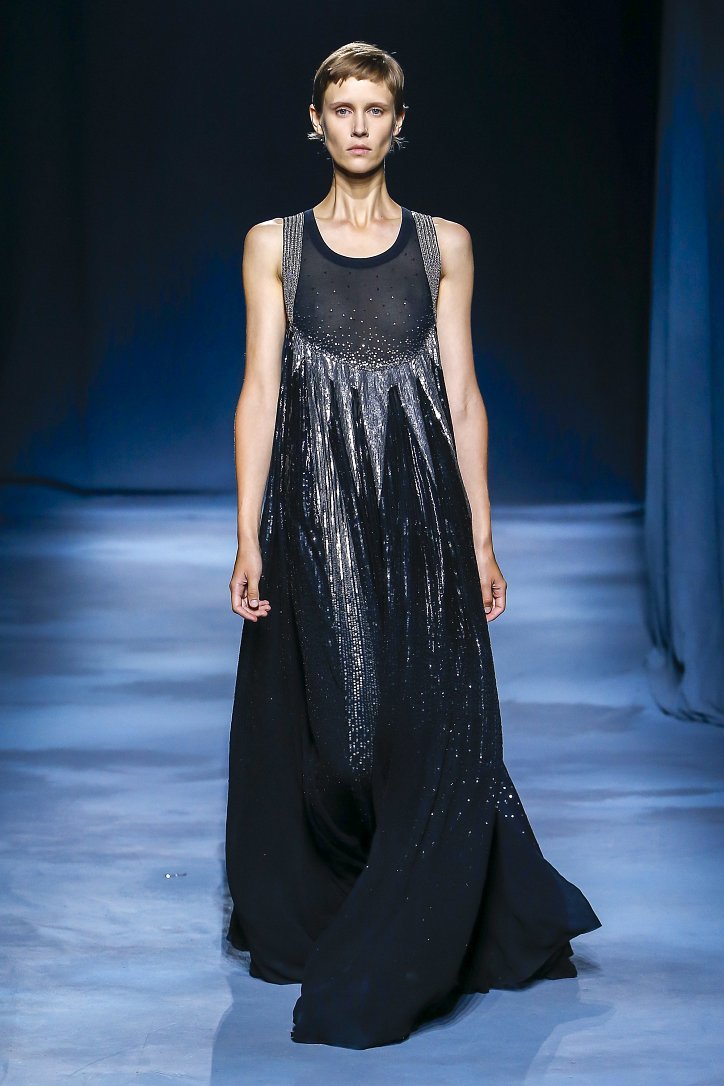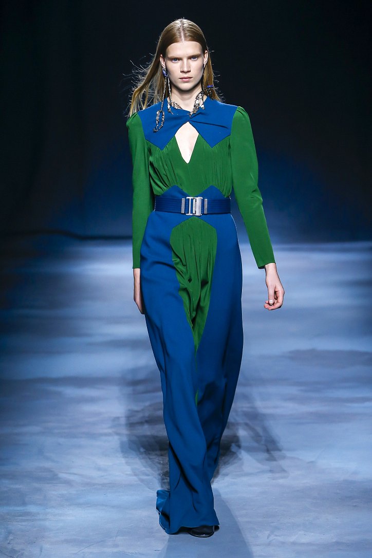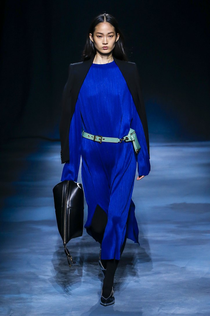 Коллекция Givenchy – это микс из одежды мужского и женского стиля. Героиня Givenchy, как и ее прообраз, носит строгие тренчи и брюки со стрелками, рубашки с остроугольными воротничками и брюки-карго с накладными карманами, но при случае свободно себя чувствует и в асимметричных платьях-плиссе, летящих палаццо и жакетах, надетых на голое тело (и, к слову, заправленных за высокий пояс брюк). При этом в одном луке вполне могут встретиться и андрогинные вещи и откровенно женственные.