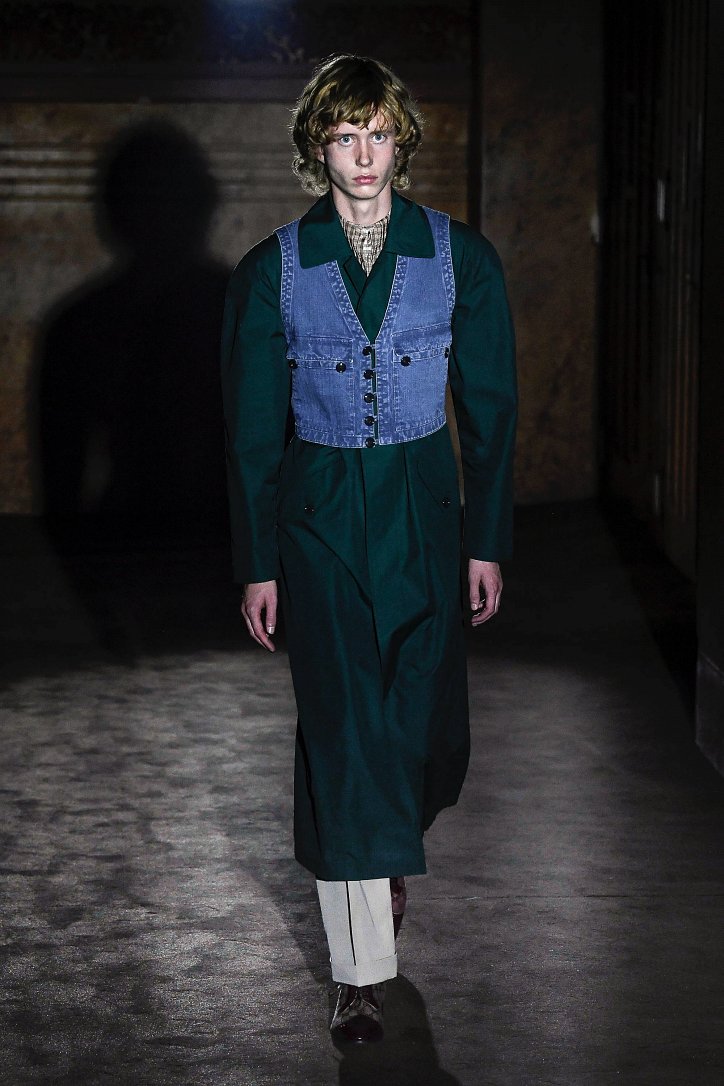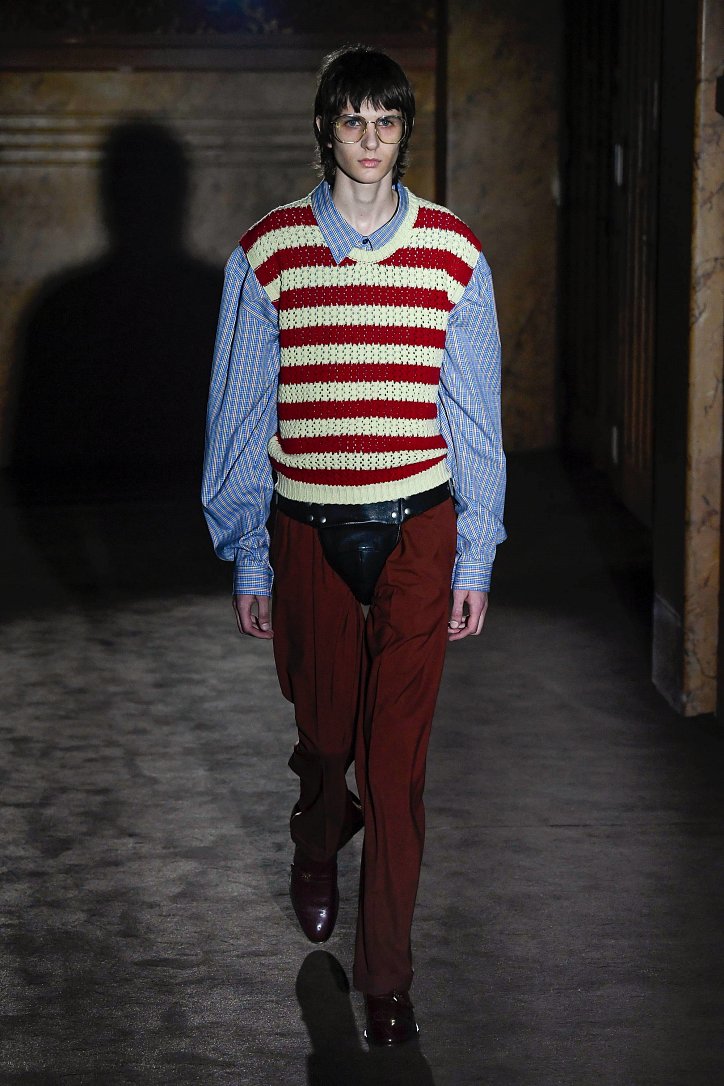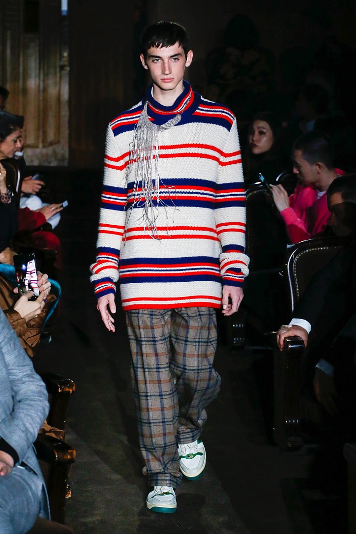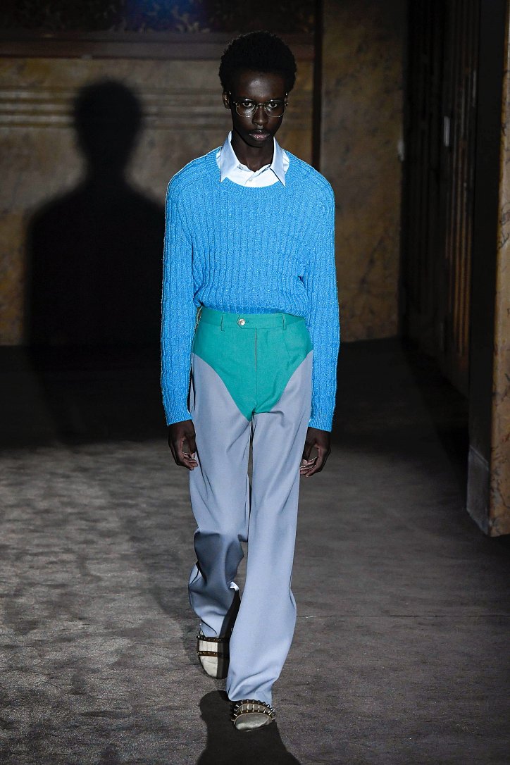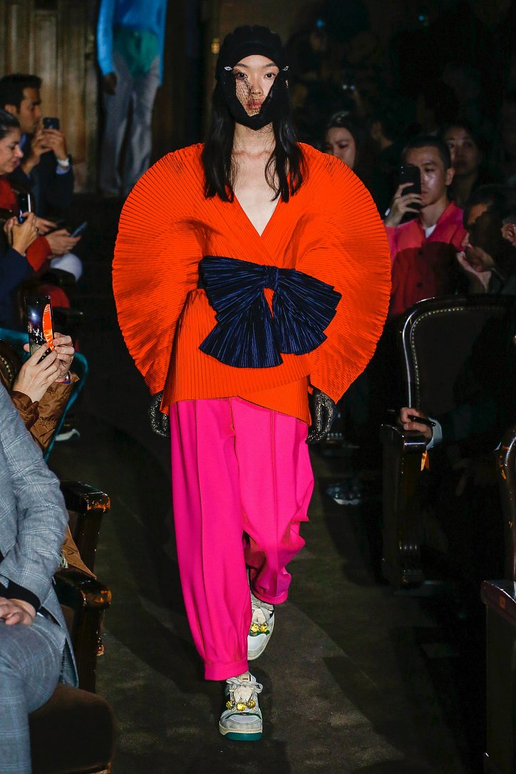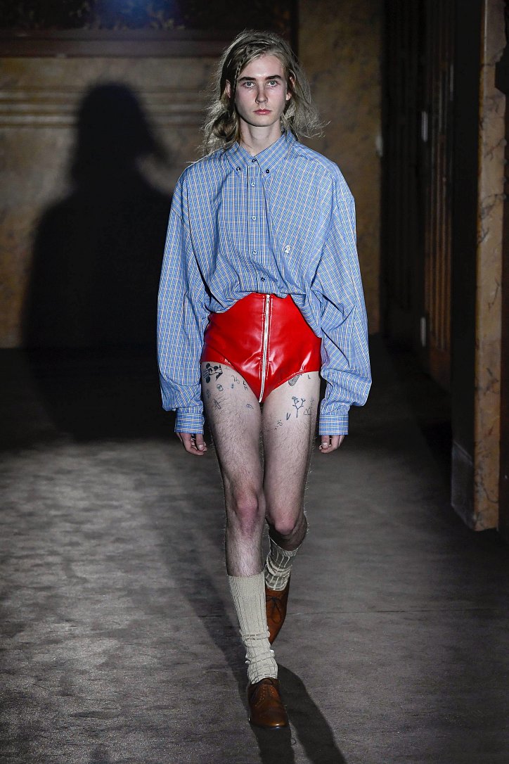 Вспоминая двух театральных «революционеров» 70-80-ых - Leo de Berardinis и Perla Peragallo, – дизайнер создал коллекцию не менее экстравагантную, нежели провокационные постановки итальянцев. Блеск и мишура, люрекс и бахрома, страусовые перья и многоярусные пояса-цепочки, очки в пол-лица и сумки в виде головы Микки Мауса, громоздкие кроссовки и фетровые шляпы, массивные бусы-ожерелья и «светлый лик» Долли Партон на свитшотах – все это перемешать, приправить яркими цветами, пестрыми принтами и подавать в виде многослойных луков. Желательно горячим. Иначе и быть не может!