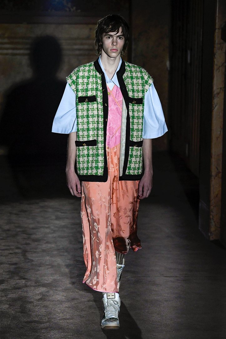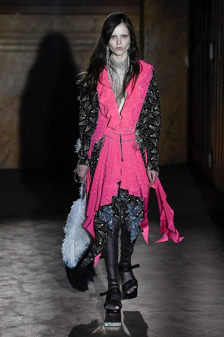 На показах Gucci, с тех пор как у руля бренда встал Алессандро Микеле, скучать не приходится. Прошлое шоу дизайнер провел в операционной, а вот показ весенне-летней коллекции Gucci он перенес в театр Le Palace - бывший ночной клуб на Монмартре.