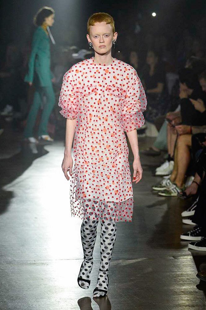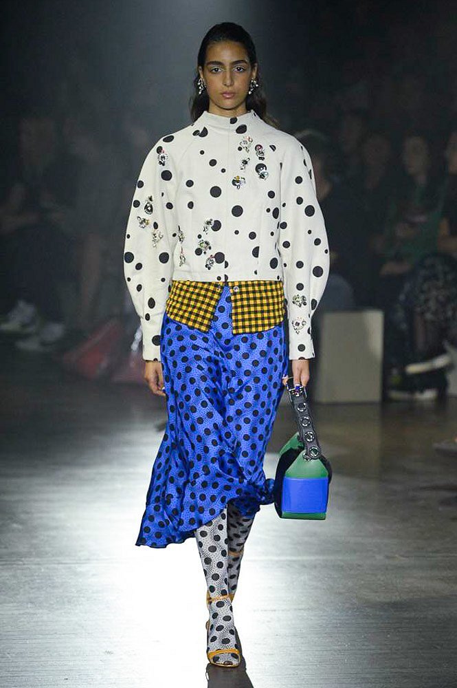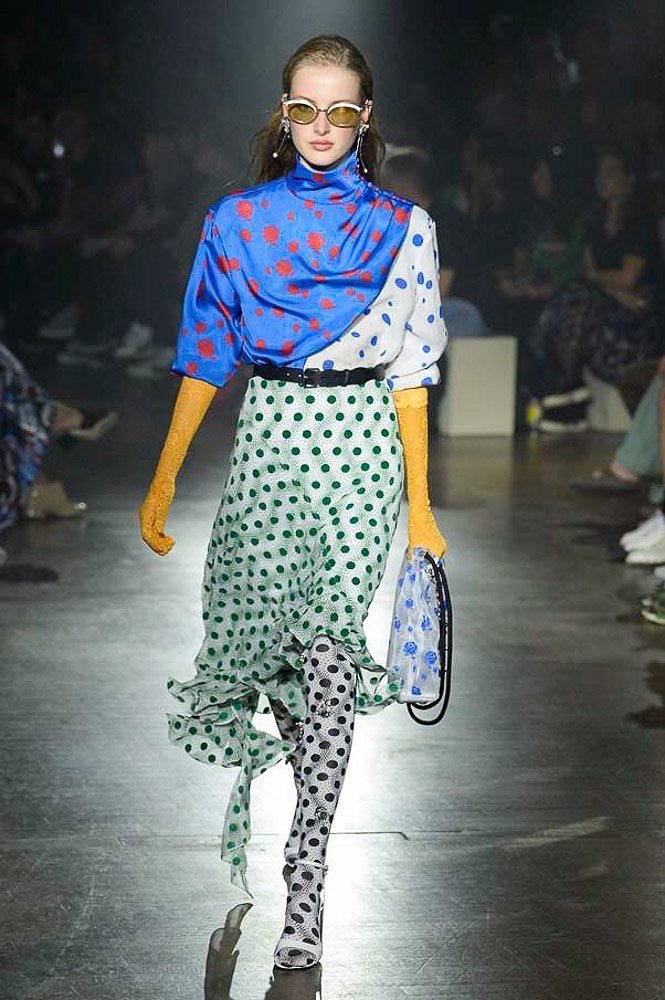 Горох и модная клетка виши, принт «под рептилию» и цветочные мотивы – все это соседствовало не только на подиуме, но и причудливым образом переплеталось в одном луке. Причем микс был не только из принтов, но и колористический: дизайнеры смело смешивали ярко-синий, зеленый, сиреневый, желтый, салатный, оранжевый, цвет фуксии, лимона и мха. Яркими цветами в одежде дизайнеры не ограничились – и добавили цвета в перчатки, колготы, обувь и сумки.