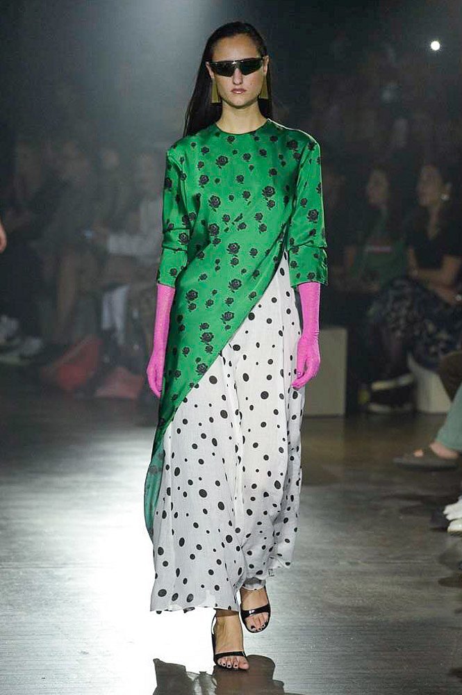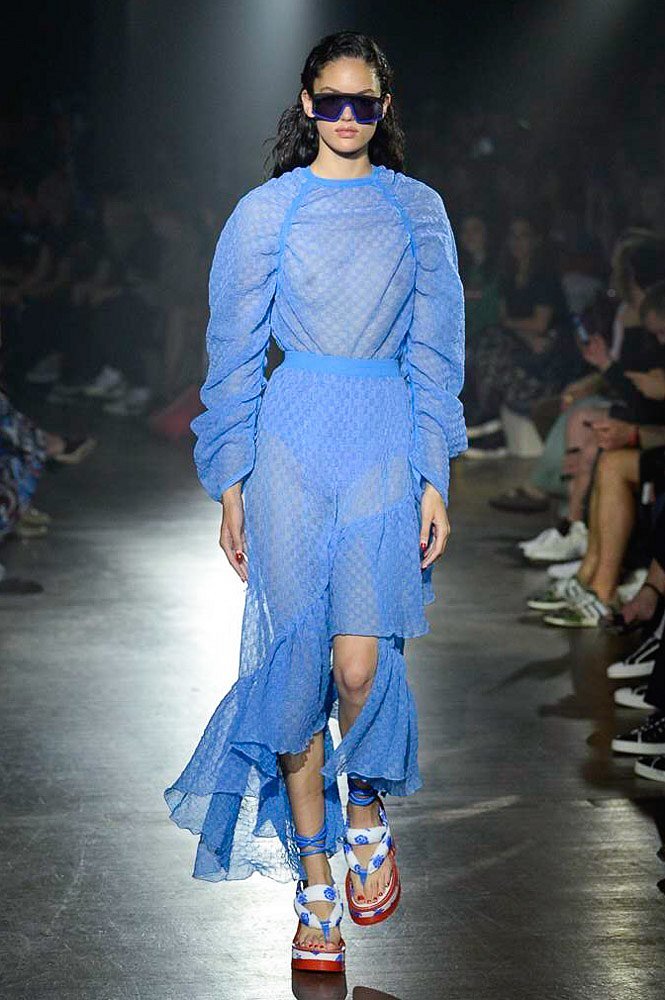 Новая коллекция Kenzo весна-лето 2019 – это взрыв цвета и фейерверк принтов. Умберто Леон и Кэрол Лим пригласили своих гостей на яркую вечеринку в подземном саду, где все собрались «по особому случаю». И оделись соответственно: в полупрозрачные платья и узорчатые трикотажные топы с объемными брюками, ансамбли, собранные по принципу «колор-блокинг», и вязаные брючные костюмы.