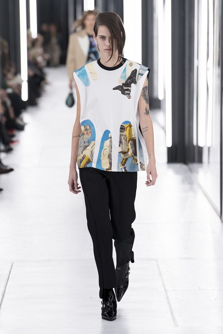 Вернувшись в Louis Vuitton, Николя Жескьер решил заодно вернуться и к своим «навязчивым» идеям. В первую очередь – это футуристические мотивы. Ими весенне-летняя коллекция Louis Vuitton полна как никогда. Помимо темы космоса дизайнер размышляет и о той грани, которая существует сегодня между реальным миром и виртуальным миром соцсетей, в котором многие проводят времени гораздо больше, чем в настоящей жизни.