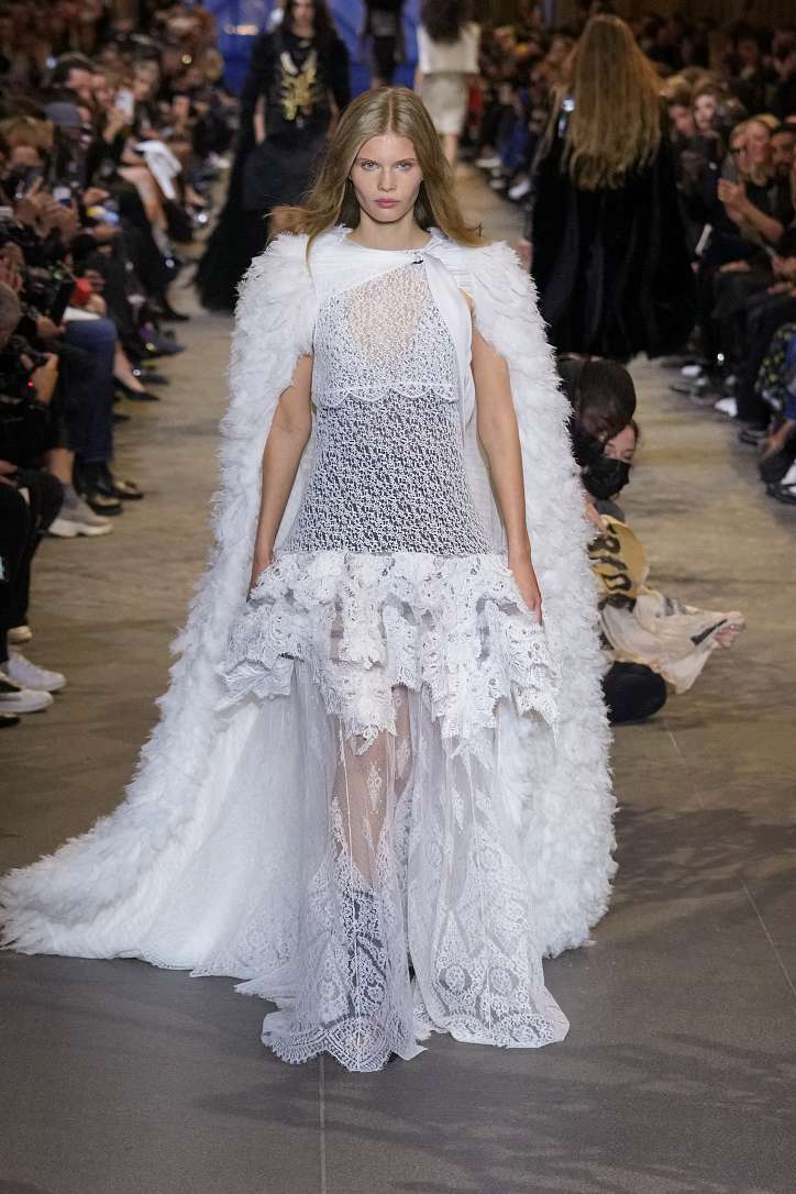 Воплотились эти размышления в многослойных образах, в некоторых из которых угадывались силуэты нарядов 19 века, в других считывались черты творчества модельеров начала ХХ в. Paul Poiret и Erté. Однако все эти образы дизайнер рассматривал в контексте путешествия во времени, умело смешивая прошлое, настоящее и будущее.