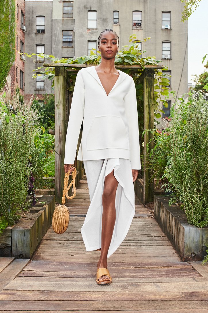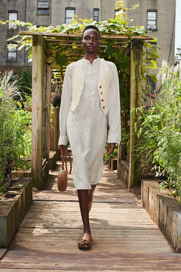 Впервые за многие годы дизайнер провёл презентацию коллекции без зрителей. В качестве декораций был выбран нью-йоркский общественный сад Restoration Project, с которым перекликалась и цветовая палитра коллекции: белый, бежевый, зеленый, коричневый, серый и черный цвета смотрелись очень гармонично в монохромных образах.