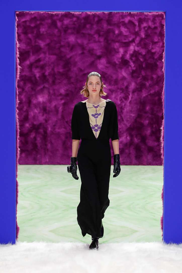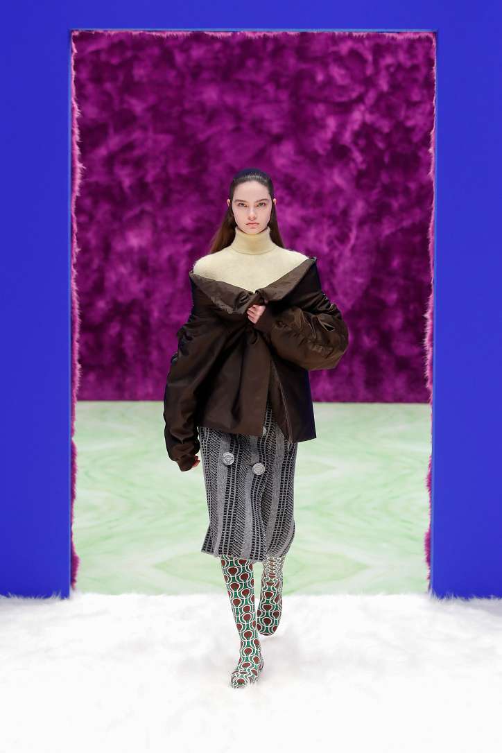 Новая коллекция Prada хоть и полна трикотажа (кто ж так сразу откажется от удобных и не сковывающих движения вещей?), но в ней уже есть и мерцающие пайетки на платьях, пальто и сапогах, и пальто с открытыми плечами, и яркие оттенки. Впрочем, трикотаж тоже «повеселел»: дизайнеры использовали его жаккардовую версию, украшенную разноцветными геометрическими узорами.