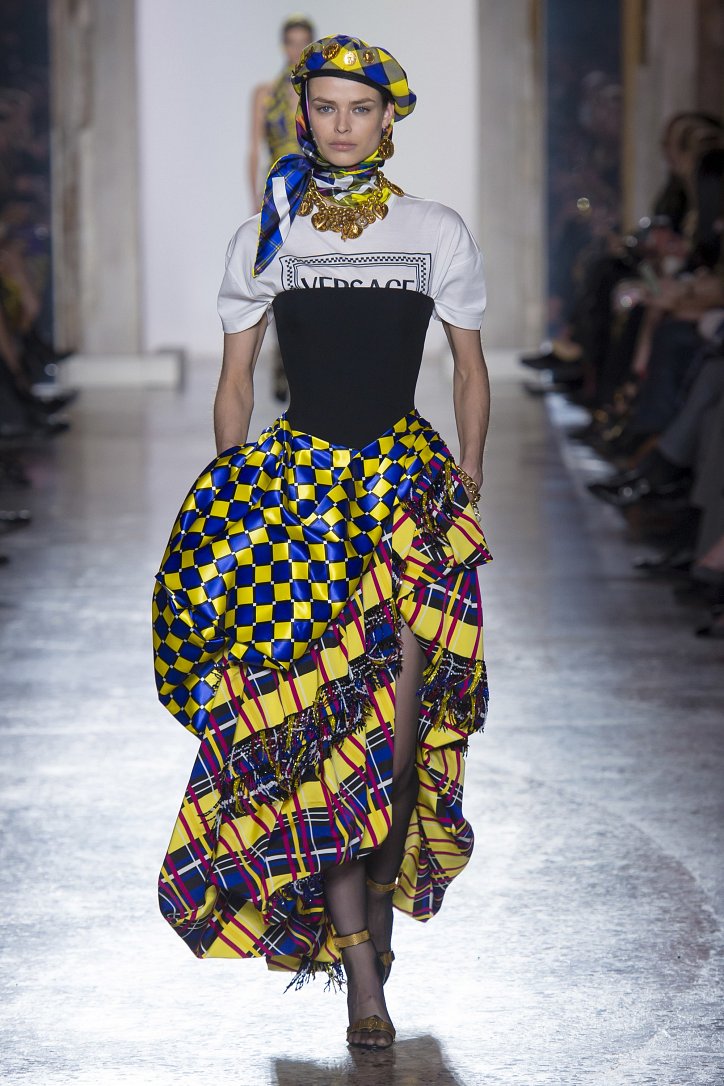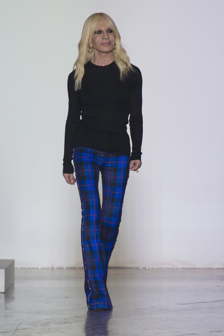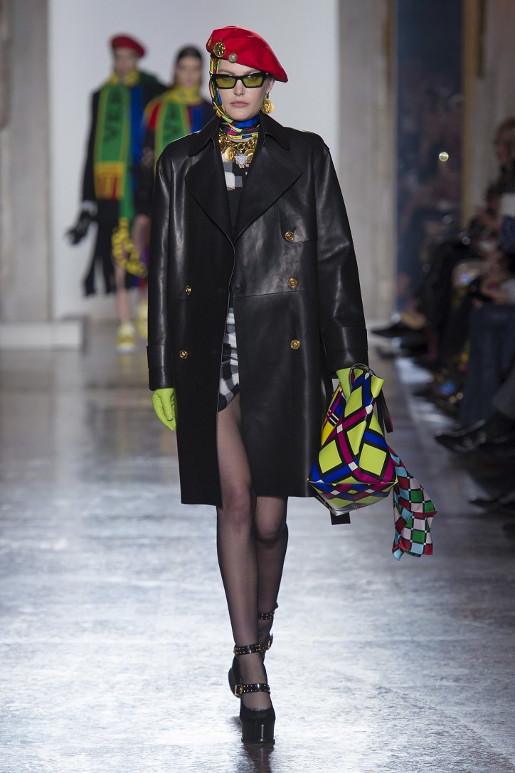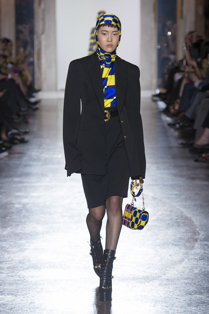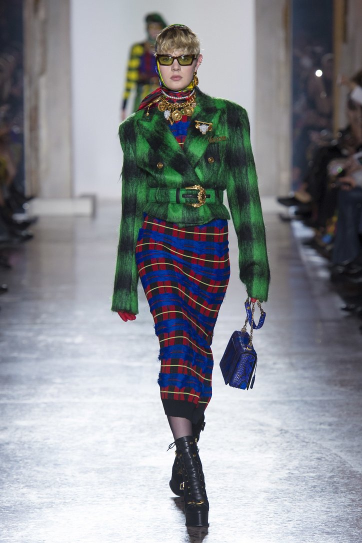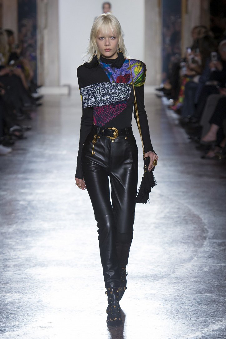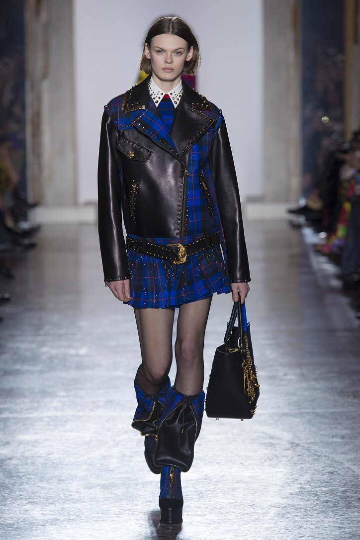 То, что в моду возвращается эпоха 80-ых, уже ясно всем. Но если для многих брендов это время – «терра инкогнита», то для Донателлы Версаче мода восьмидесятых – это все близкое и родное. Игра на своем поле - показ коллекции Versace осень-зима 2018-2019 – начался с классики: бежевые тренчкоты, «школьные» воротнички на рубашках, брюки со стрелками, броги на высокой платформе. Затем на подиуме появился тартан – но в необычном обличье: дизайнер выбрала не просто самые яркие цвета «шотландки», но и перемешала все кланы горцев! (Что-то бы они сказали, глядя на такой святотатственный микс!) Но и этого было мало. Мини-юбки из плиссированного тартана итальянка соединила с джинсовыми рубашками и гольфами с ромбами аргайл, «вплела» клетчатый принт в сапоги и береты, добавила яркие лоскуты в джинсы, косухи и нанесла его на сумки.