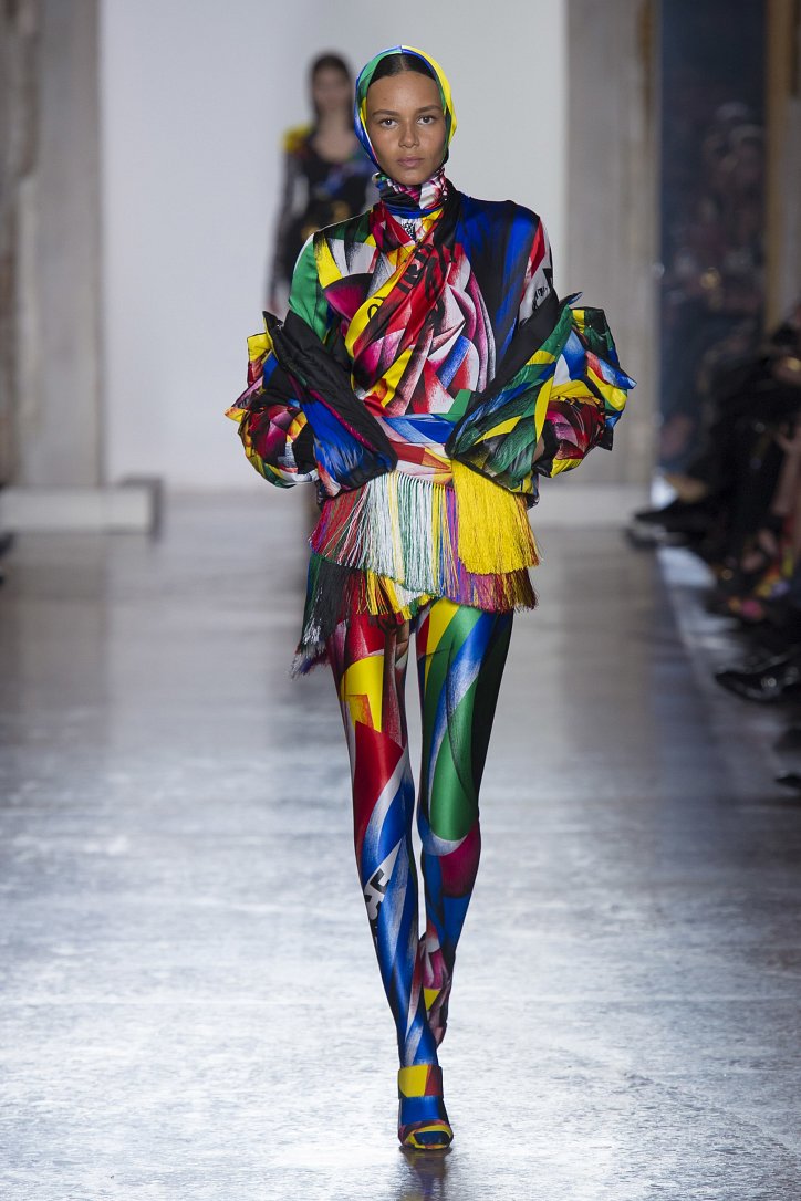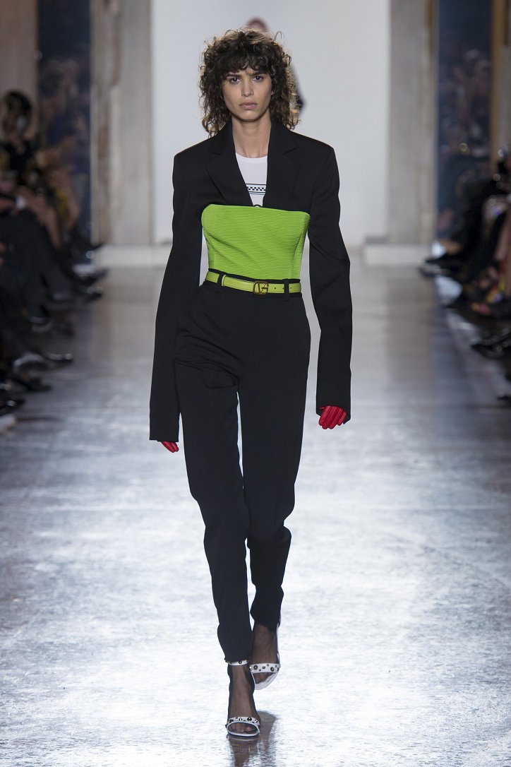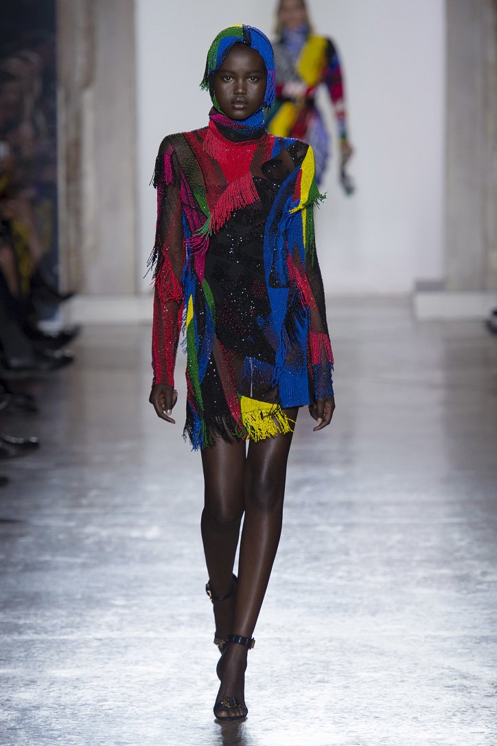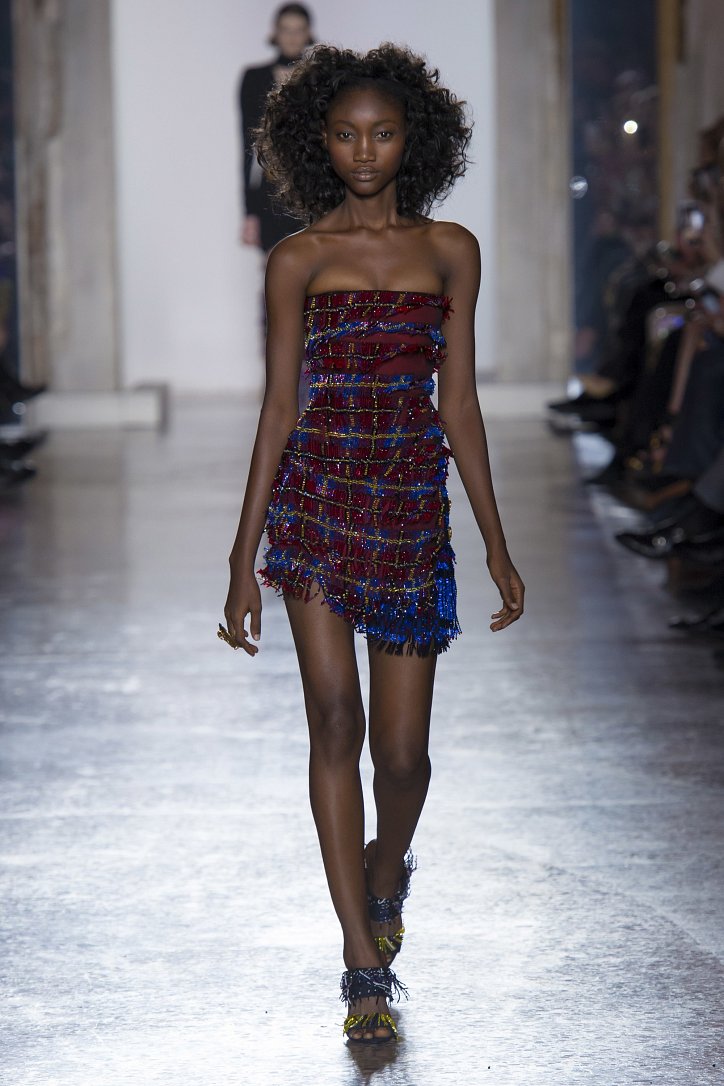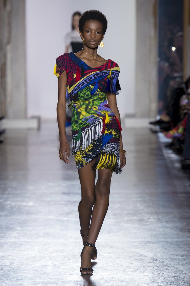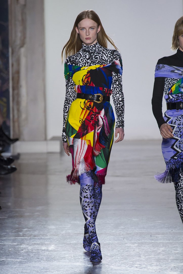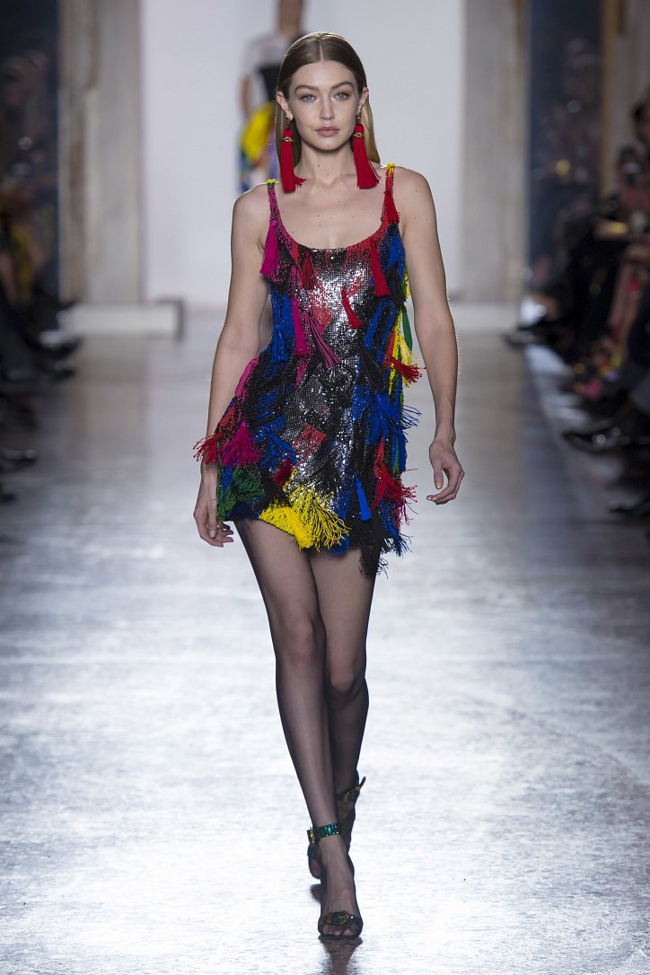 То, что в моду возвращается эпоха 80-ых, уже ясно всем. Но если для многих брендов это время – «терра инкогнита», то для Донателлы Версаче мода восьмидесятых – это все близкое и родное. Игра на своем поле - показ коллекции Versace осень-зима 2018-2019 – начался с классики: бежевые тренчкоты, «школьные» воротнички на рубашках, брюки со стрелками, броги на высокой платформе. Затем на подиуме появился тартан – но в необычном обличье: дизайнер выбрала не просто самые яркие цвета «шотландки», но и перемешала все кланы горцев! (Что-то бы они сказали, глядя на такой святотатственный микс!) Но и этого было мало. Мини-юбки из плиссированного тартана итальянка соединила с джинсовыми рубашками и гольфами с ромбами аргайл, «вплела» клетчатый принт в сапоги и береты, добавила яркие лоскуты в джинсы, косухи и нанесла его на сумки.
