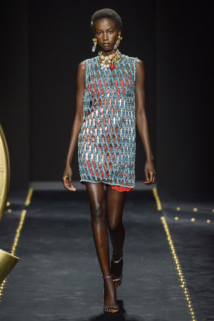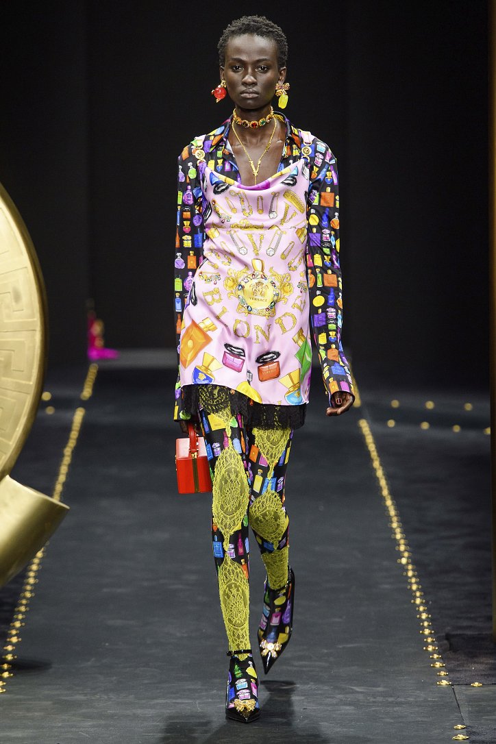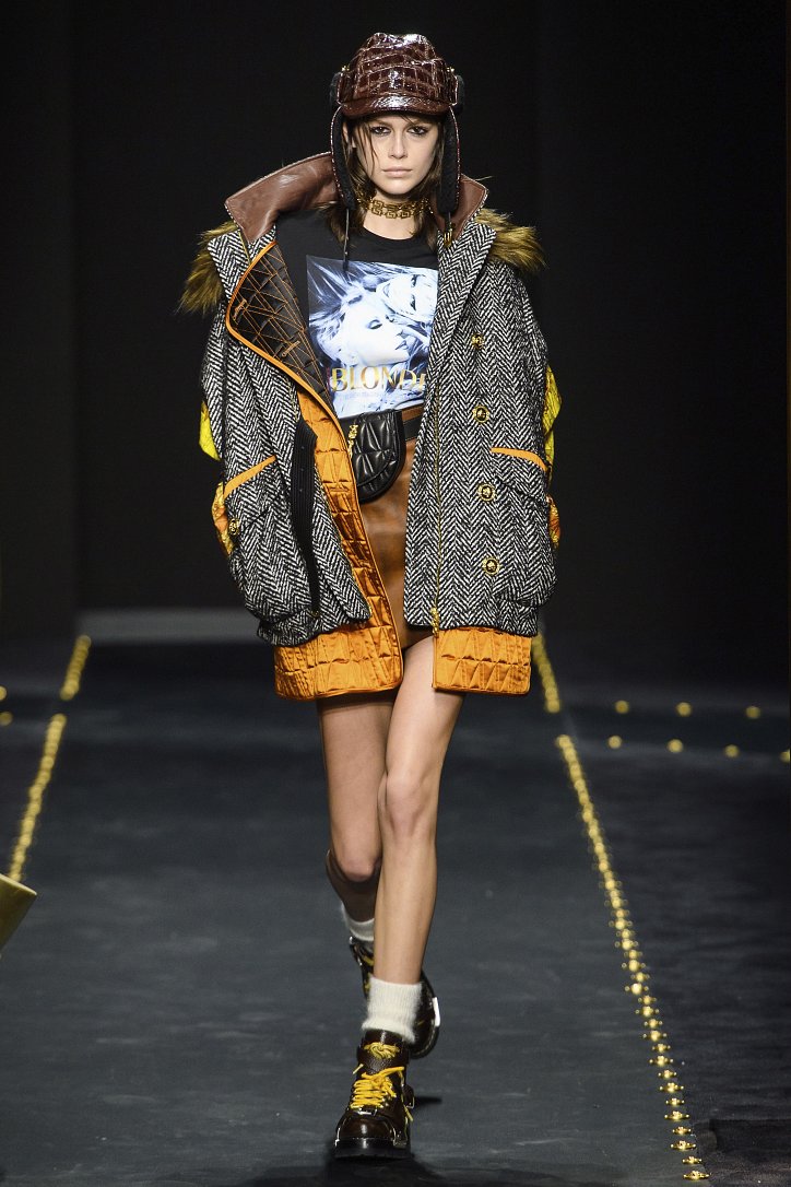 «Немного несовершенства – это новый идеал». Такое неожиданное «программное заявление» сделала Донателла Версаче накануне шоу. Выступая на пресс-конференции, дизайнер призналась, что она в последнее время часто размышляет о том, как мы живем сегодня, о роли в нашей жизни Instagram, о нашей одержимости совершенством. Обеспокоенность Донателлы «увела» ее в недалекие 90-ые, где царил гранж, гремели гитары, а фланелевая рубашка была must have модного гардероба. И, конечно же, это было время Джанни Версаче. Так что новая коллекция Versace, вновь предлагает вспомнить знаковые фасоны и модели, созданные легендарным кутюрье. Ну а что касается несовершенства, то «похулиганить» дизайнер решила с принтами: флаконы духов Versace, логотипы бренда и даже портрет самой Донателлы – все было ярко, броско, на грани китча.