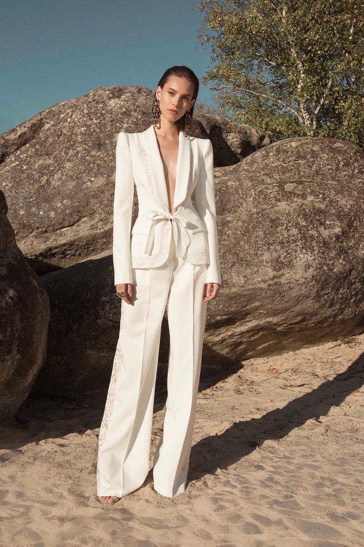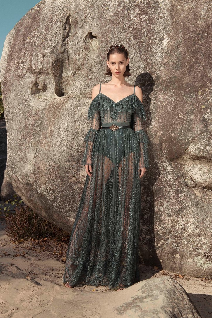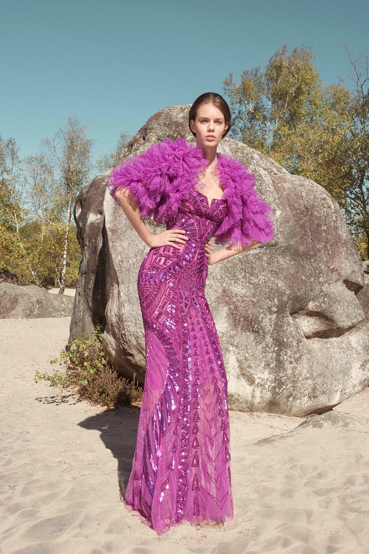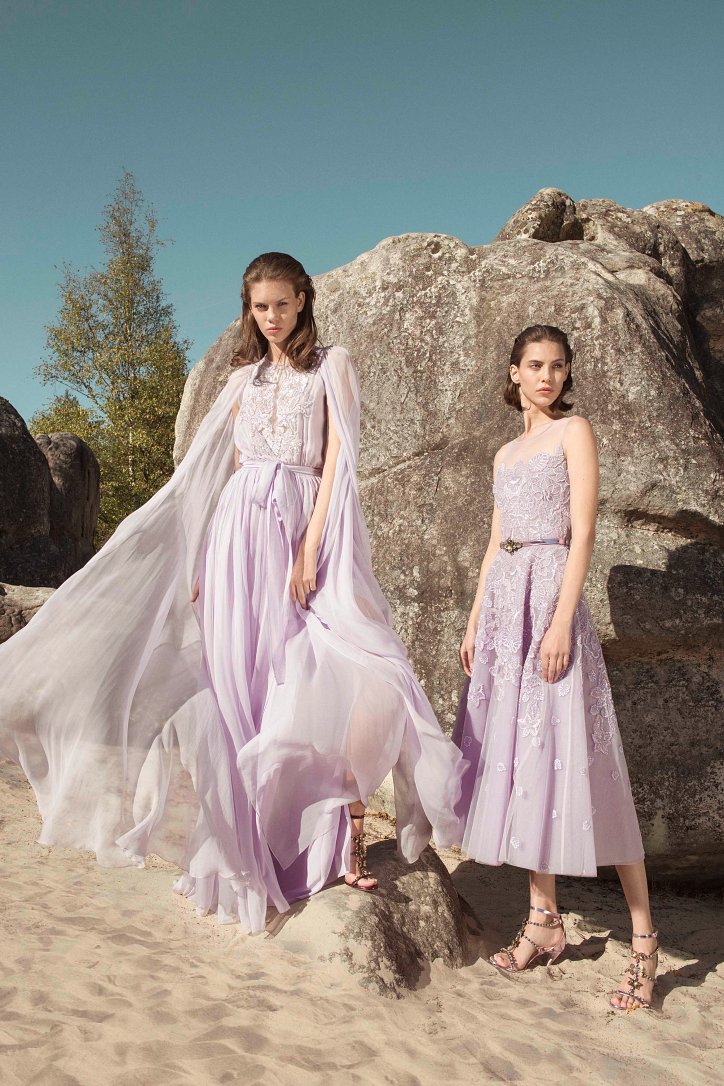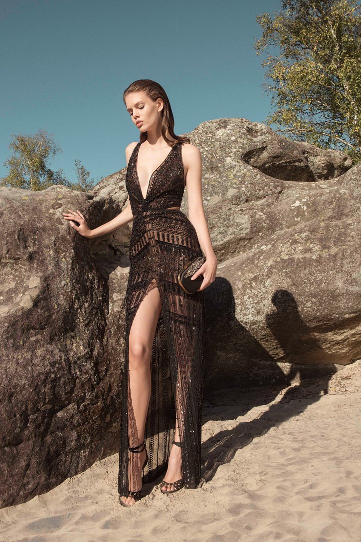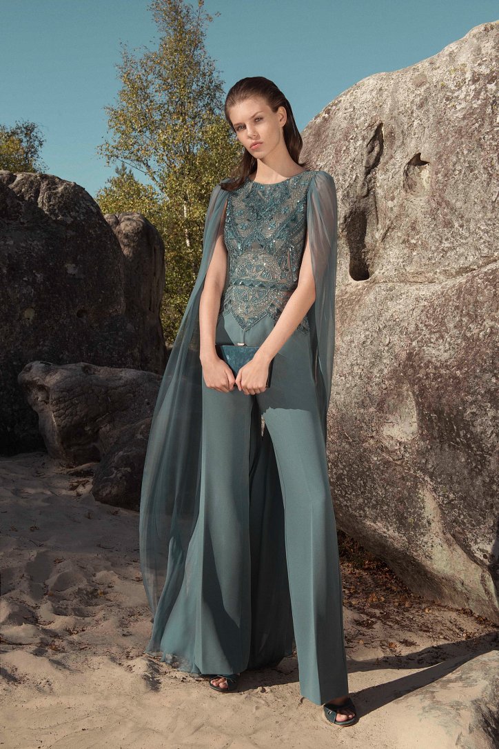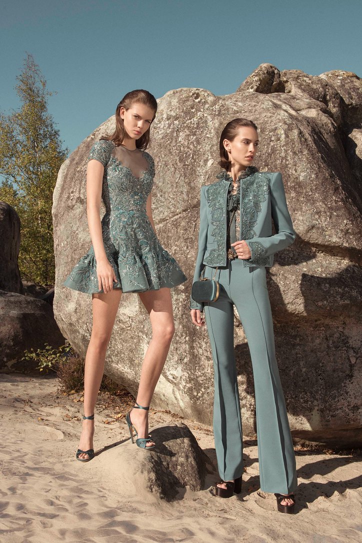 Полинезийские татуировки Tiki Tattoo в виде принтов – это нечто новое для Zuhair Murad, от которого традиционно ждут роскошных нарядов для ковровых дорожек. Но необычные мотивы принтов совсем не противоречили привычным кодам дома моды - коллекция Zuhair Murad выглядела потрясающе красиво, нежно и шикарно. Ведь дизайнер умудрился даже тату-рисунки вышить бисером и пайетками. Так, один из самых красивых образов коллекции – костюм из расклешенных брюк и жакета на запах – был полностью (!) расшит пайетками лилового, лавандового, черного и изумрудного цвета. Впрочем, даже в моделях без декора черно-белые принты выглядели богато и необычно. И, конечно же, радуют глаз элегантные брючные костюмы, летящие шифоновые платья-макси, дерзкие и прекрасные мини-платья и комбинезоны и нюдовые вечерние платья с накидками.