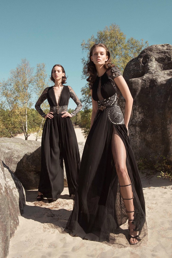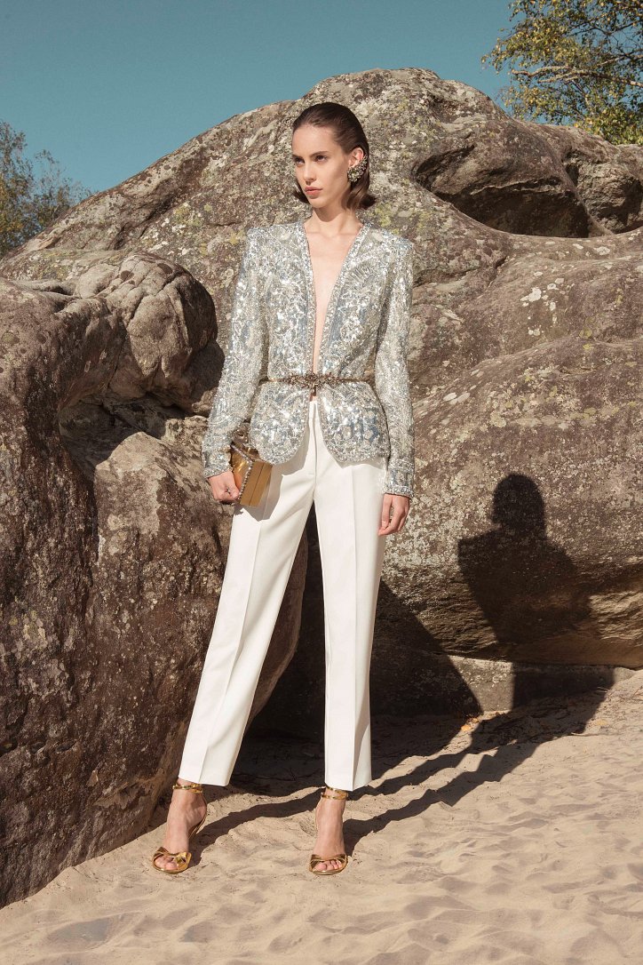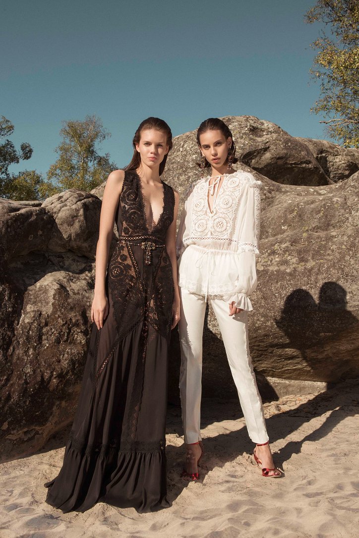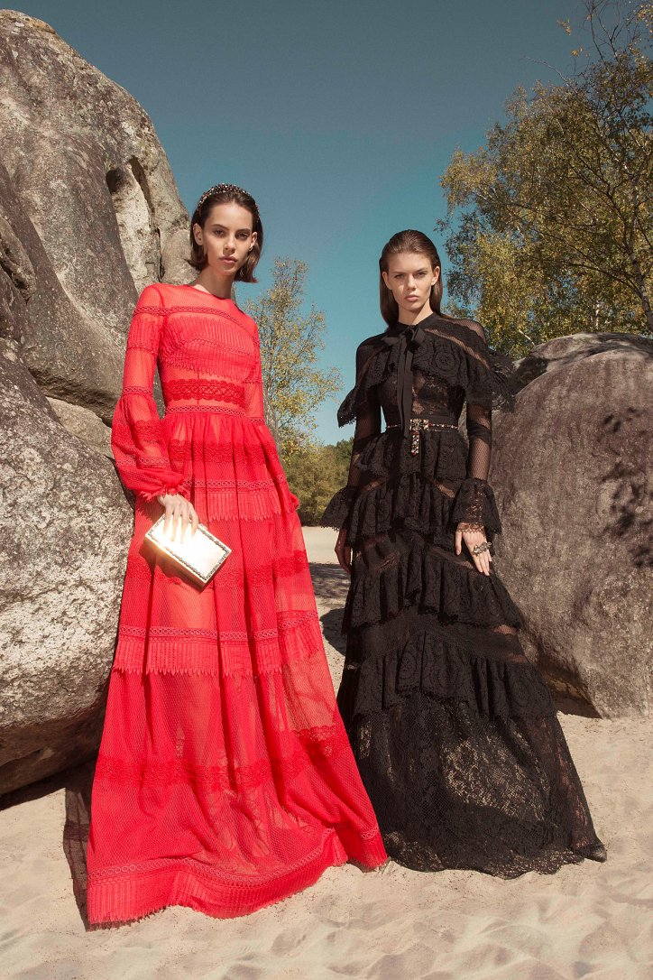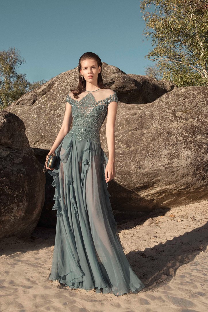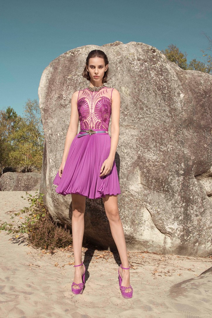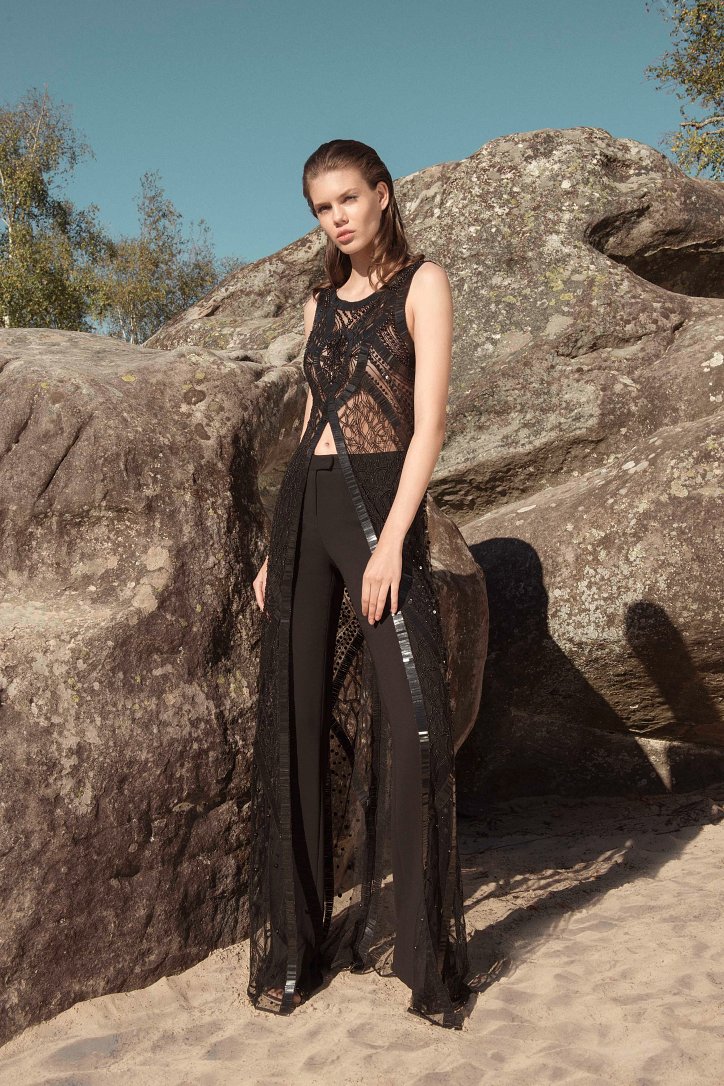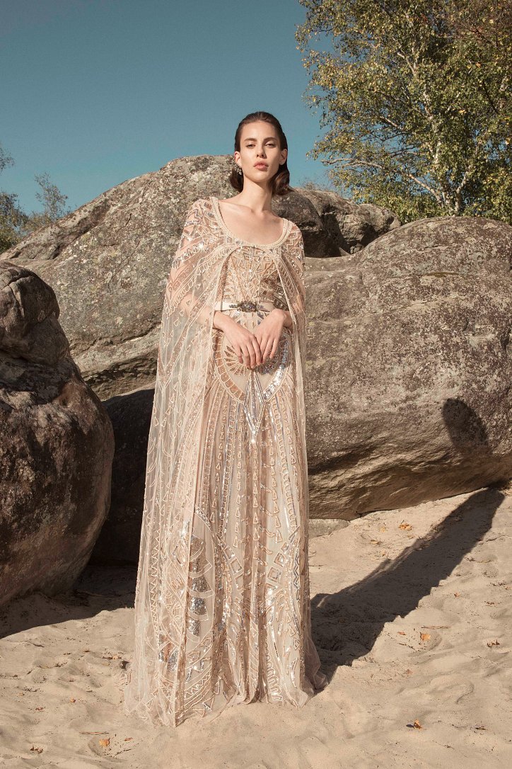 Полинезийские татуировки Tiki Tattoo в виде принтов – это нечто новое для Zuhair Murad, от которого традиционно ждут роскошных нарядов для ковровых дорожек. Но необычные мотивы принтов совсем не противоречили привычным кодам дома моды - коллекция Zuhair Murad выглядела потрясающе красиво, нежно и шикарно. Ведь дизайнер умудрился даже тату-рисунки вышить бисером и пайетками. Так, один из самых красивых образов коллекции – костюм из расклешенных брюк и жакета на запах – был полностью (!) расшит пайетками лилового, лавандового, черного и изумрудного цвета. Впрочем, даже в моделях без декора черно-белые принты выглядели богато и необычно. И, конечно же, радуют глаз элегантные брючные костюмы, летящие шифоновые платья-макси, дерзкие и прекрасные мини-платья и комбинезоны и нюдовые вечерние платья с накидками.