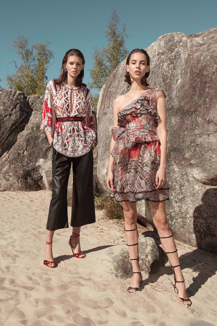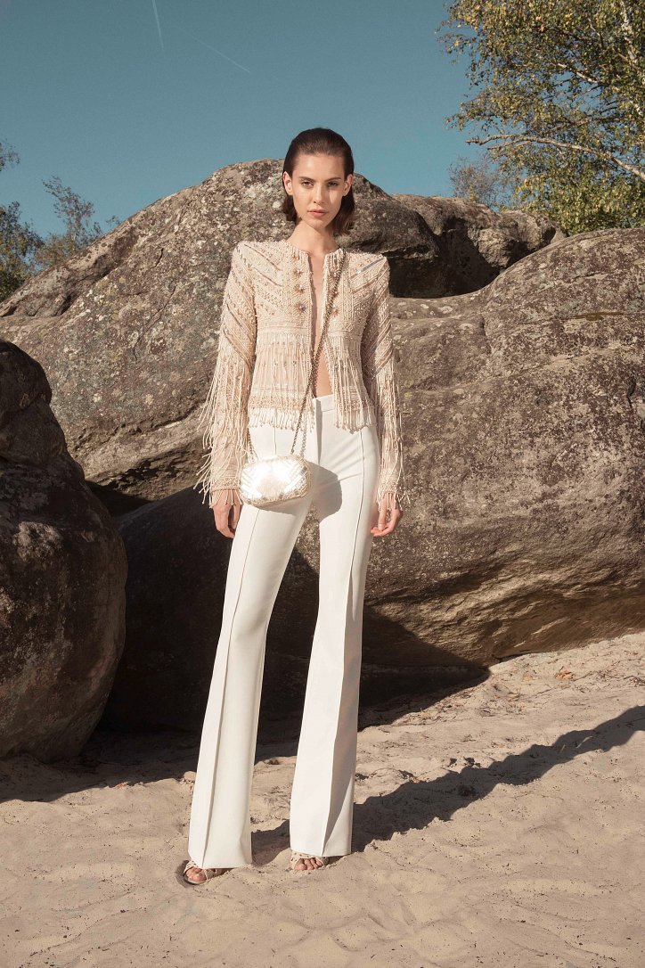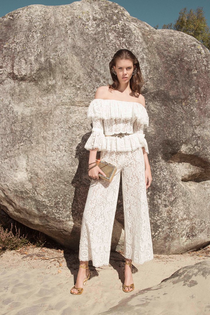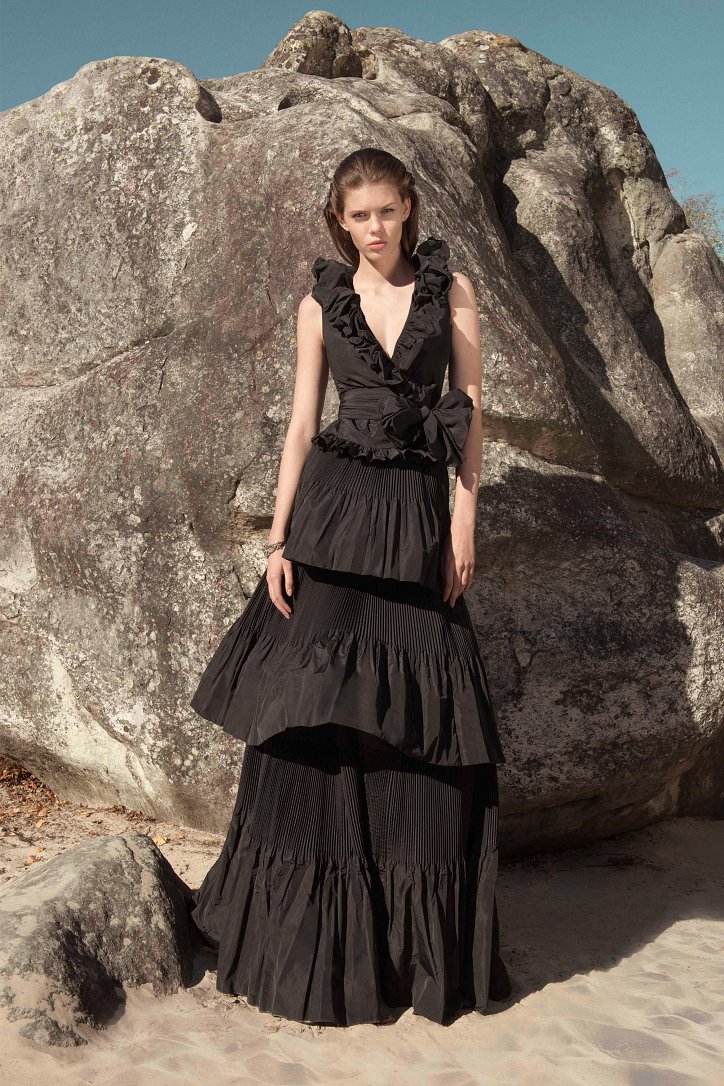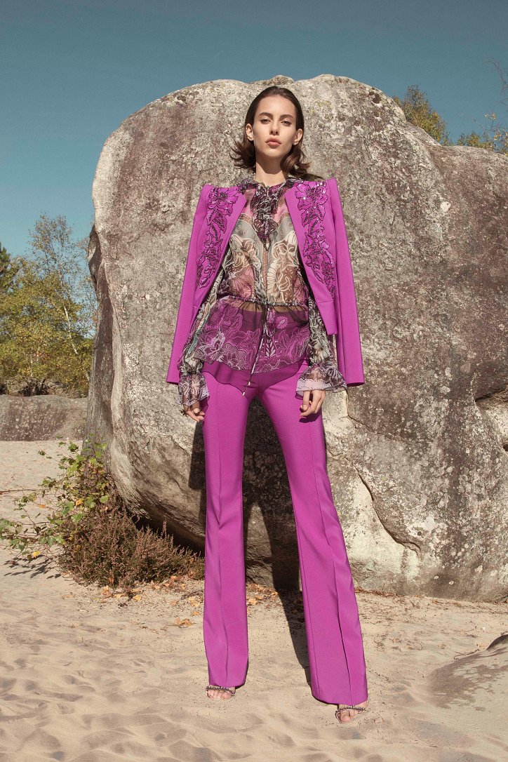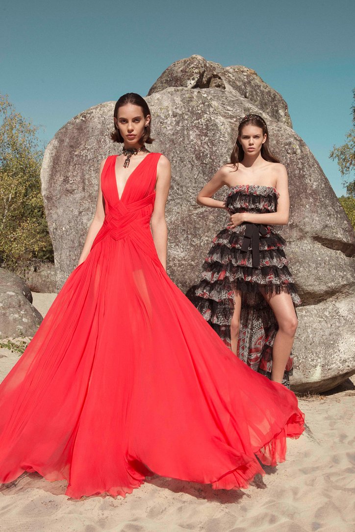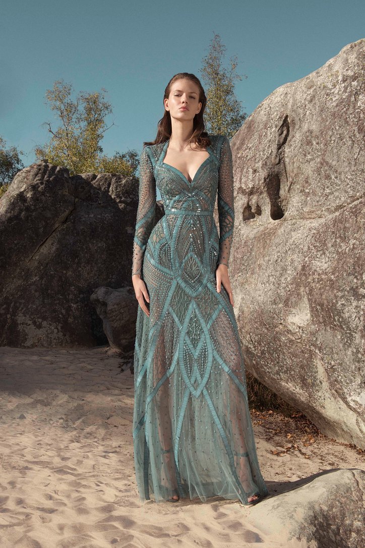 Полинезийские татуировки Tiki Tattoo в виде принтов – это нечто новое для Zuhair Murad, от которого традиционно ждут роскошных нарядов для ковровых дорожек. Но необычные мотивы принтов совсем не противоречили привычным кодам дома моды - коллекция Zuhair Murad выглядела потрясающе красиво, нежно и шикарно. Ведь дизайнер умудрился даже тату-рисунки вышить бисером и пайетками. Так, один из самых красивых образов коллекции – костюм из расклешенных брюк и жакета на запах – был полностью (!) расшит пайетками лилового, лавандового, черного и изумрудного цвета. Впрочем, даже в моделях без декора черно-белые принты выглядели богато и необычно. И, конечно же, радуют глаз элегантные брючные костюмы, летящие шифоновые платья-макси, дерзкие и прекрасные мини-платья и комбинезоны и нюдовые вечерние платья с накидками.