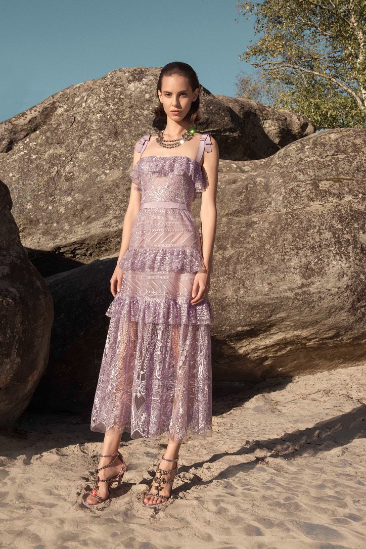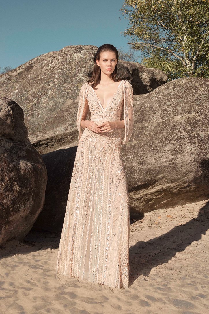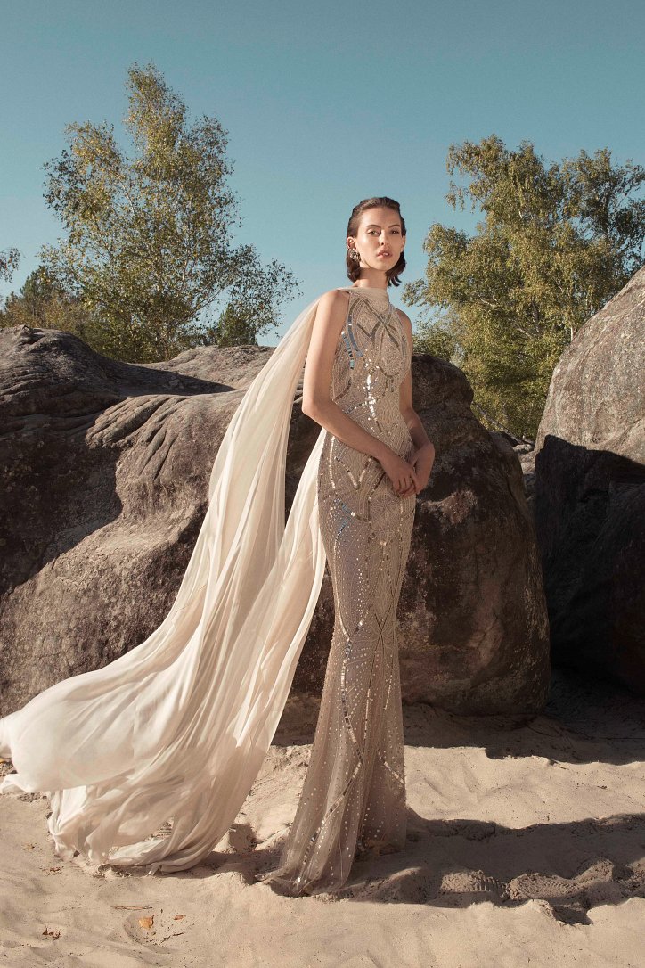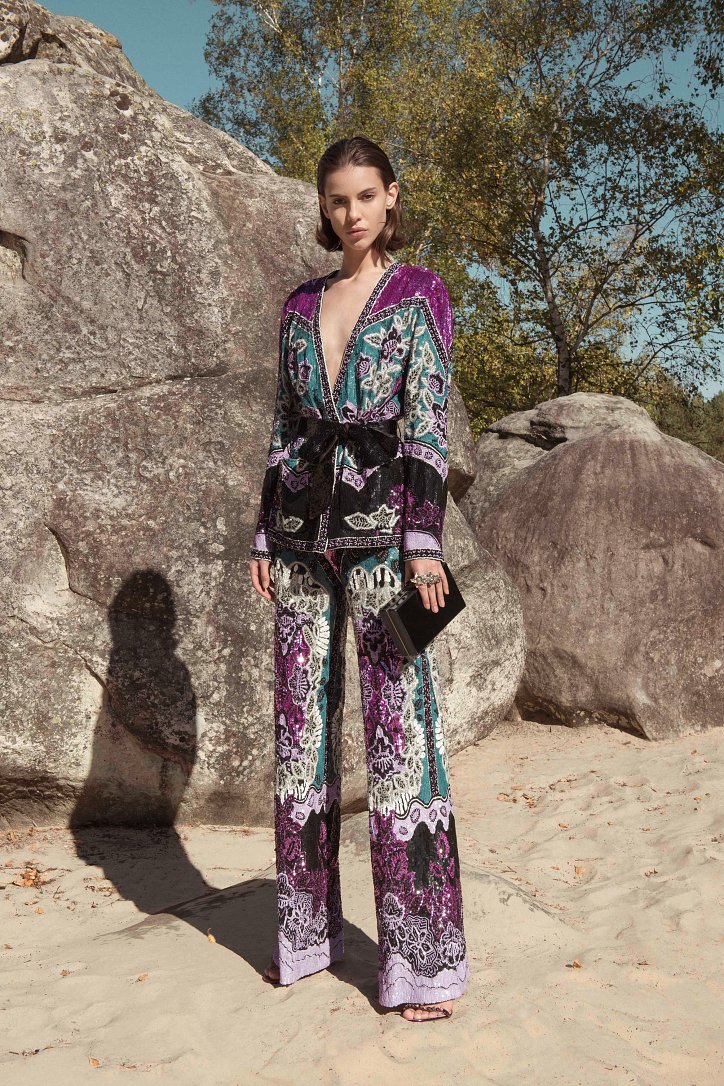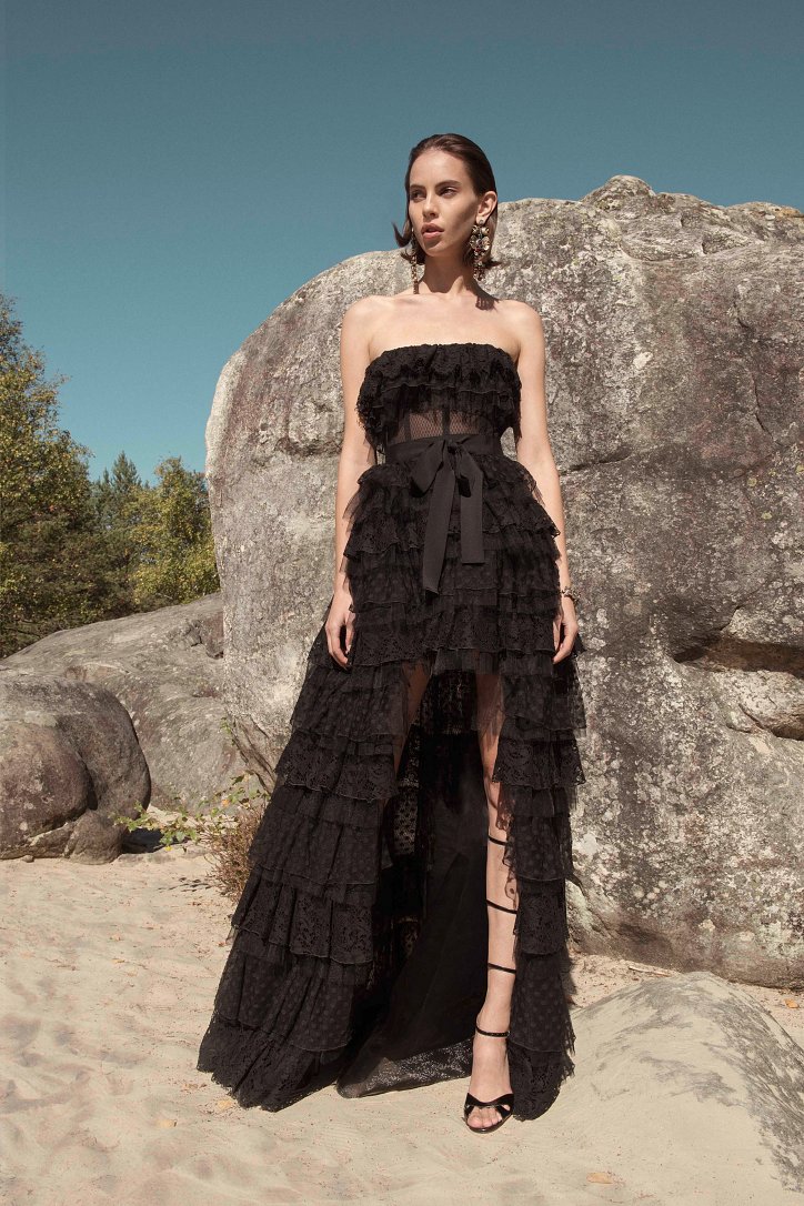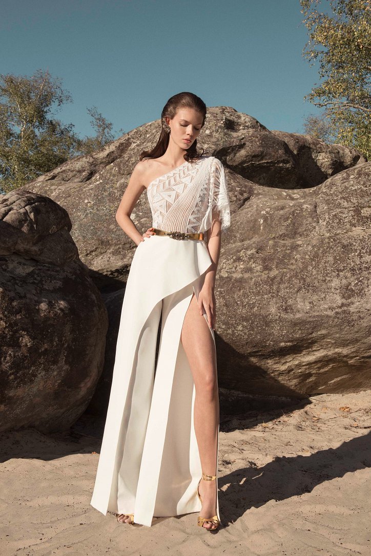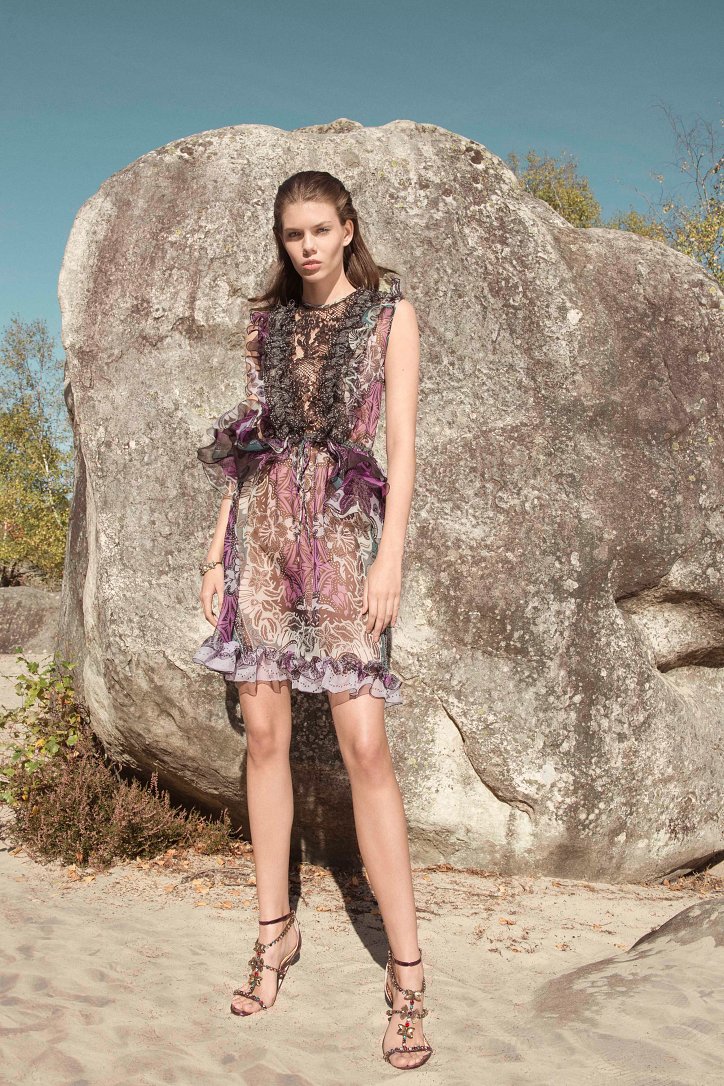 Полинезийские татуировки Tiki Tattoo в виде принтов – это нечто новое для Zuhair Murad, от которого традиционно ждут роскошных нарядов для ковровых дорожек. Но необычные мотивы принтов совсем не противоречили привычным кодам дома моды - коллекция Zuhair Murad выглядела потрясающе красиво, нежно и шикарно. Ведь дизайнер умудрился даже тату-рисунки вышить бисером и пайетками. Так, один из самых красивых образов коллекции – костюм из расклешенных брюк и жакета на запах – был полностью (!) расшит пайетками лилового, лавандового, черного и изумрудного цвета. Впрочем, даже в моделях без декора черно-белые принты выглядели богато и необычно. И, конечно же, радуют глаз элегантные брючные костюмы, летящие шифоновые платья-макси, дерзкие и прекрасные мини-платья и комбинезоны и нюдовые вечерние платья с накидками.