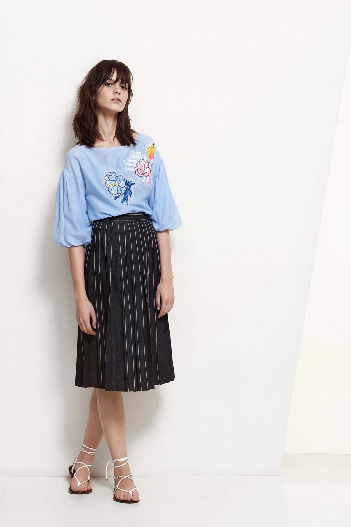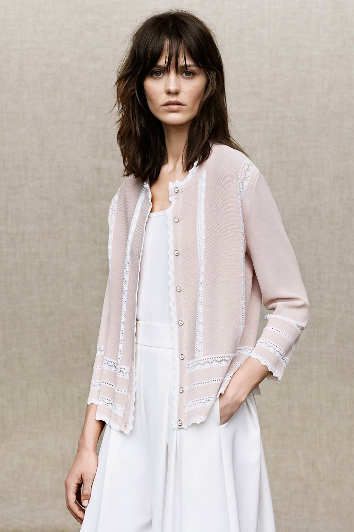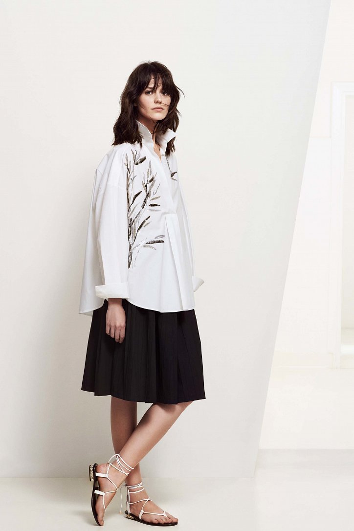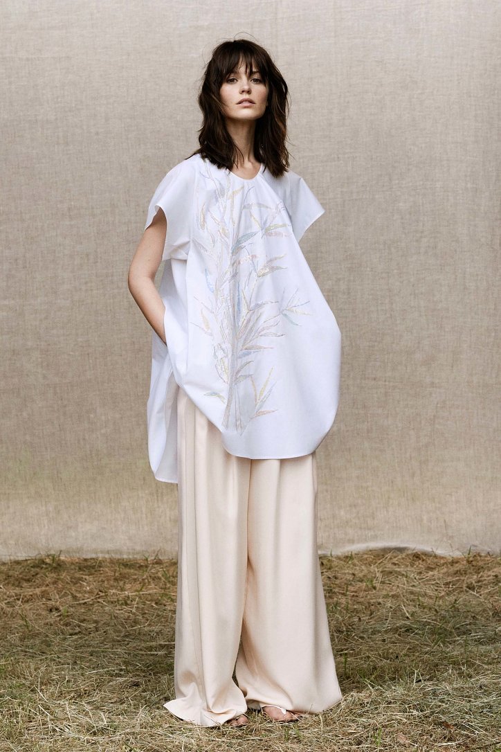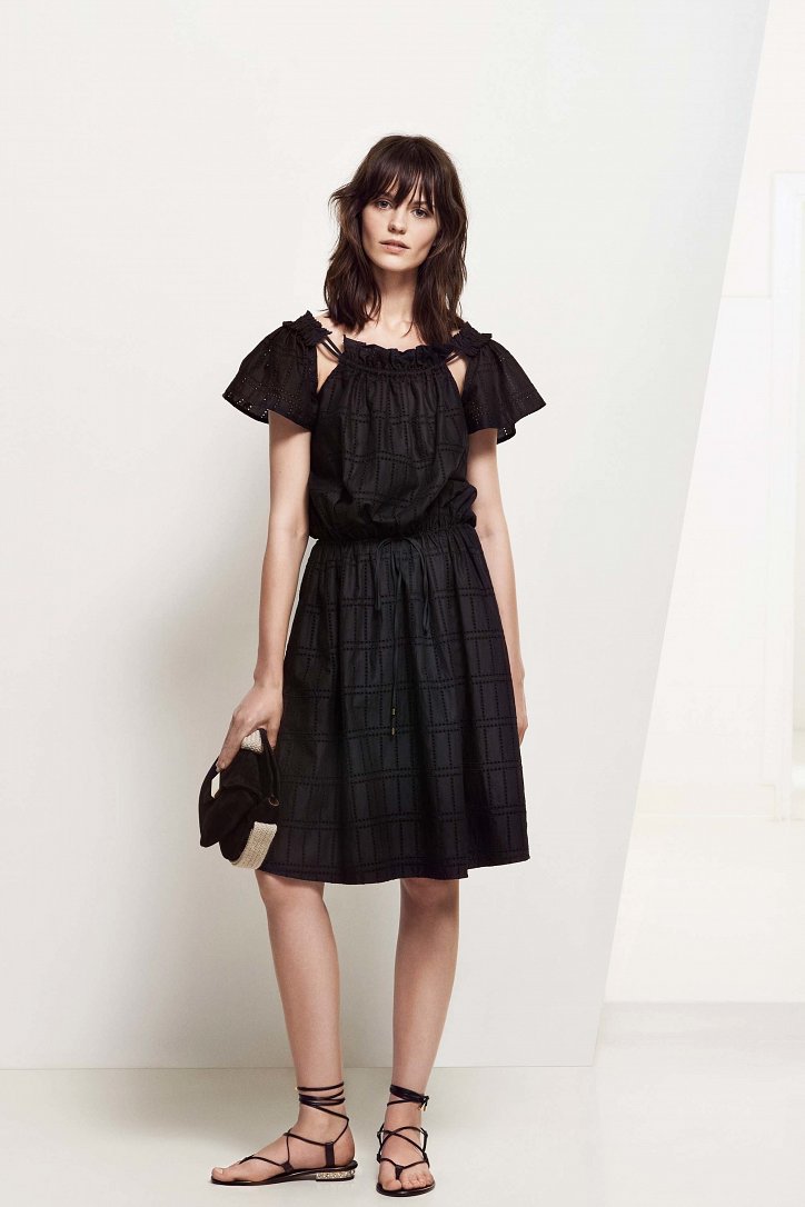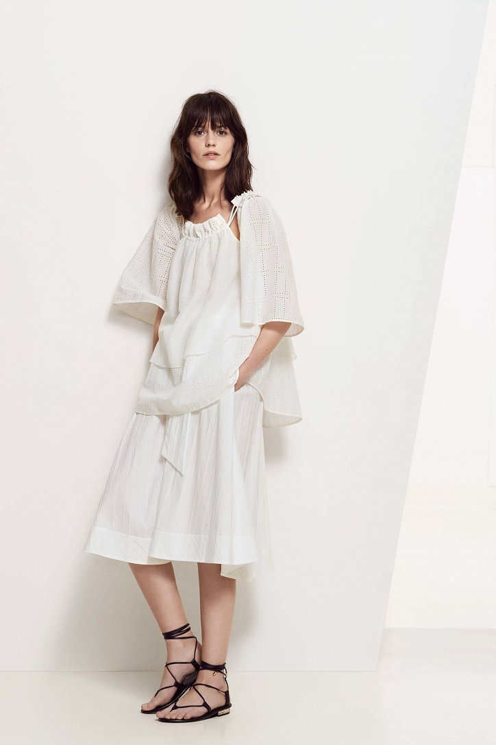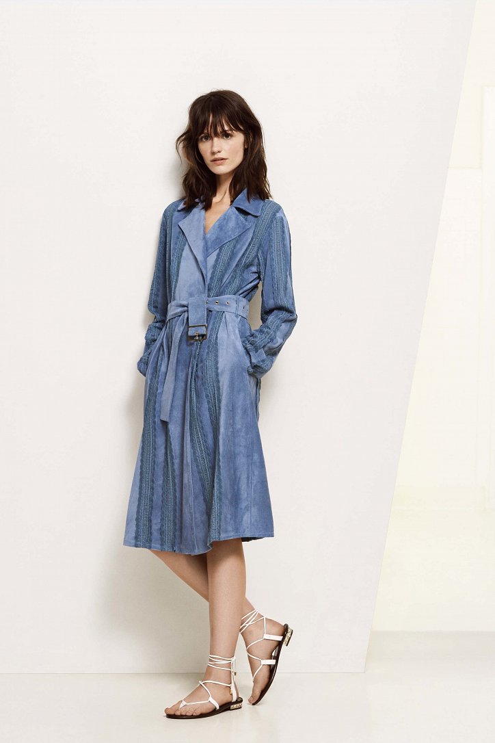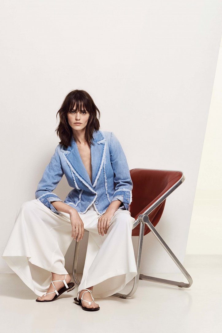 Для своей круизной коллекции Анна Молинари выбрала более прагматичный подход, чем обычно. На смену очень женственным и сугубо «девичьим» нарядам пришли удобные и практичные вещи «на каждый день»: хлопковые платья-макси, блузы и туники-оверсайз, очень широкие и очень длинные брюки, свободного кроя джинсовые платья-миди, слегка прикрывающие колено расклешенные юбки, платья на запах, удлиненные джинсы-клеш, жакеты из денима и полосатые блейзеры.