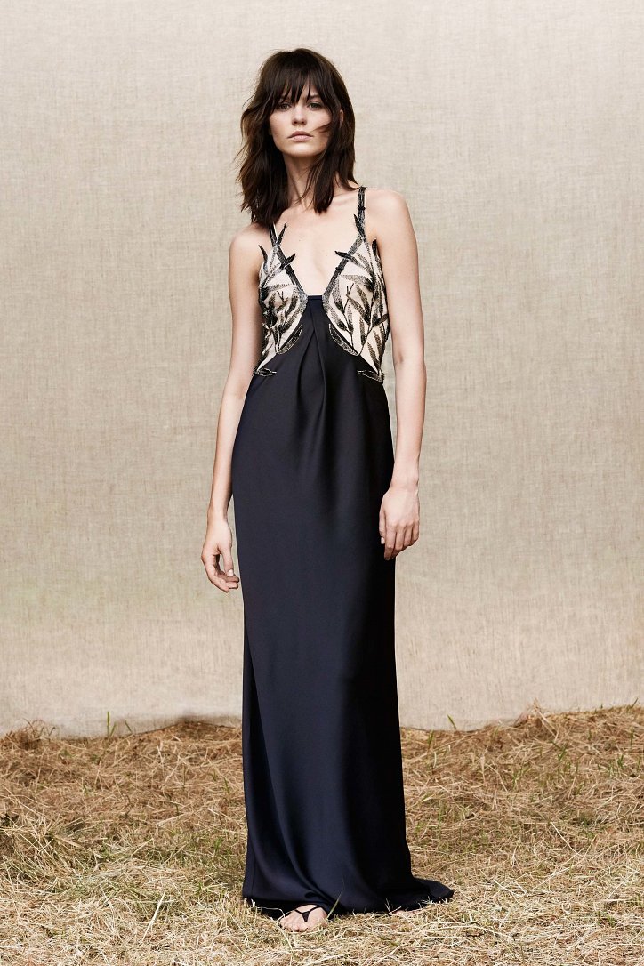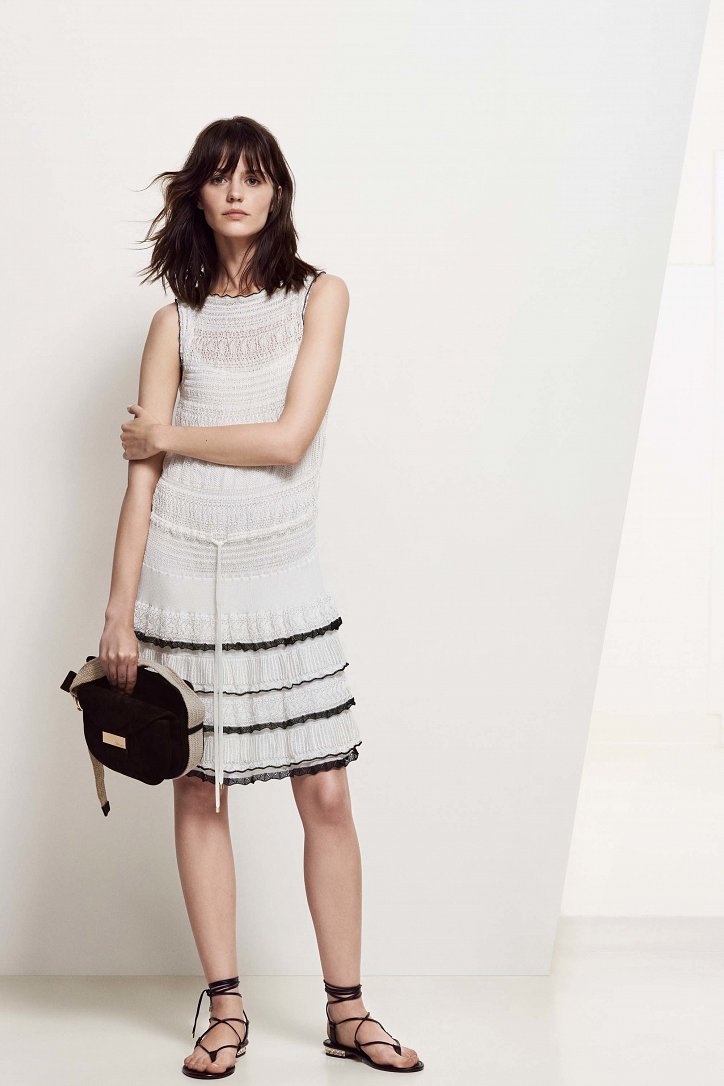 Но при этом круизная коллекция Blumarine не утратила и своей романтичности – за это в ней «отвечают» кружевные вставки на платьях, мелькающие то тут, то там кокетливые рюши и воланы, цветочные аппликации и мягкие струящиеся силуэты длинных платьев.