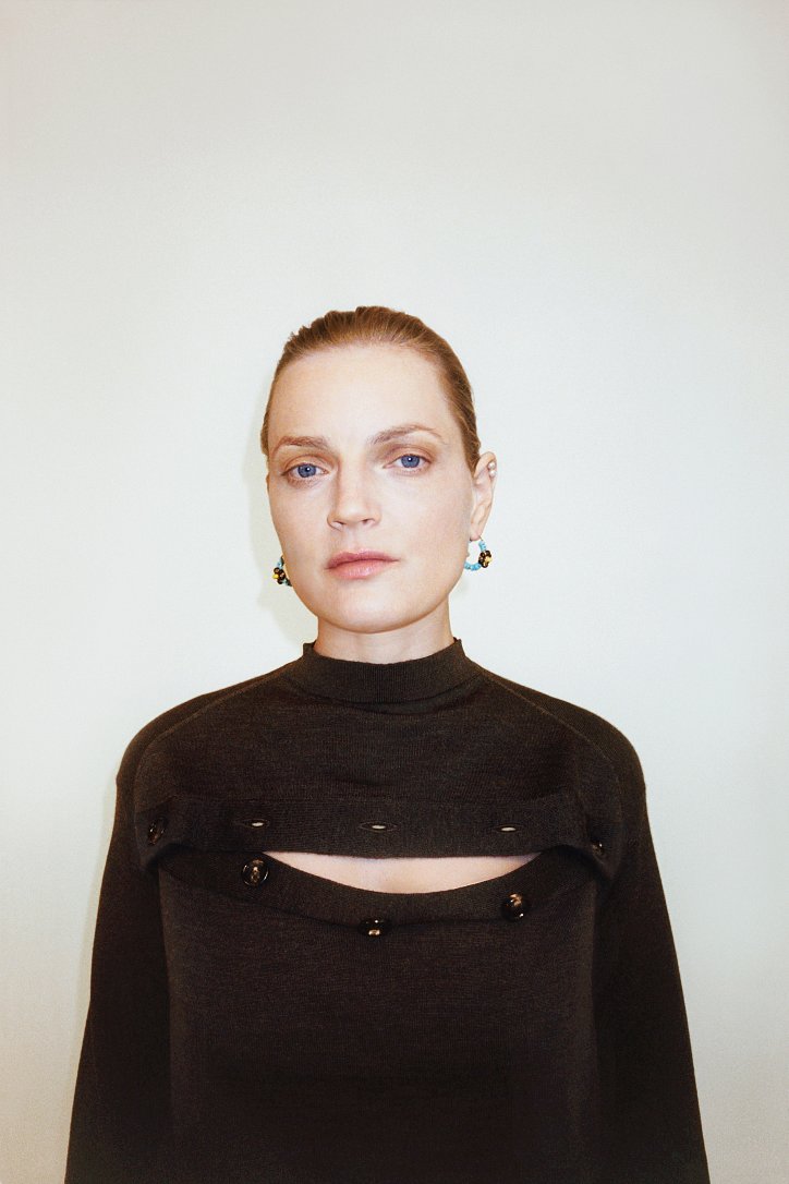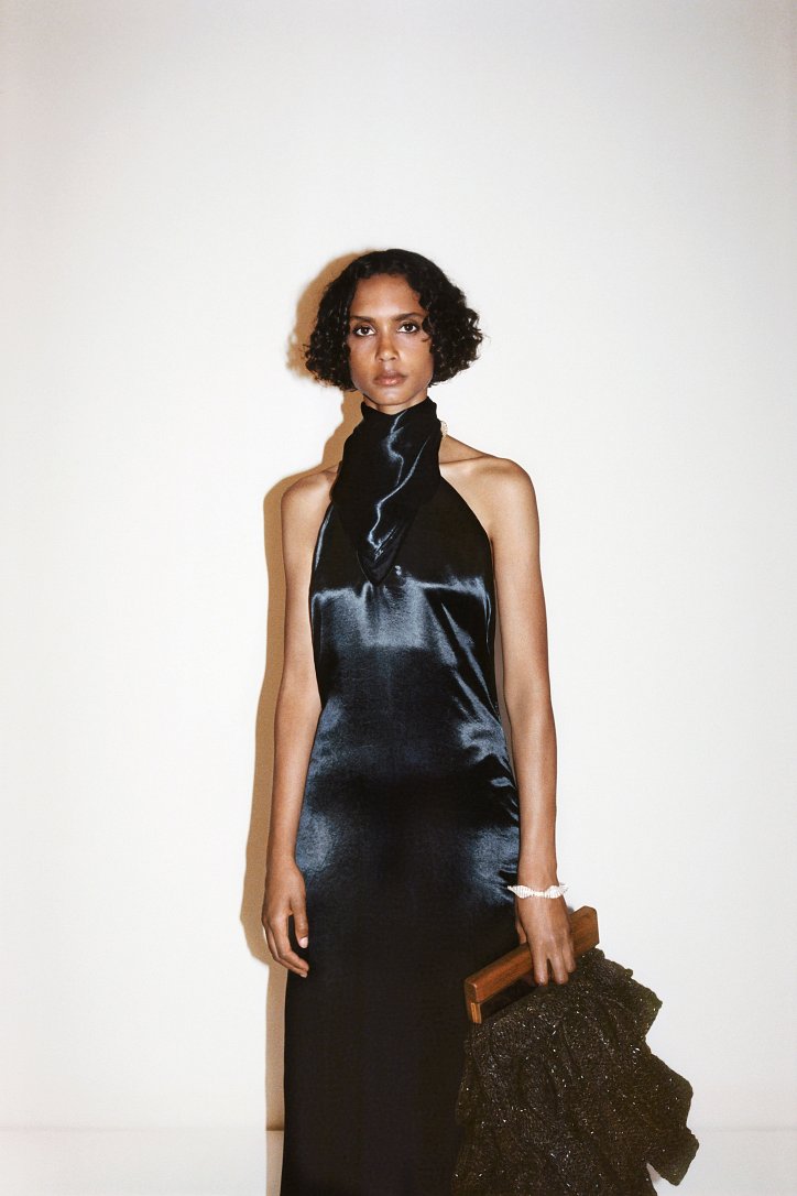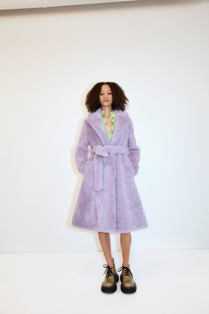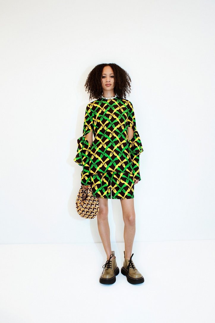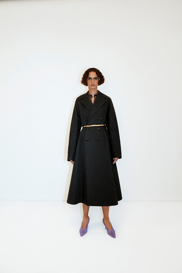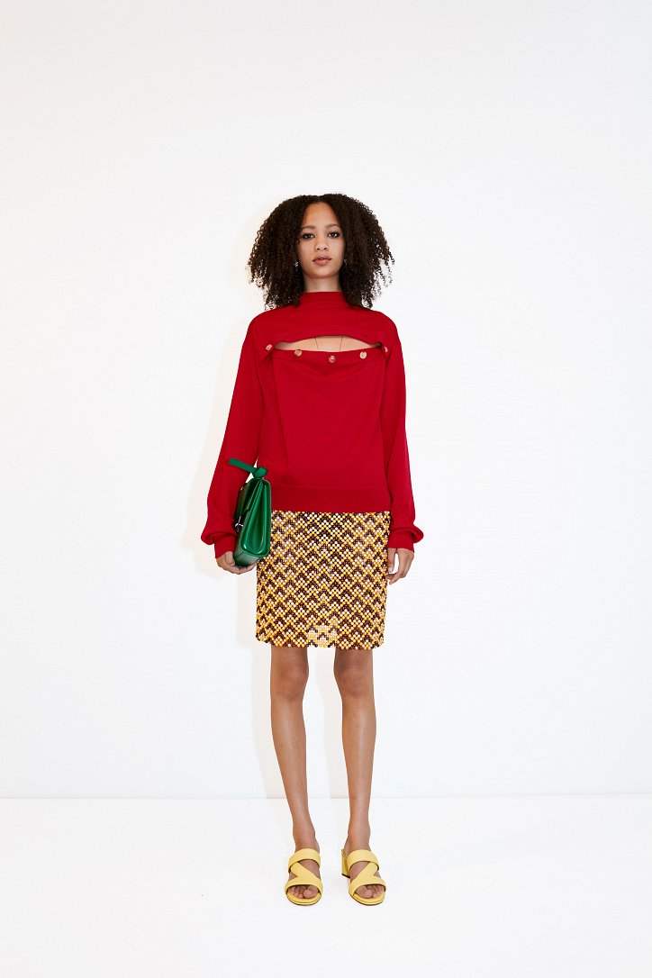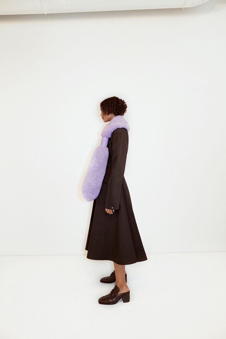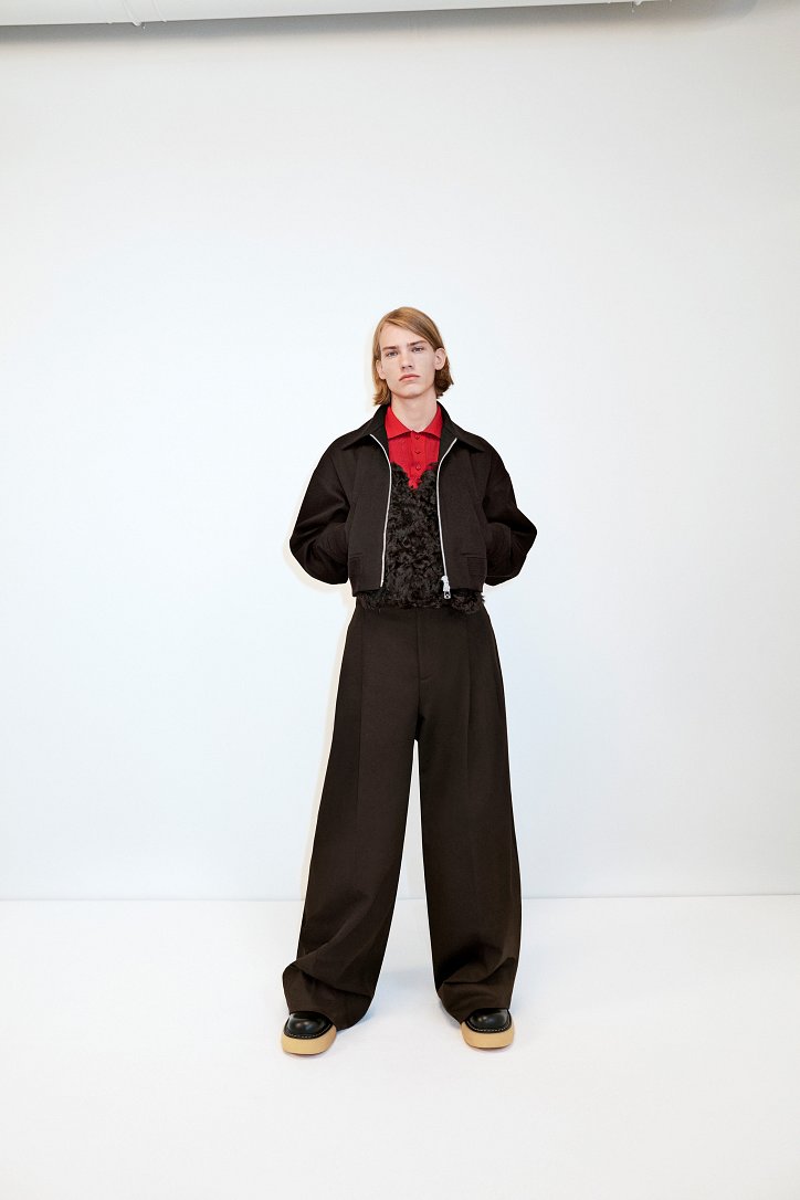 В качестве «мостика» для выхода из карантина дизайнер бренда Дэниел Ли предлагает широкие брюки и трикотаж ручной вязки. Удобные и комфортные модели он облек в авангардные силуэты – ведь смысл в создании новой одежды он видит в том, чтобы создавать вещи, которые нельзя купить больше ни в одном магазине. Еще один акцент – цветовая палитра, состоящая из ярких оттенков лаванды, красного, желтого и бирюзового, которые соединяются в аутфитах в смелый колорблокинг. Уравновешивает это буйство красок черный и оттенки коричневого.