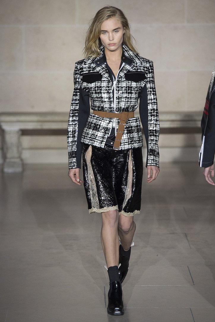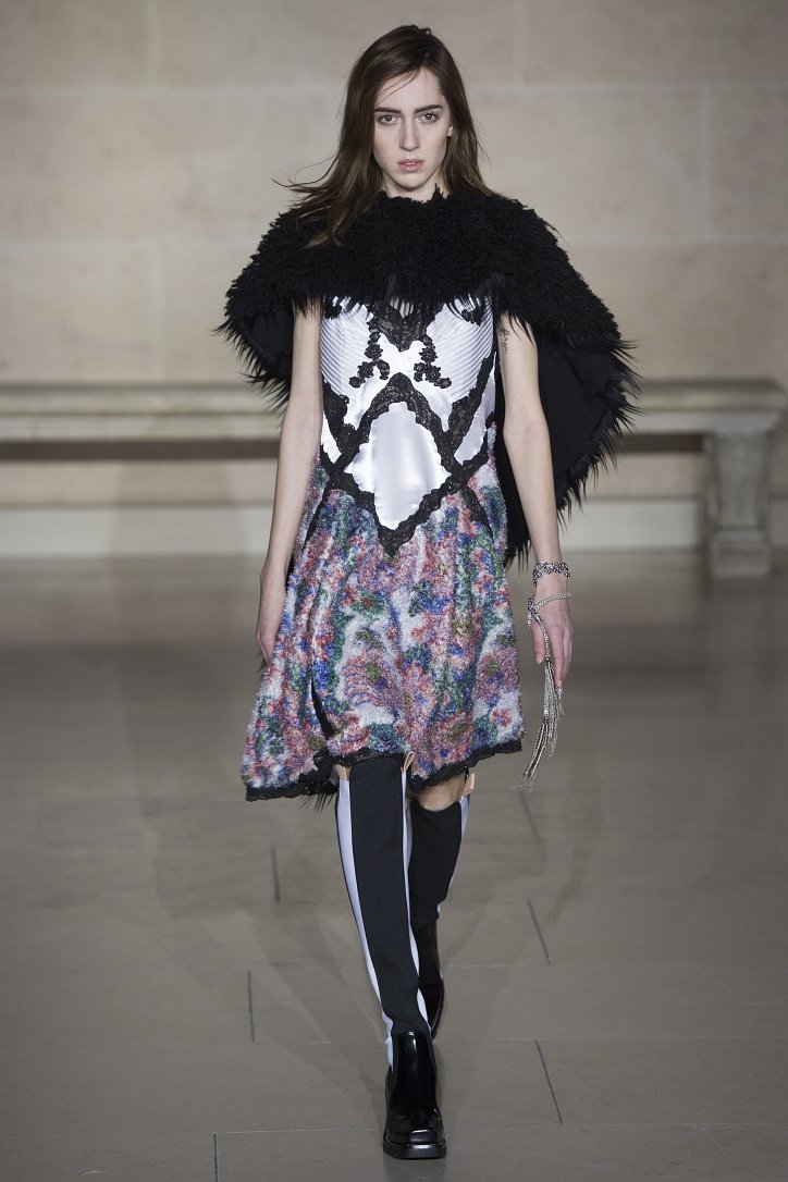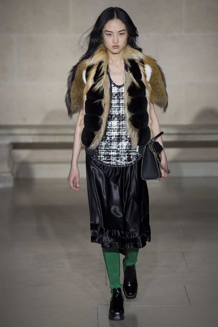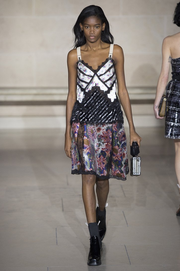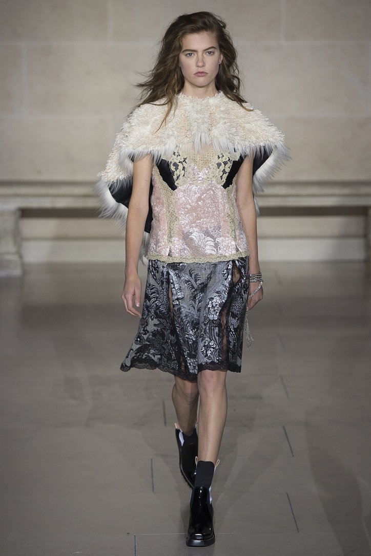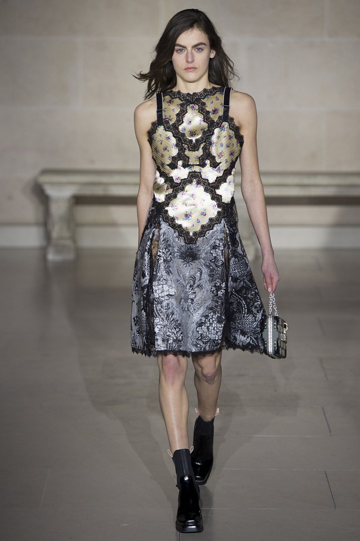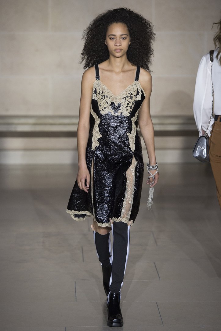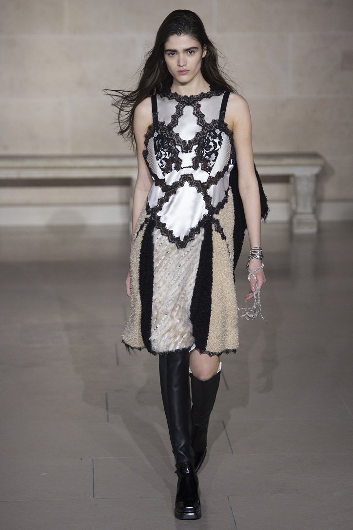 В качестве декораций на показе Louis Vuitton осень-зима 2017-2018 выступали скульптуры 17-18 в. – ведь дефиле проходило во внутреннем дворике Лувра – Марли. Николя Жескьер решил продемонстрировать таким образом, что в современном мире не должно быть границ. Нигде. Ни между государствами, ни в мире моды. Париж же – город, где творят дизайнеры со всей планеты. А Лувр – это само искусство, которое вообще интернационально. Подчеркивала этот месседж и сама коллекция - в моделях соединялись самые неожиданные элементы и материалы: кожаные тренчи, твидовые жакеты и шелковые платья, шерсть, похожая по цвету на джинс, соседствовала с пушистым мехом, а кожаные косухи в стиле пэчворк – с вечерними платьями.
