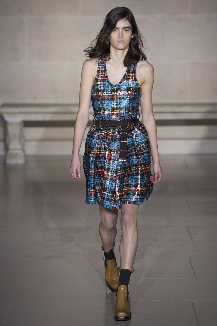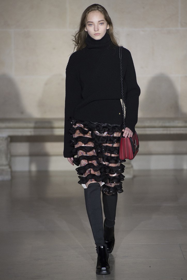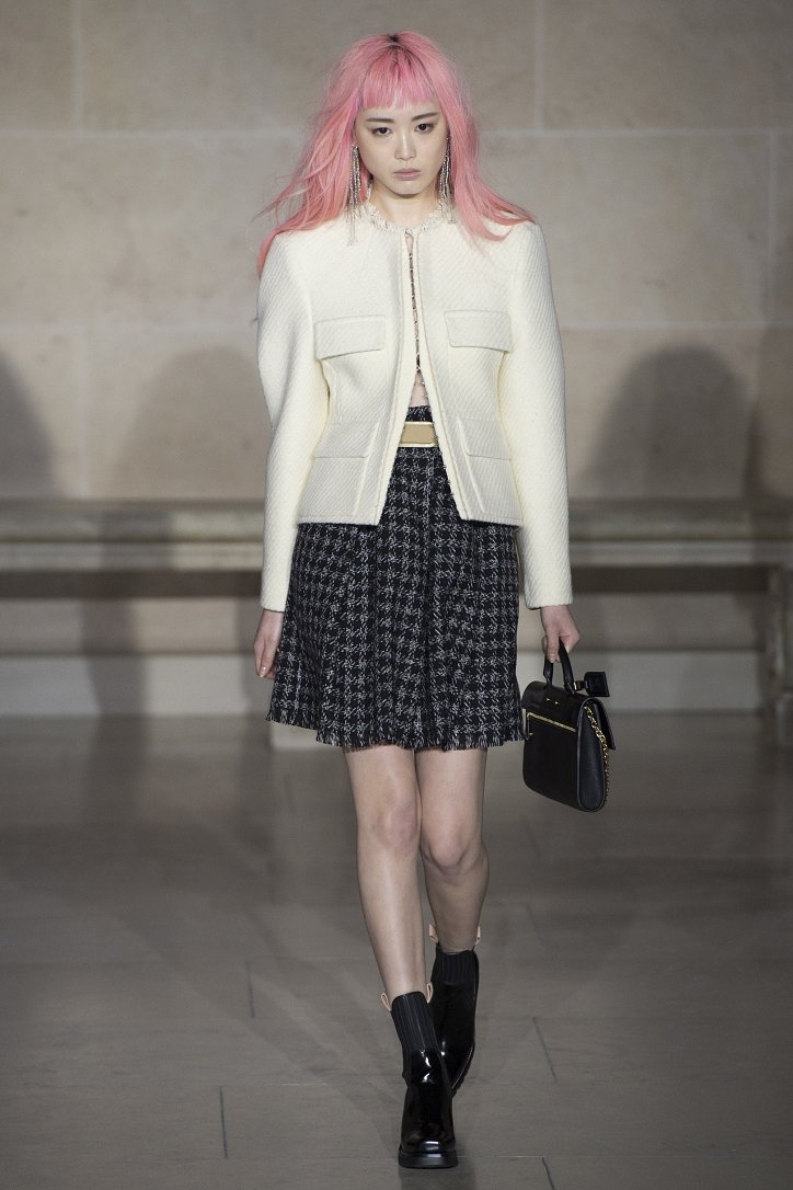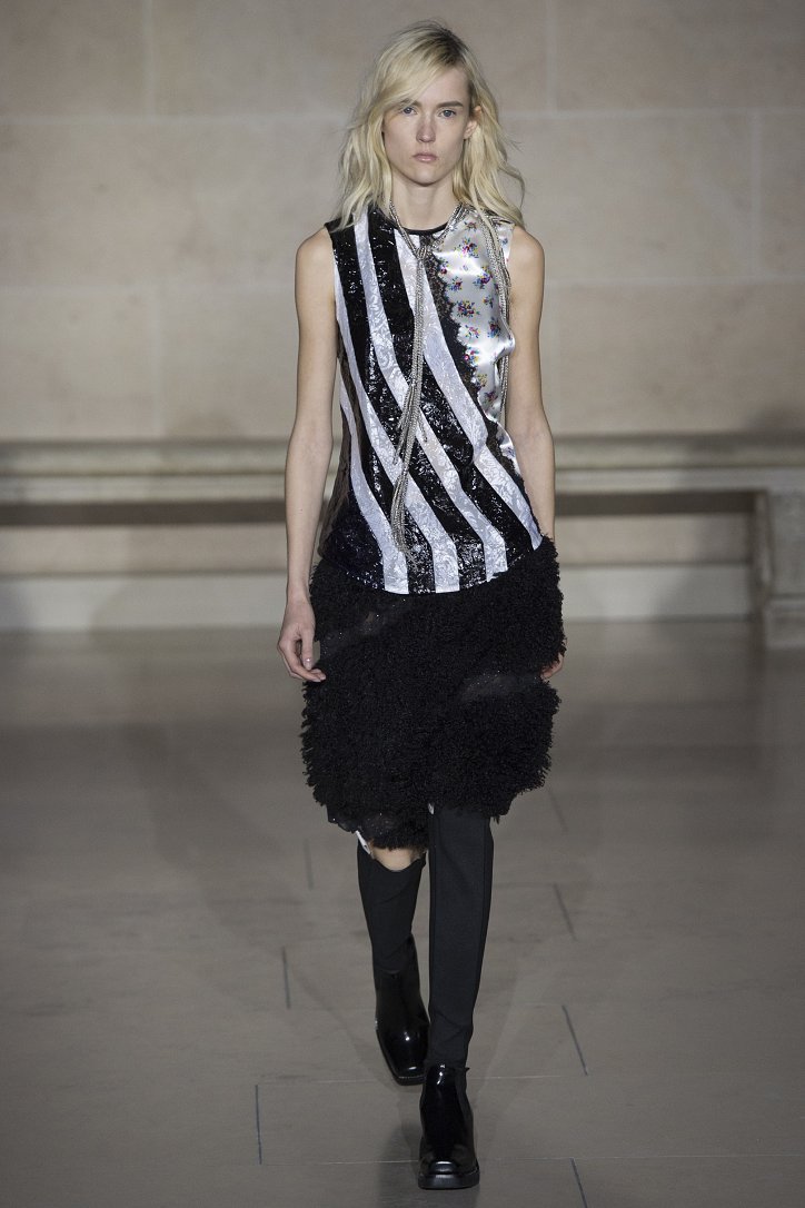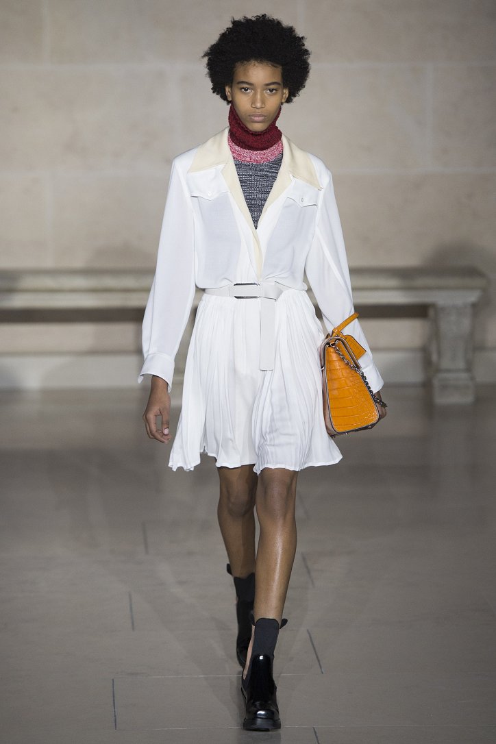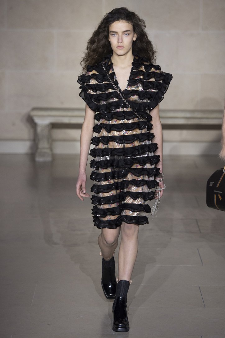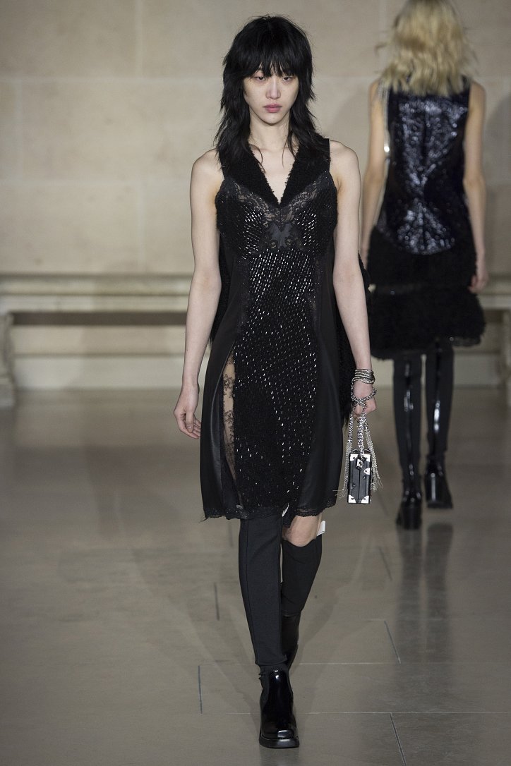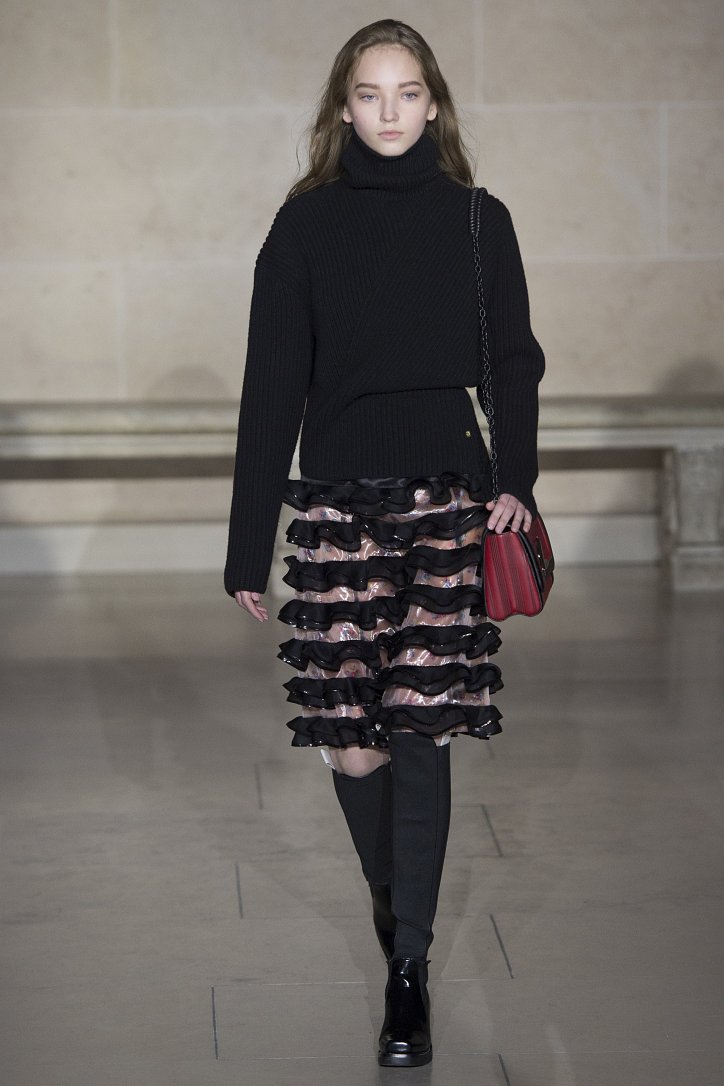 В качестве декораций на показе Louis Vuitton осень-зима 2017-2018 выступали скульптуры 17-18 в. – ведь дефиле проходило во внутреннем дворике Лувра – Марли. Николя Жескьер решил продемонстрировать таким образом, что в современном мире не должно быть границ. Нигде. Ни между государствами, ни в мире моды. Париж же – город, где творят дизайнеры со всей планеты. А Лувр – это само искусство, которое вообще интернационально. Подчеркивала этот месседж и сама коллекция - в моделях соединялись самые неожиданные элементы и материалы: кожаные тренчи, твидовые жакеты и шелковые платья, шерсть, похожая по цвету на джинс, соседствовала с пушистым мехом, а кожаные косухи в стиле пэчворк – с вечерними платьями.