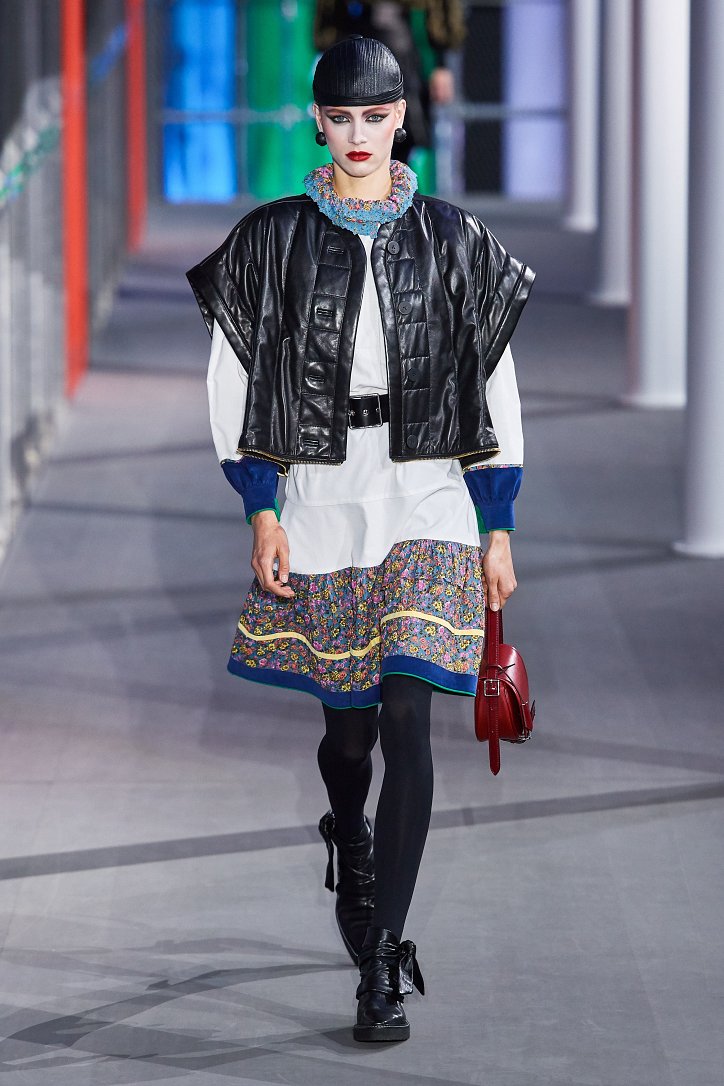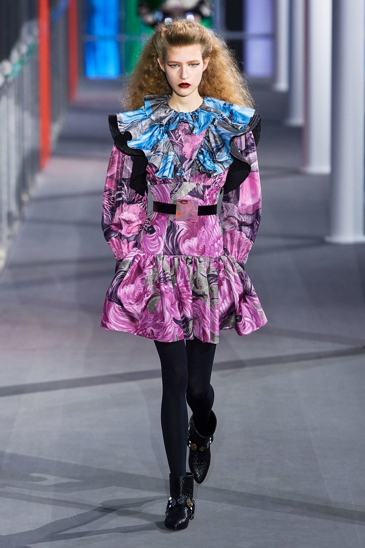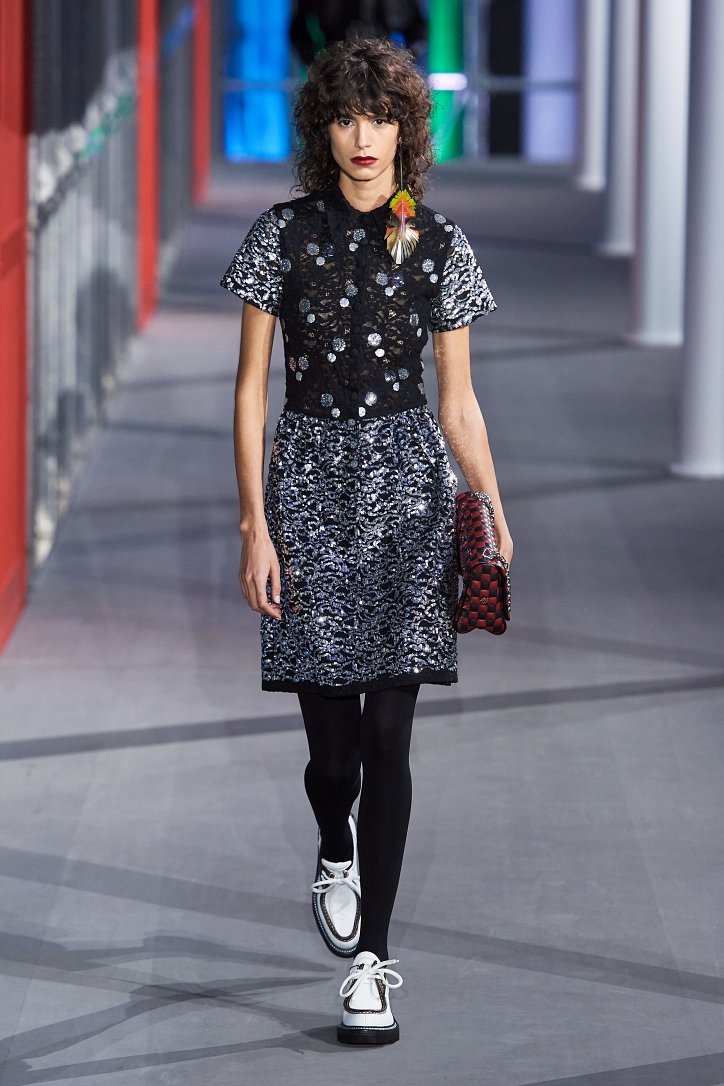 Пока одни дизайнеры размышляют о вечном, Николя Гескьер пытается вернуть нас «с небес на землю». А точнее – в мир реальный из мира виртуального. Какой была жизнь до Инстаграма? Всем, кто уже забыл, дизайнер предлагает выйти на улицу. Причем, не на любую – а на площадь около Центра Помпиду в 4 округе Парижа. Эта геолокация была избрана для показа осенне-зимней коллекции Louis Vuitton неслучайно: ведь в этом «плавильном котле» можно было увидеть представителей практически всех субкультур «доинтернетовского» времени. Тогда выражать свое мнение можно было не только при помощи слов и музыки, но и с помощью одежды.